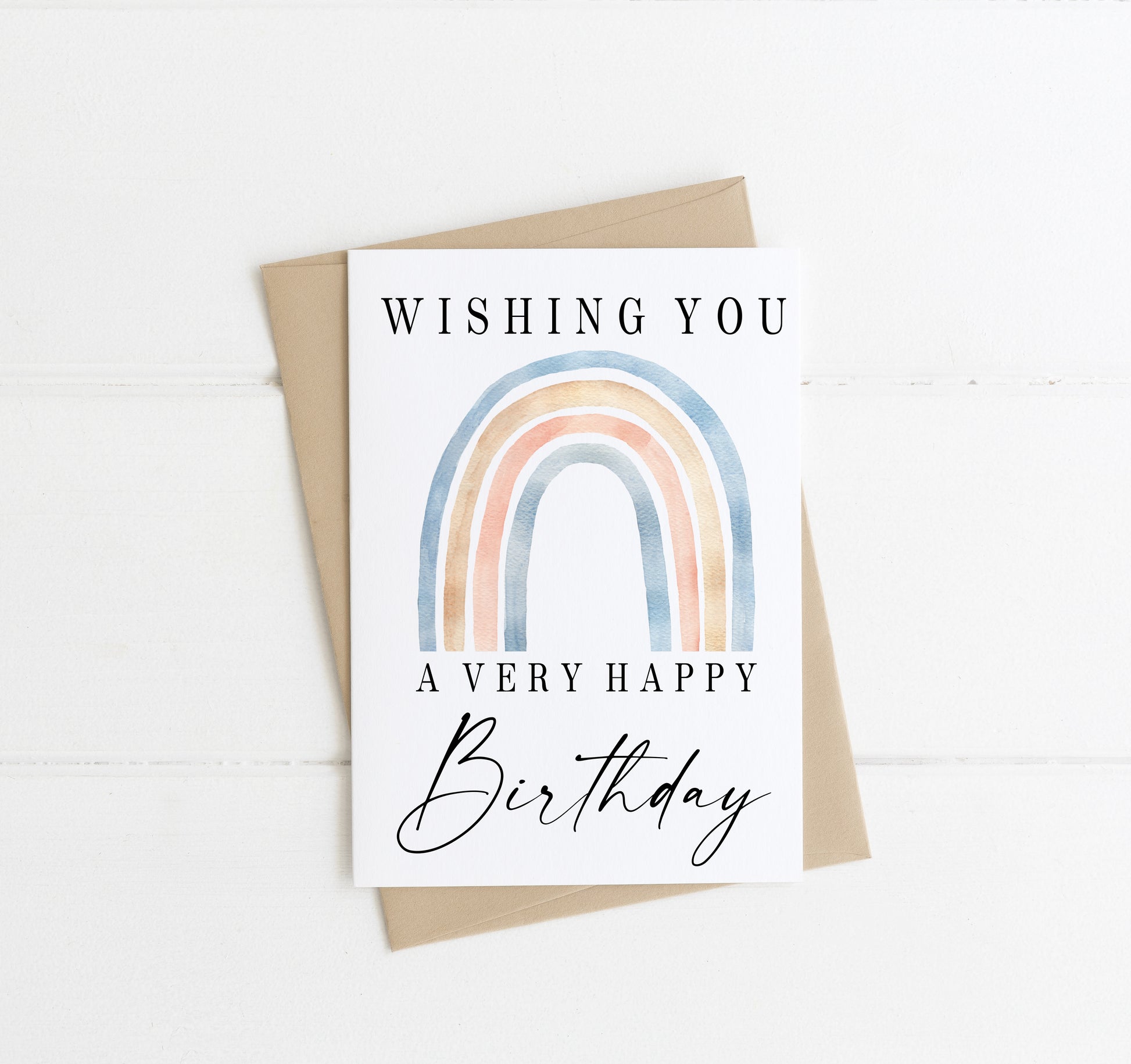 £1 CARD SALE - Happy Birthday blue yellow watercolour rainbow
