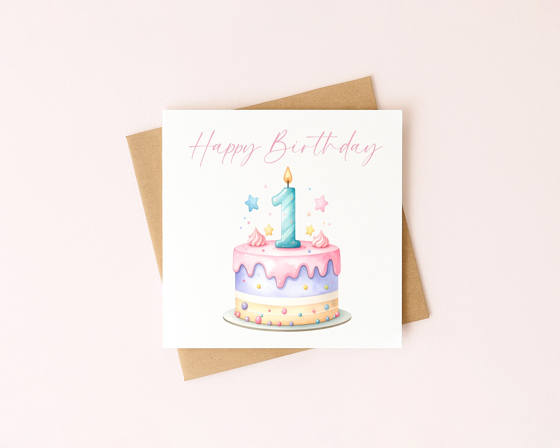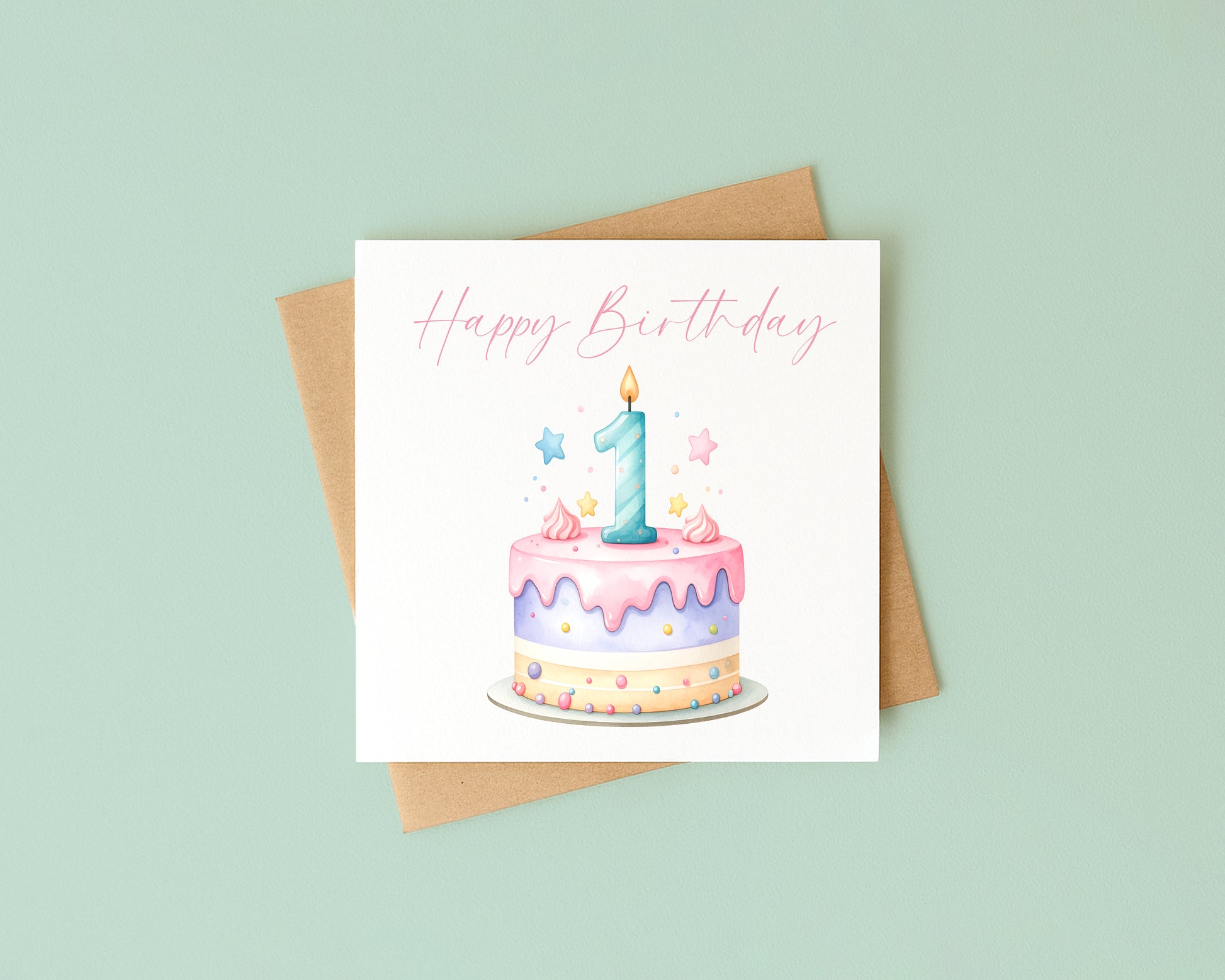1st Birthday Card Pink, Blue, & Green Cake Number 1 with EnvelopeMakes the perfect card to gift to someone on that significant or sentimental birthday!