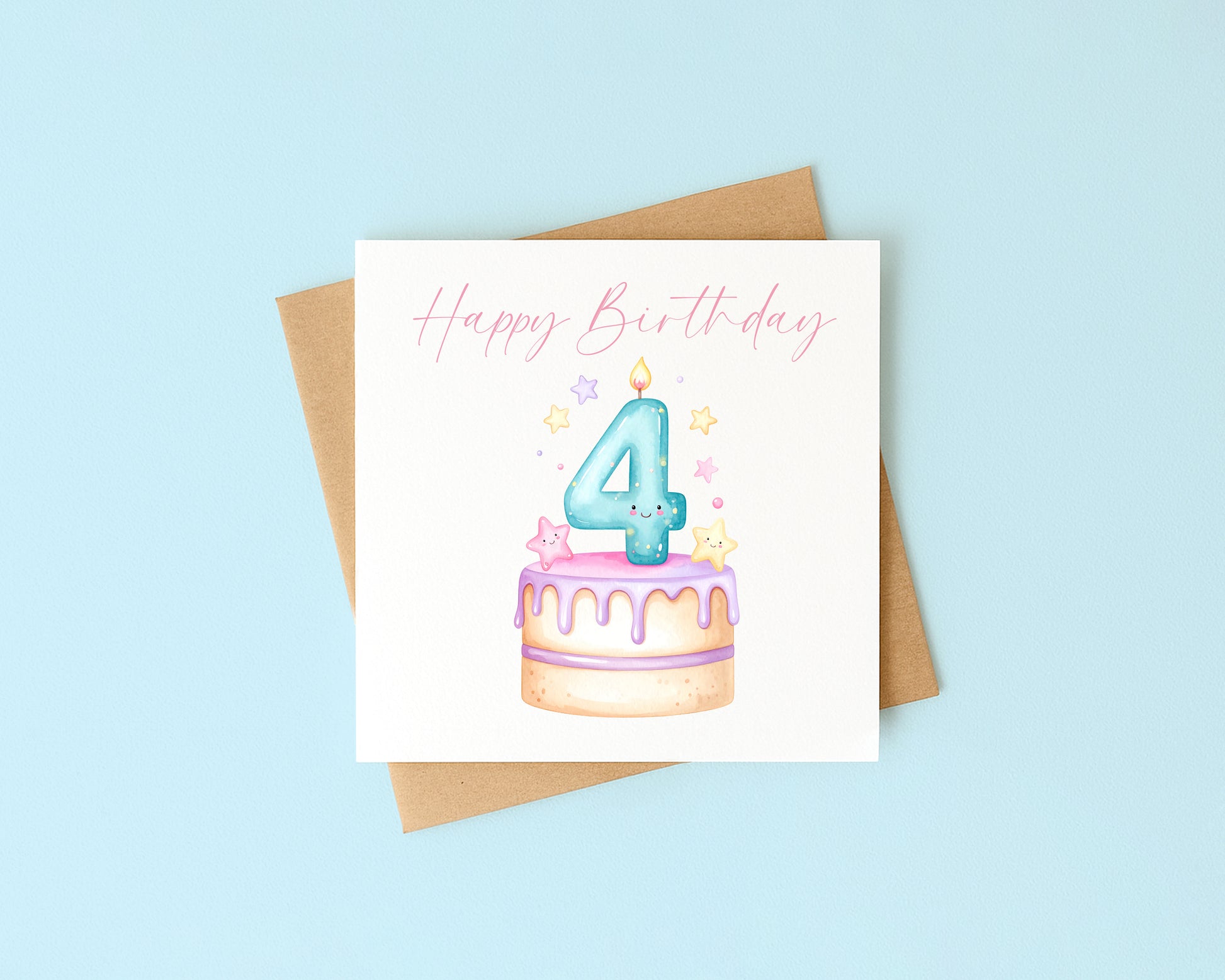 4th Birthday Card Pink, Blue, & Green Cake Number 4 with Envelope. Makes the perfect card to gift to someone on that significant or sentimental birthday!