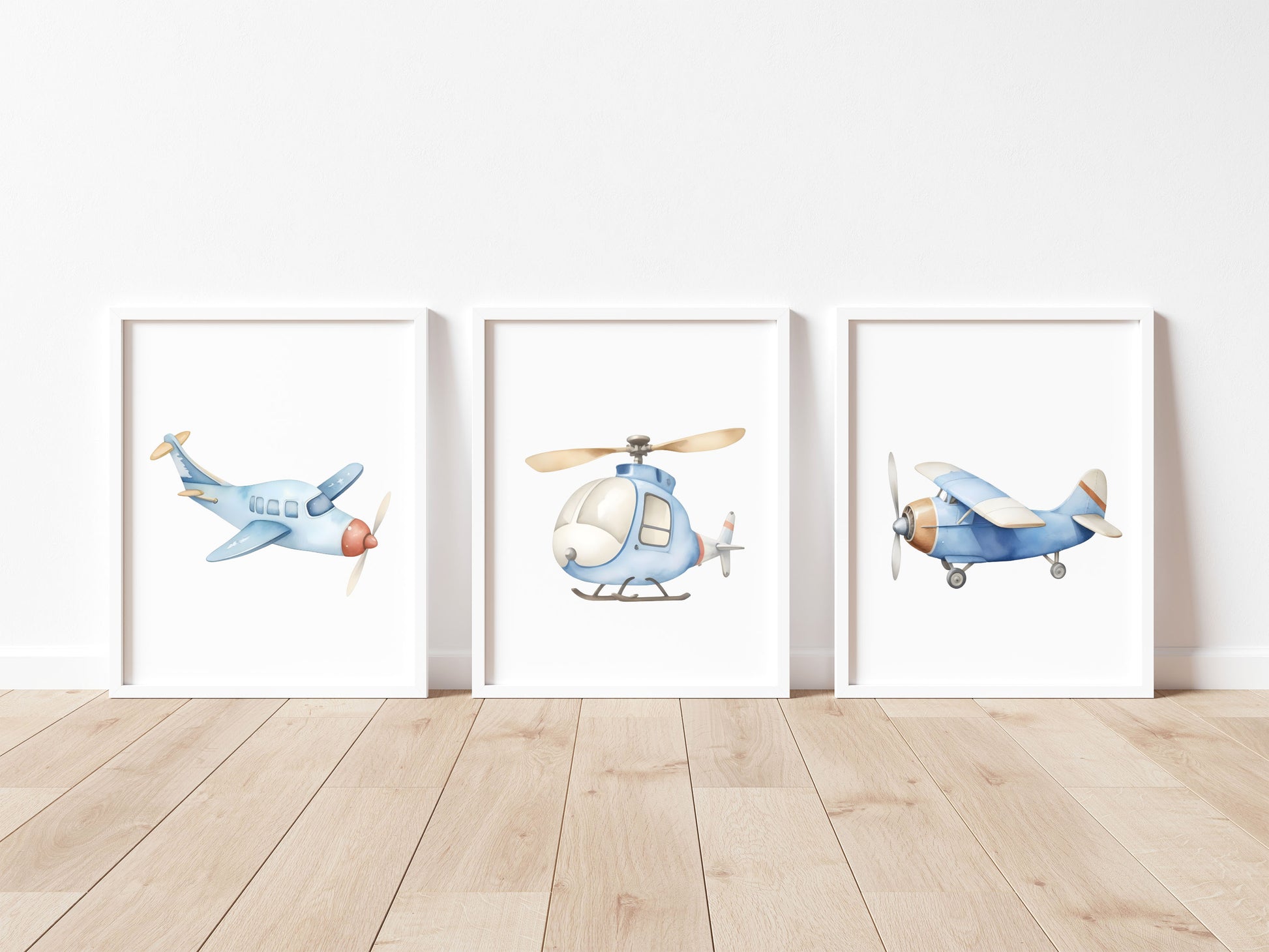 Air transport print set of 3 aviation aeroplane blue beige red boys transport wall art (unframed)