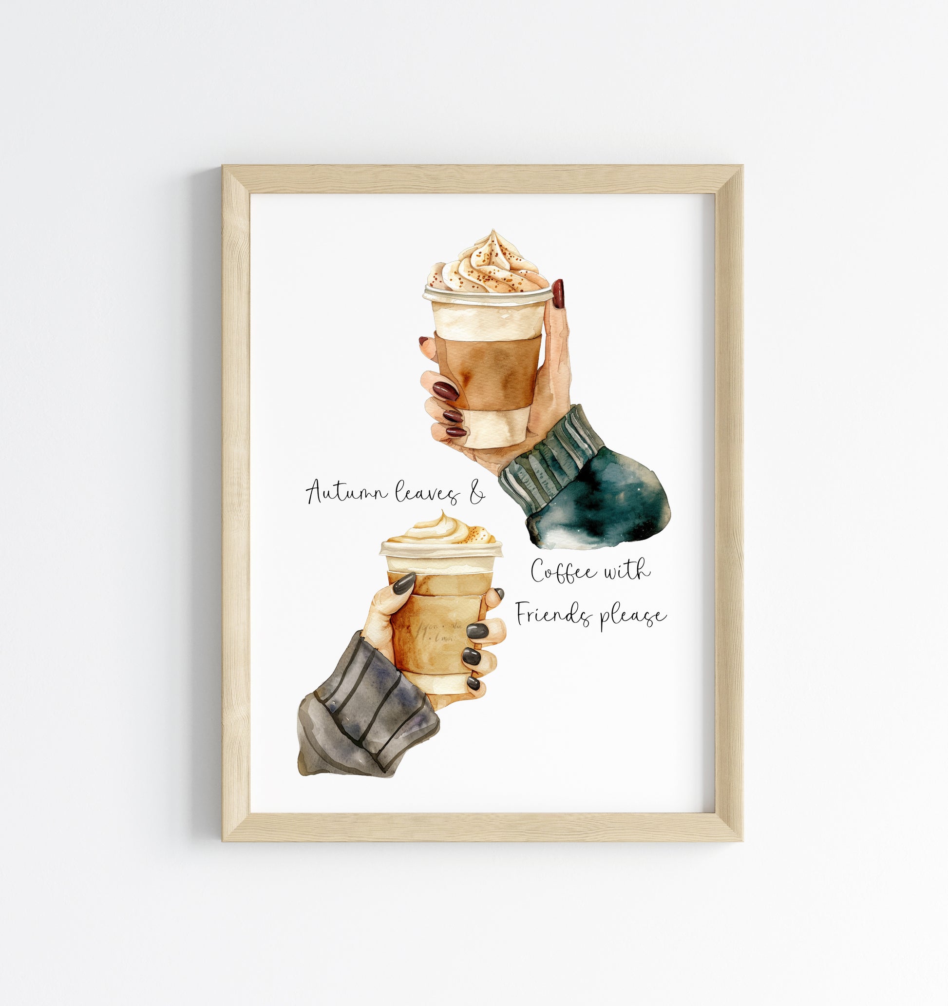 Autumn Coffee and Friends watercolour Art Print Cosy Beige Fall Decor unframed wall art poster
