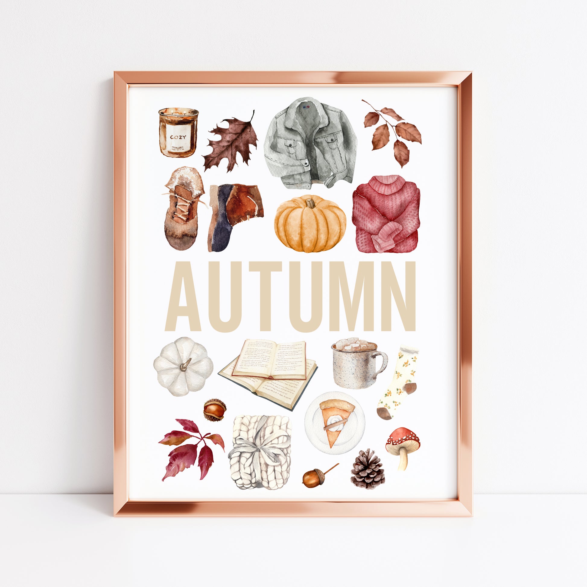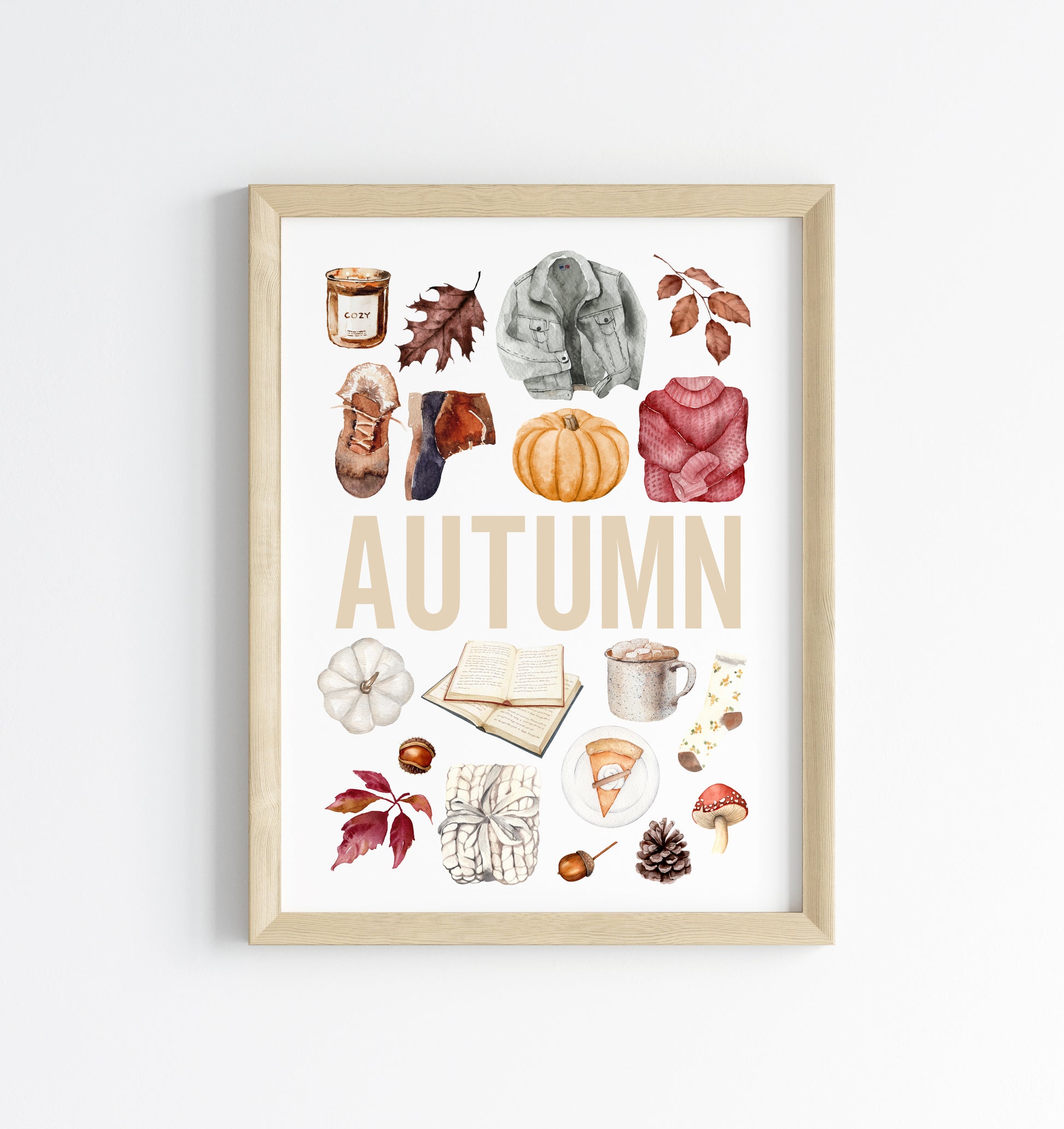 Autumn print, Autumn orange red watercolour autumn favourites seasonal unframed wall art poster print
