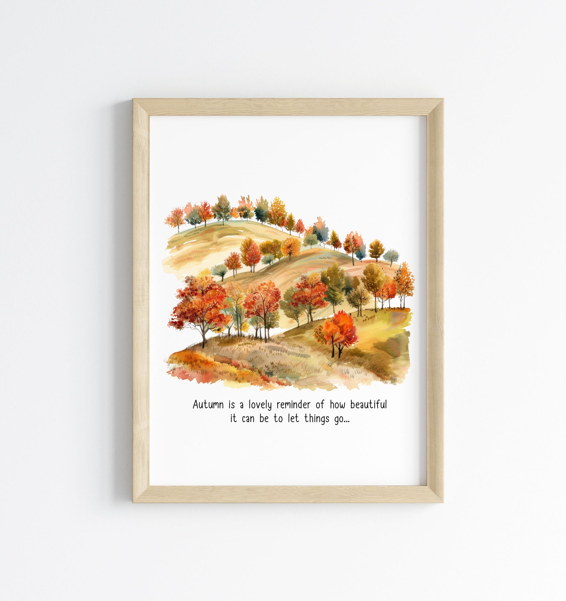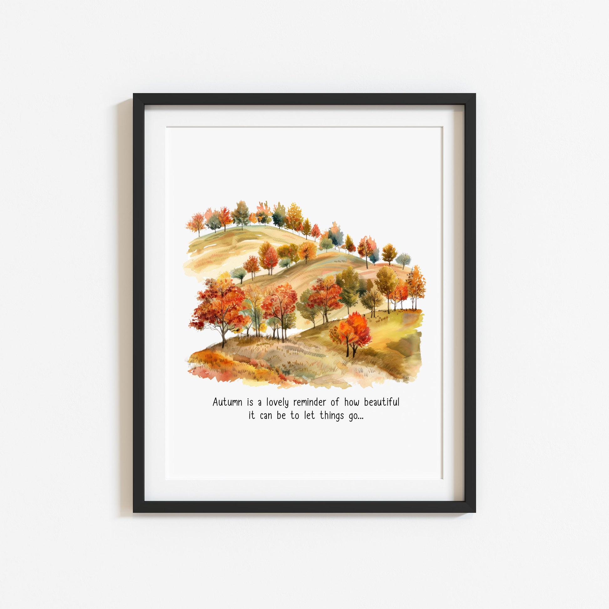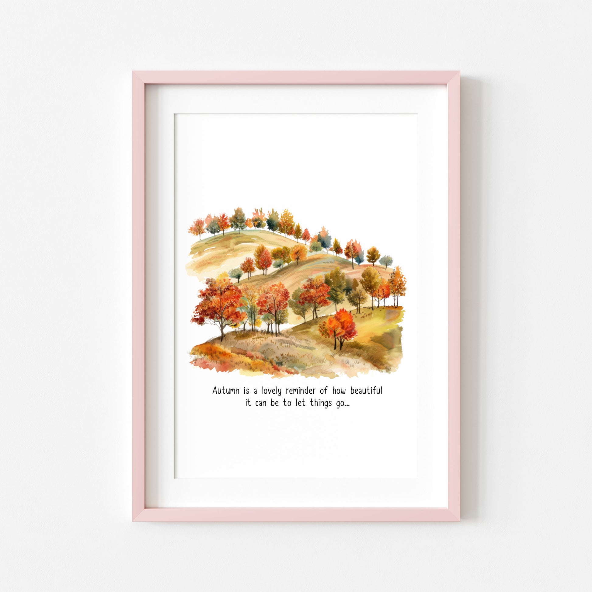 Autumn print, Autumn quote watercolour scenery trees unframed wall art poster