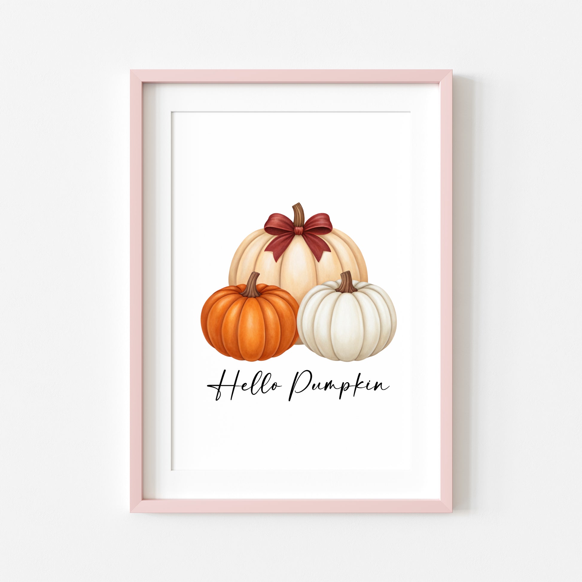 Autumn print, Hello Autumn Pumpkin trio watercolour unframed wall art poster