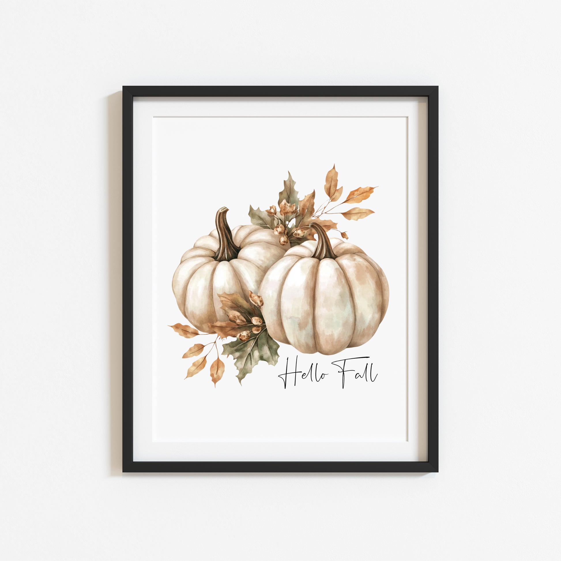 Autumn print Hello Fall Pumpkin & leaves seasonal Fall home decor unframed wall art poster print