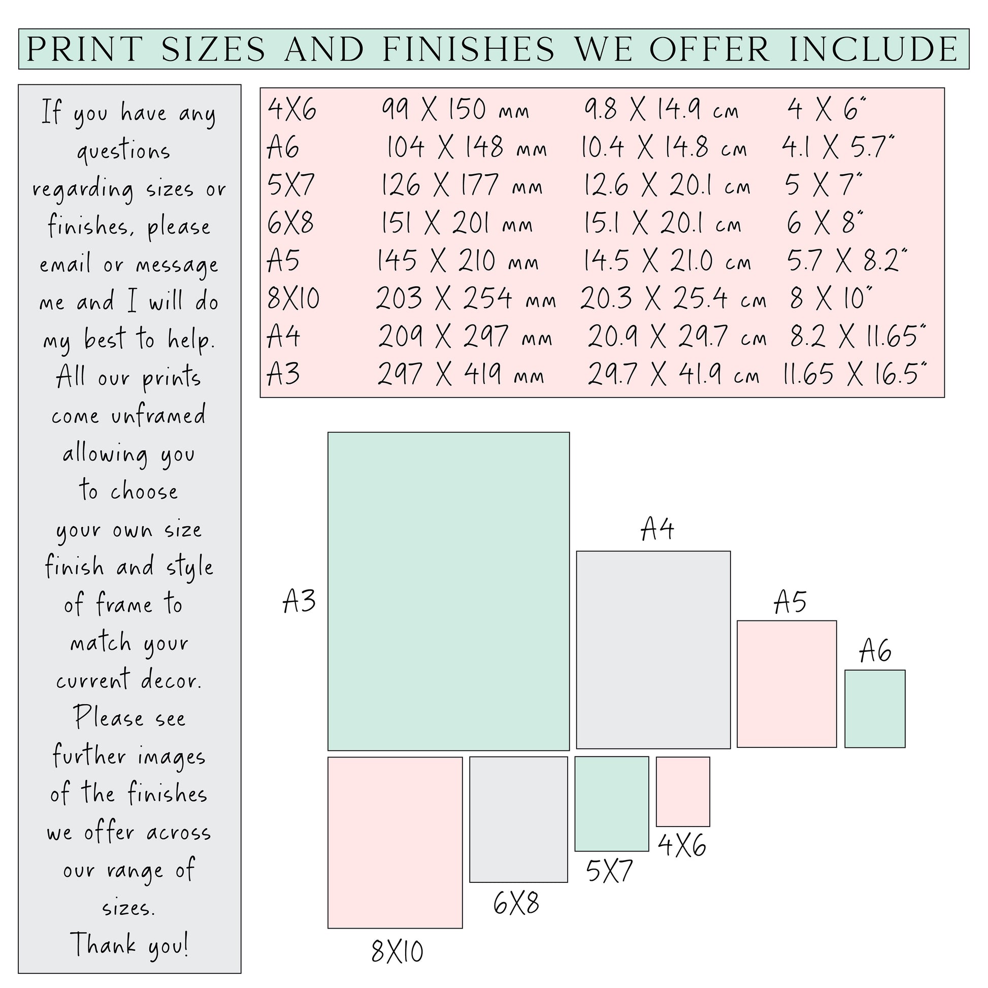 prints, processing & delivery times, postage & packaging and other relevant information regarding your order. Thank you!
