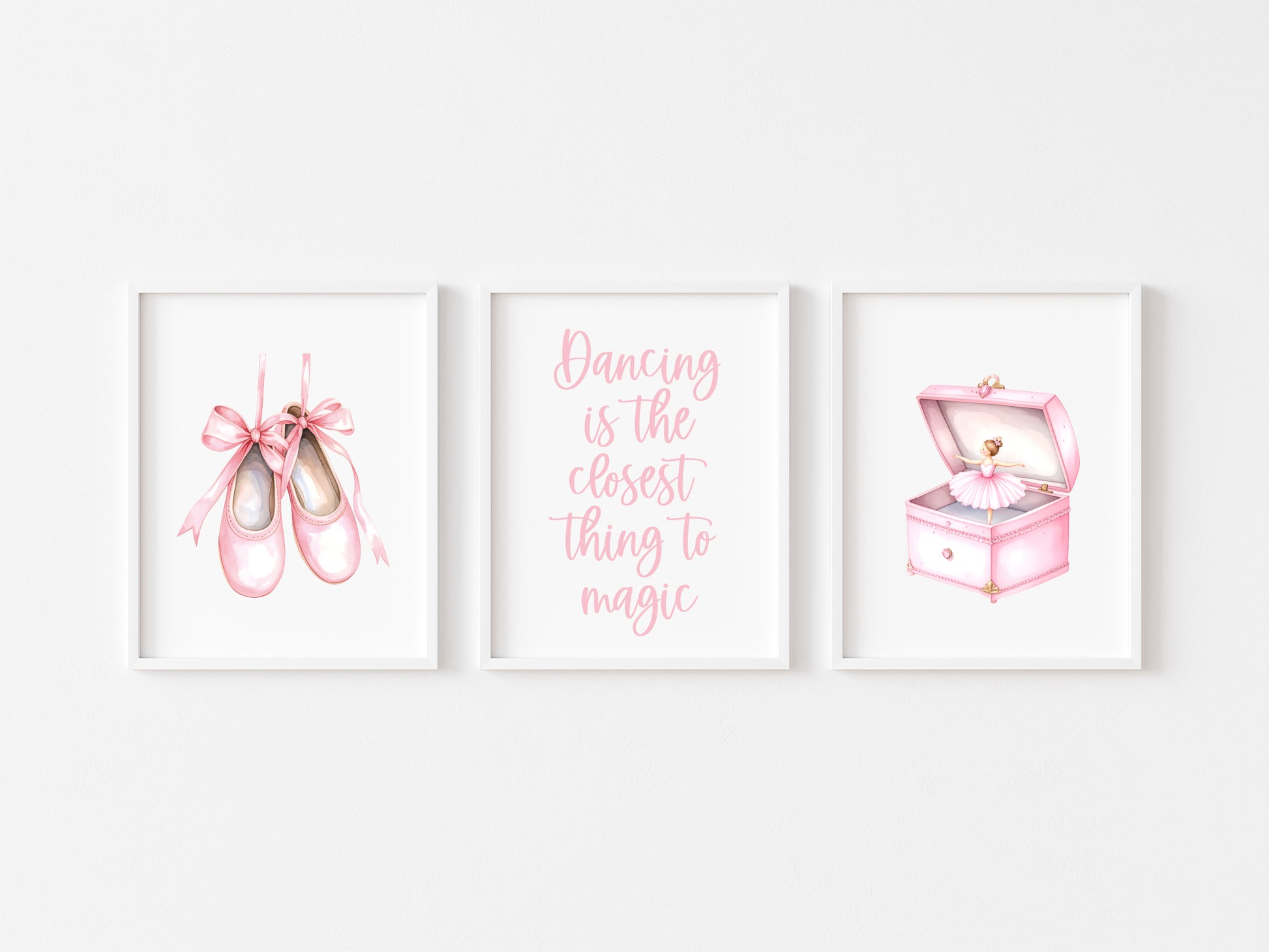 Ballet prints, set of girls pink ballet dancing dancer unframed wall art posters