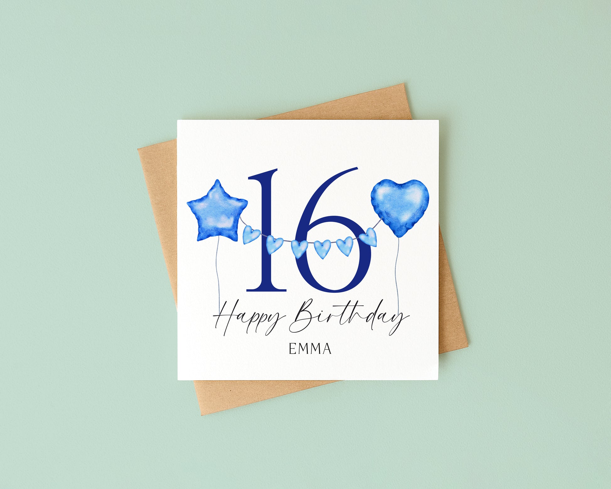 Birthday name & number card blue grey balloons stars happy Birthday personalised with Envelope Makes the perfect card to add a special touch to someone’s Birthday.