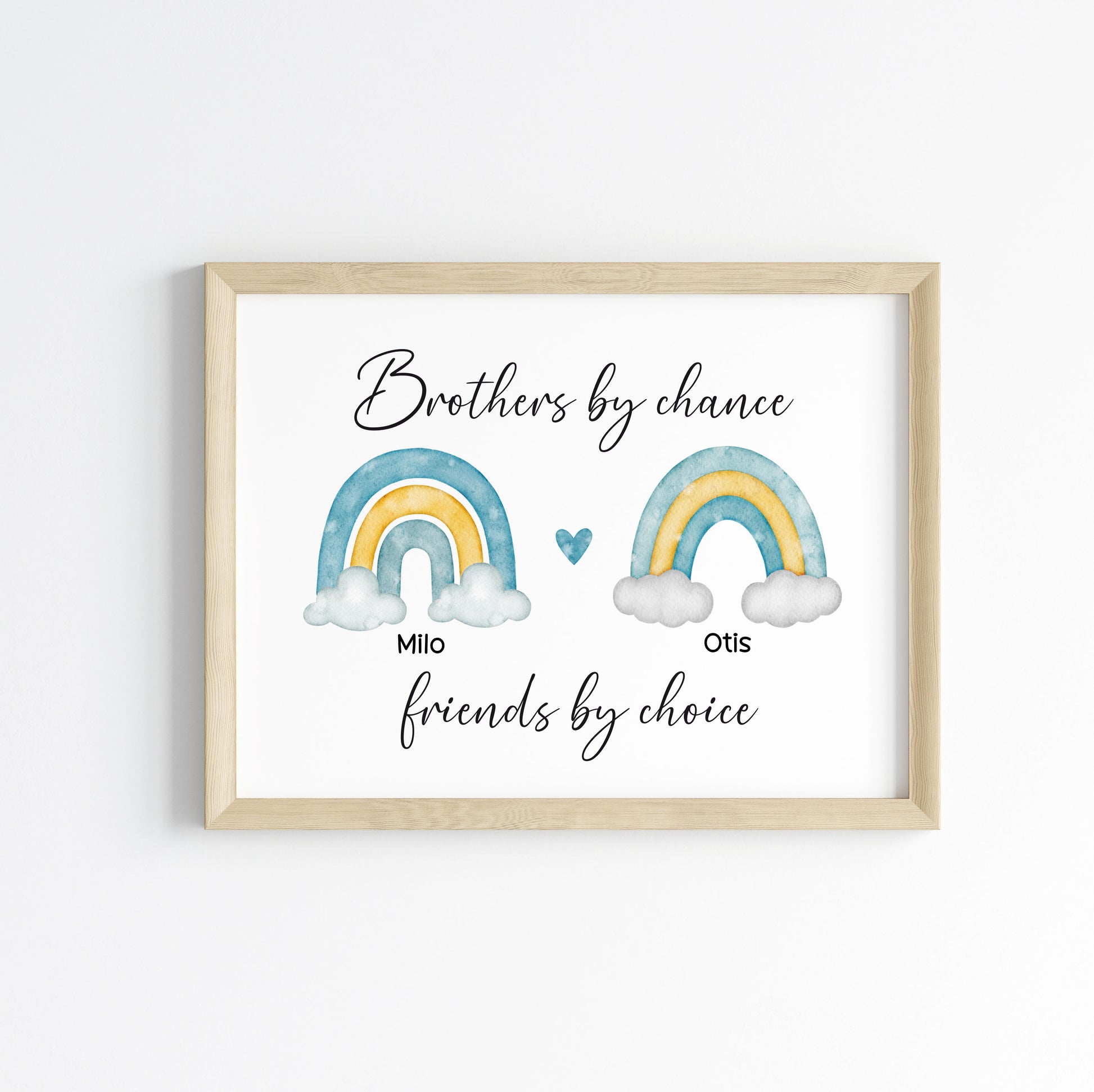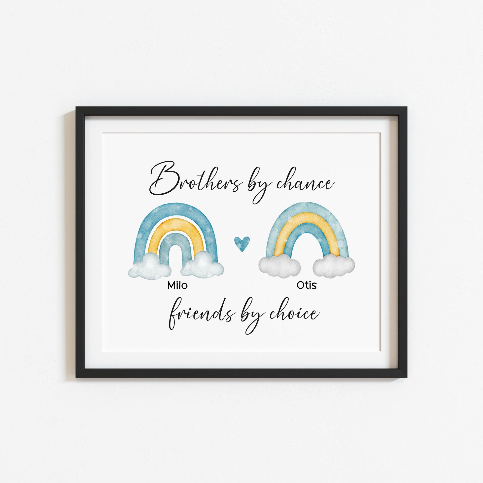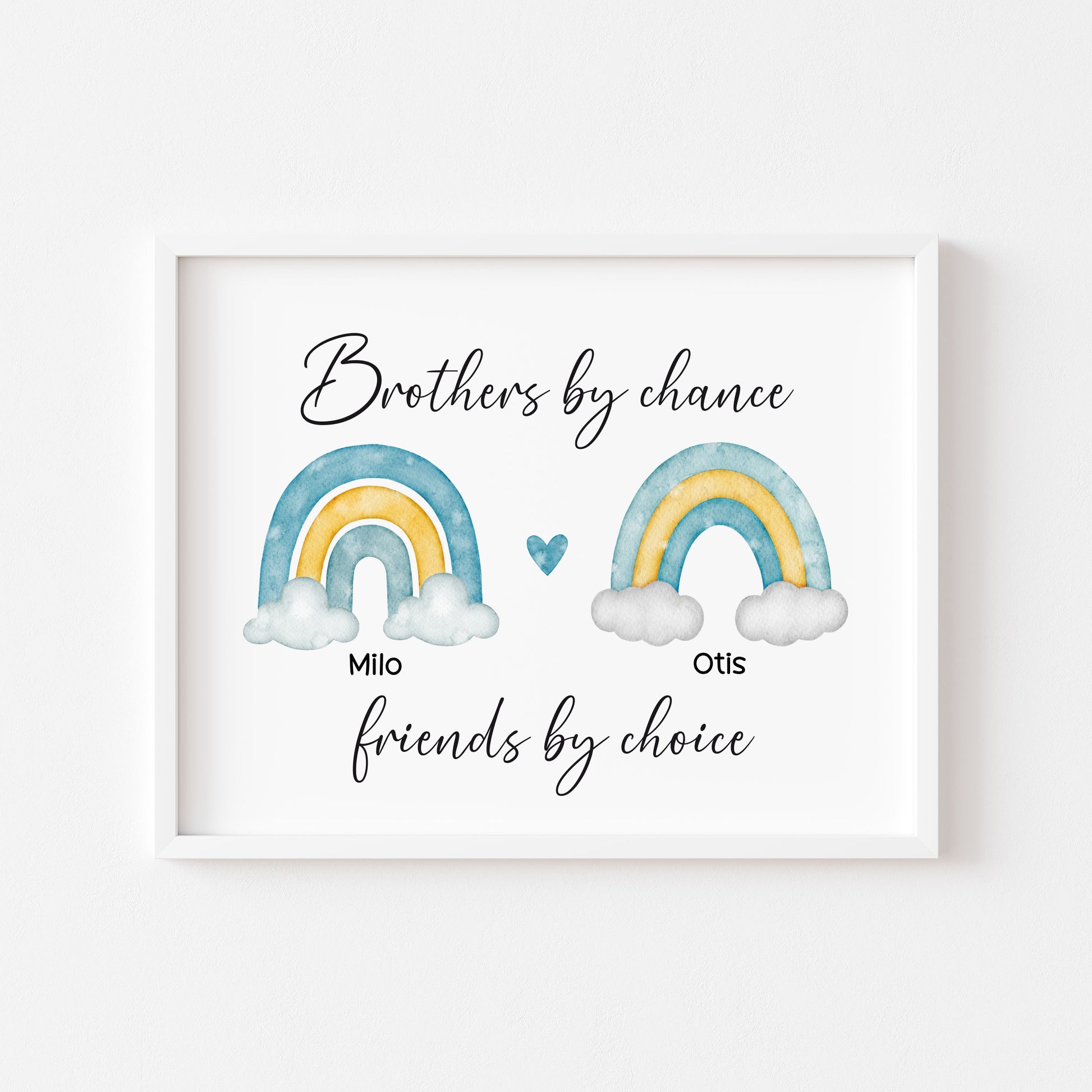 Brothers print, Brothers by chance, friends by choice personalised names rainbows blue green yellow unframed wall art