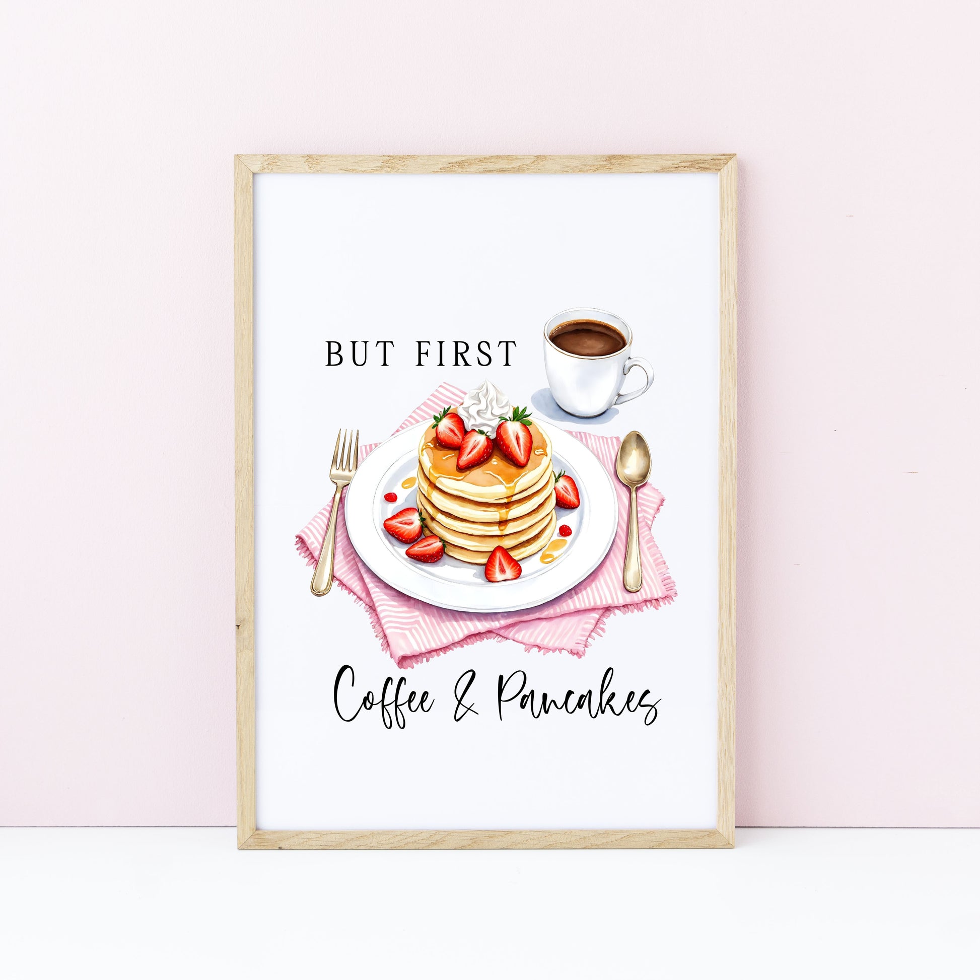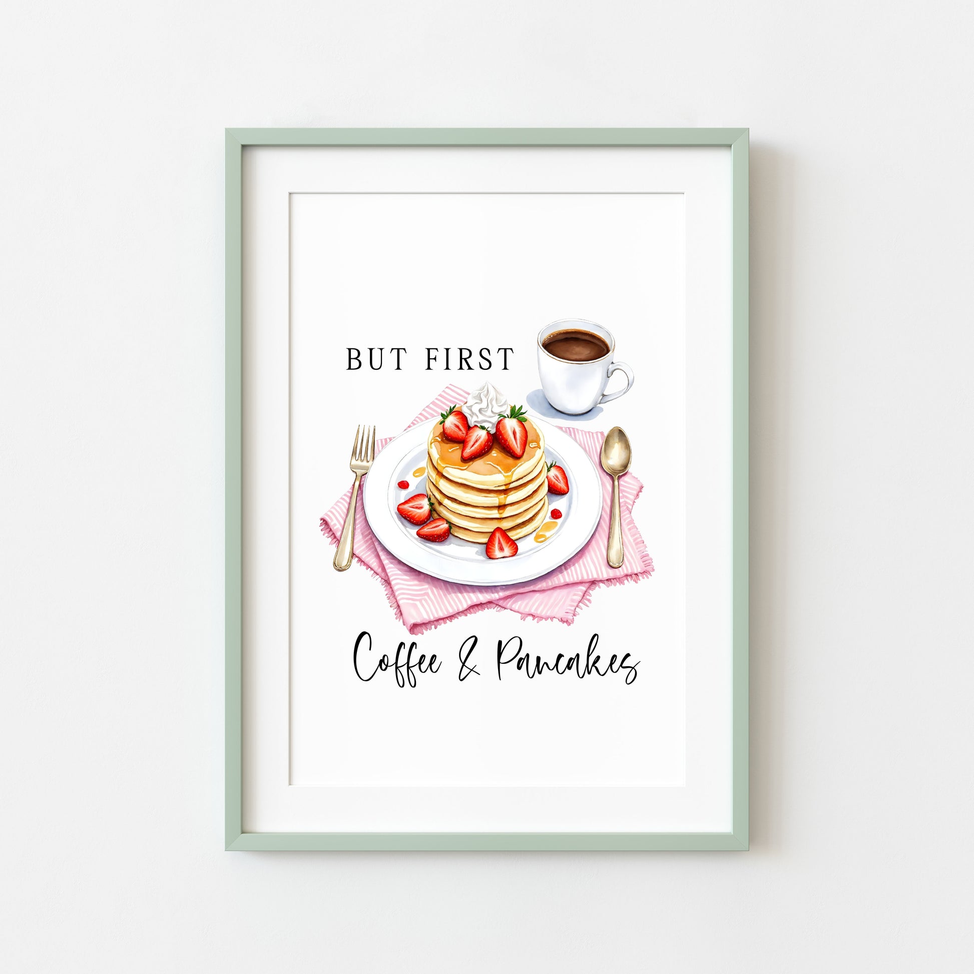 But first Coffee & Pancakes watercolour Kitchen Wall Art (unframed)