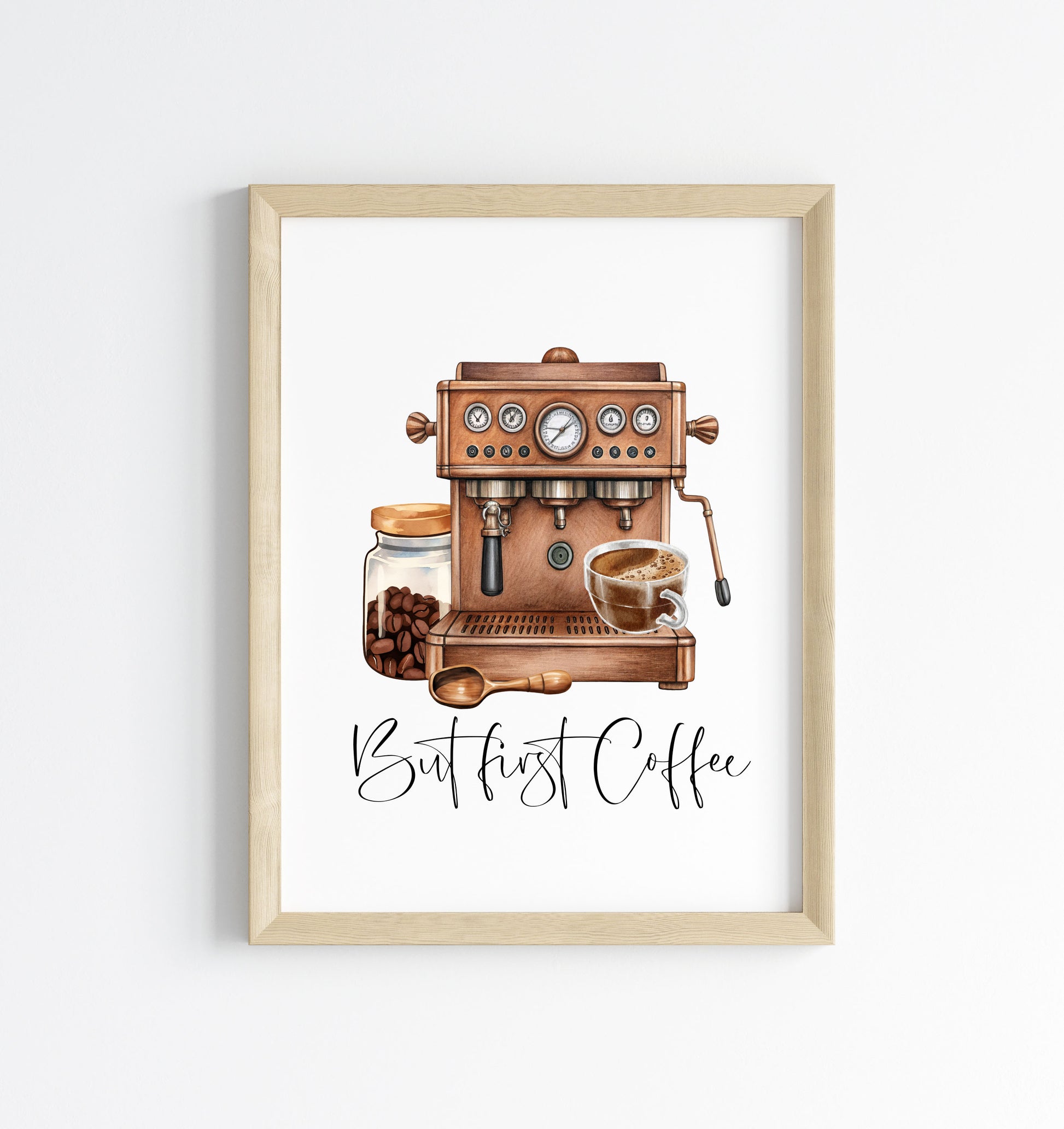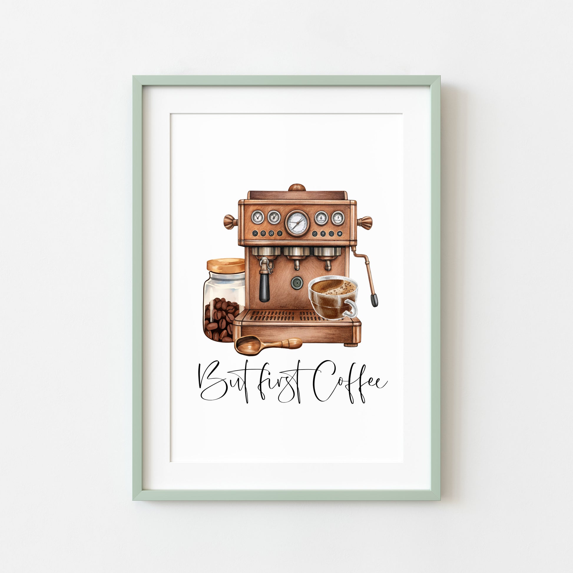 But First Coffee Print Watercolour coffee machine scene Kitchen unframed Wall Art