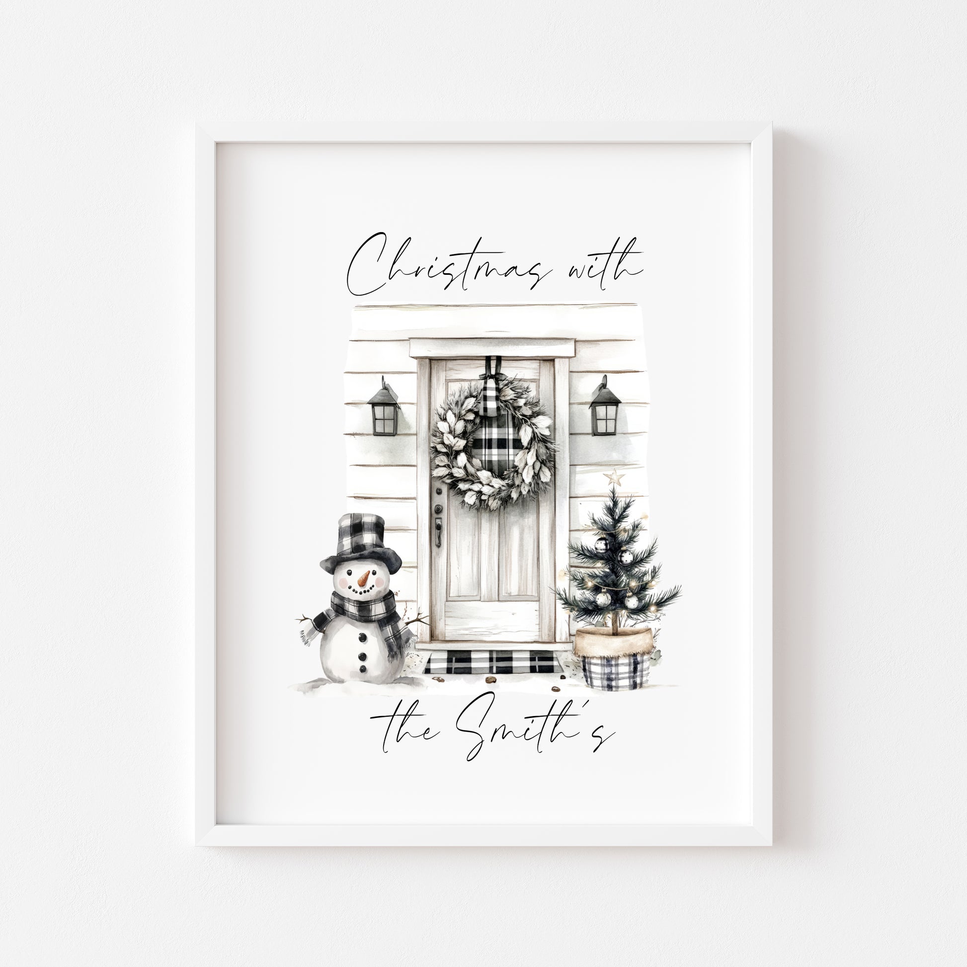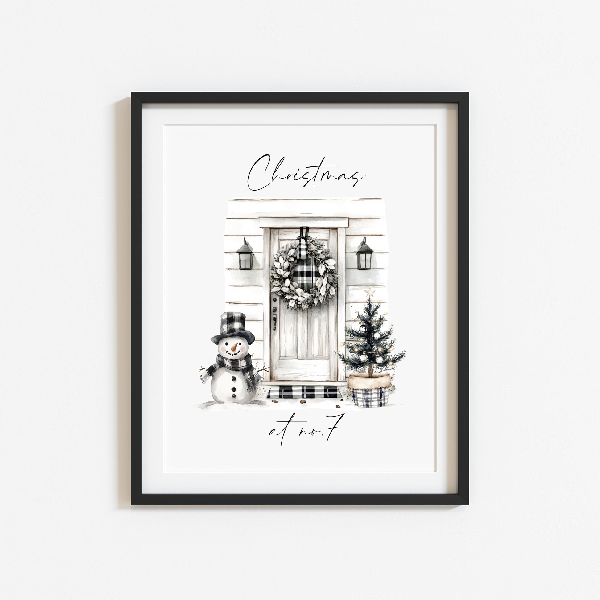 Christmas print, Christmas front door Christmas at no. Christmas at or with your family name seasonal unframed wall art poster print
