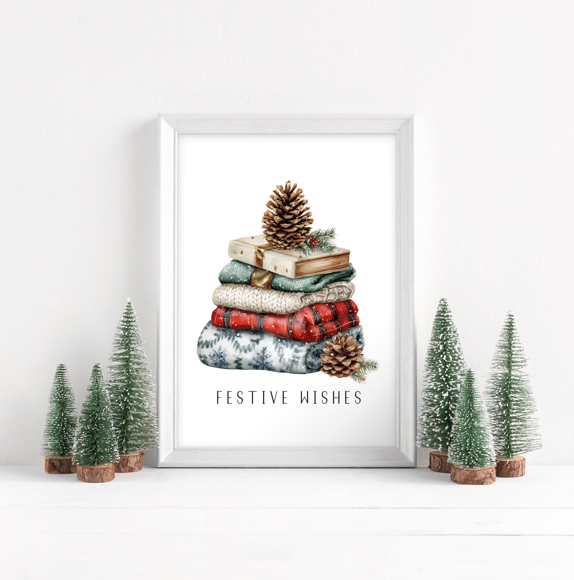 Christmas Print Festive wishes Red Black & Green watercolour Wall Art (unframed)