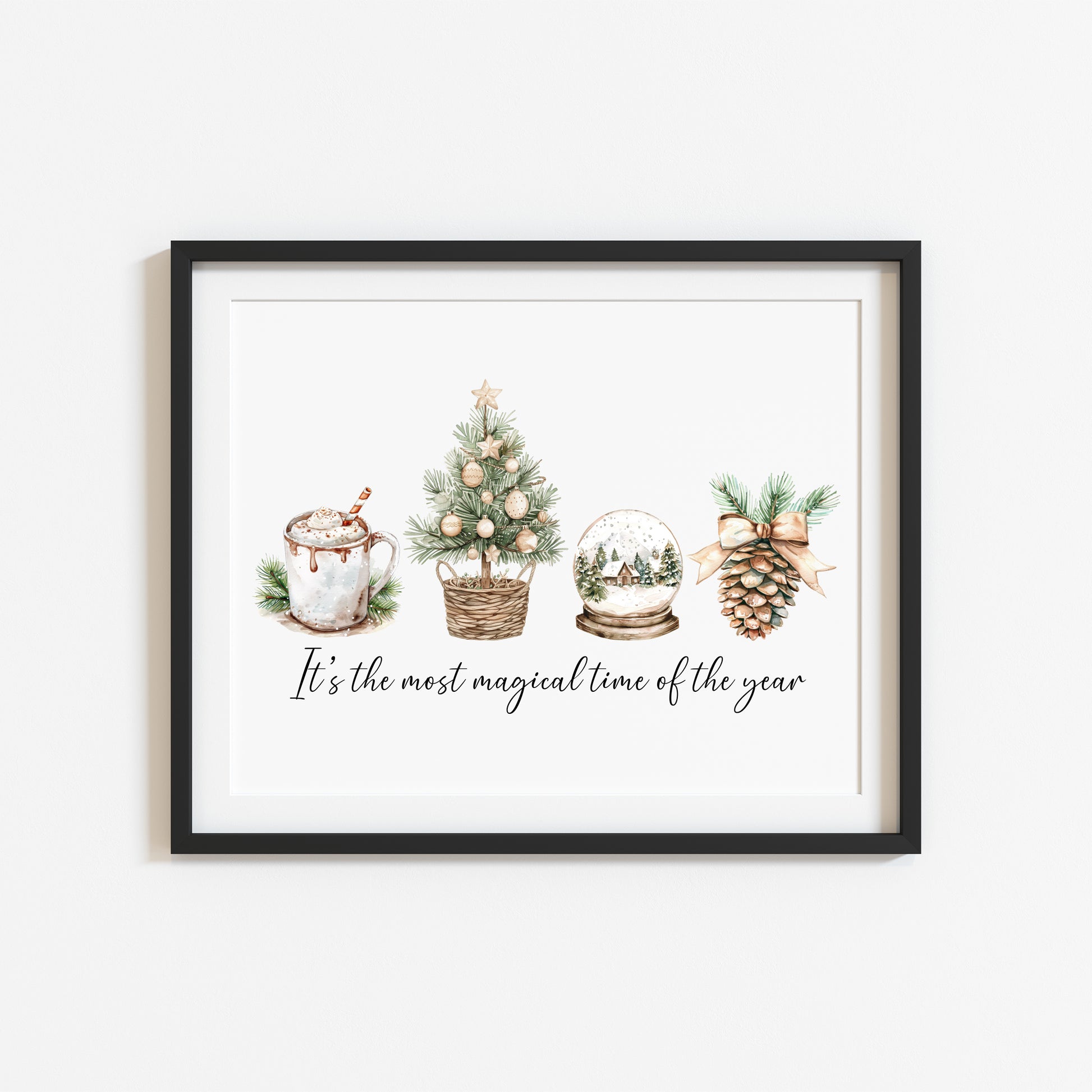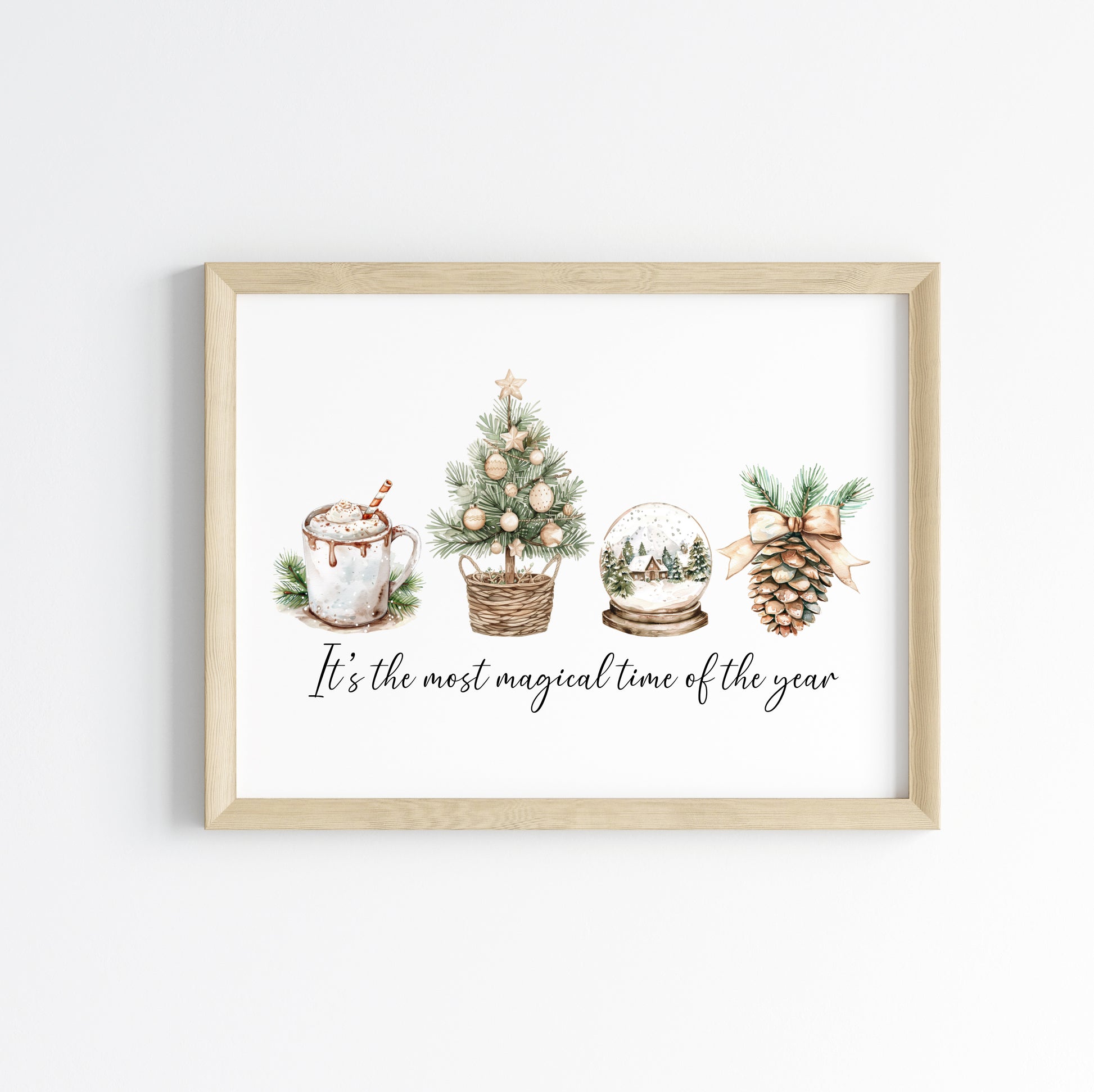 Christmas print, the most magical time of the year beige green watercolour unframed seasonal wall art poster