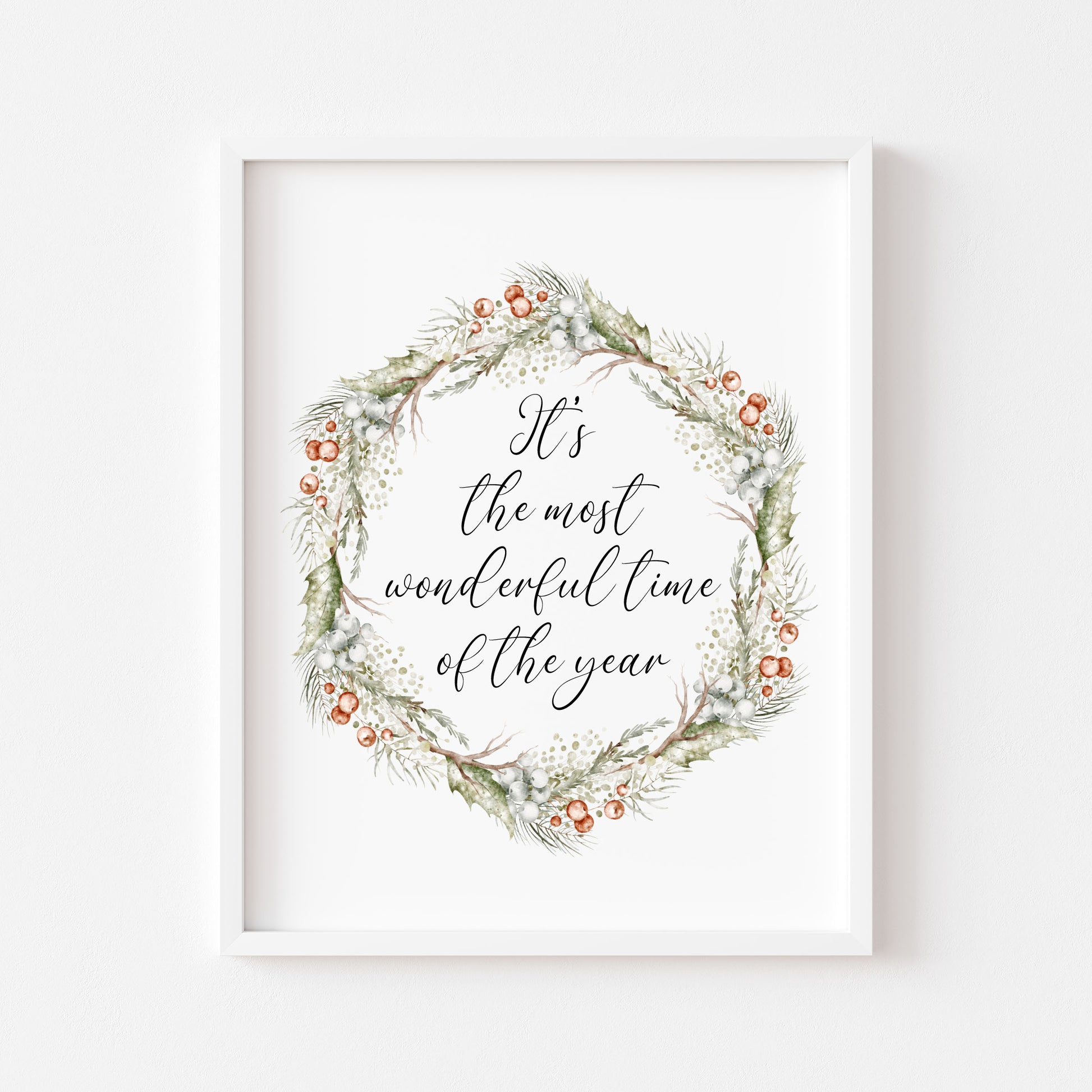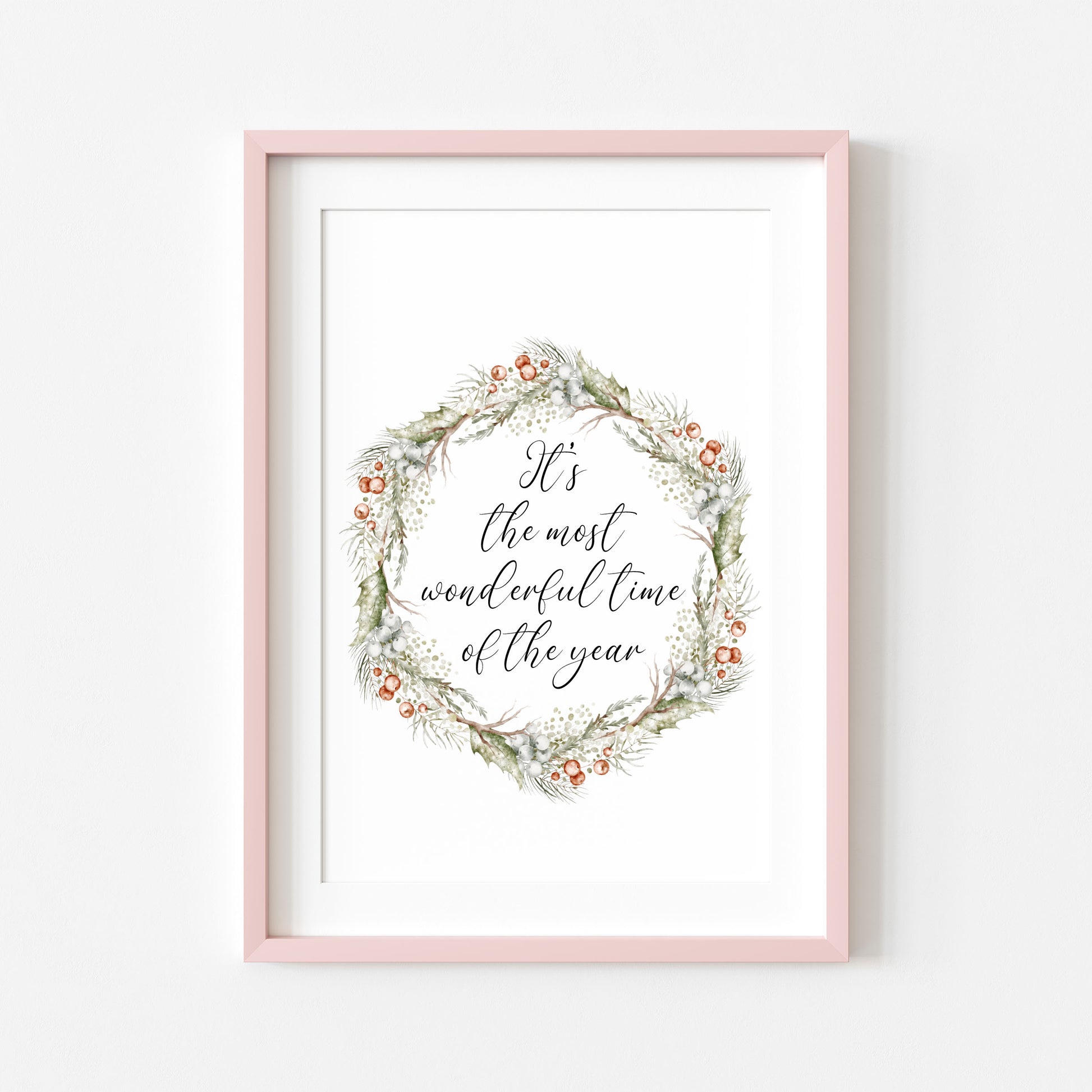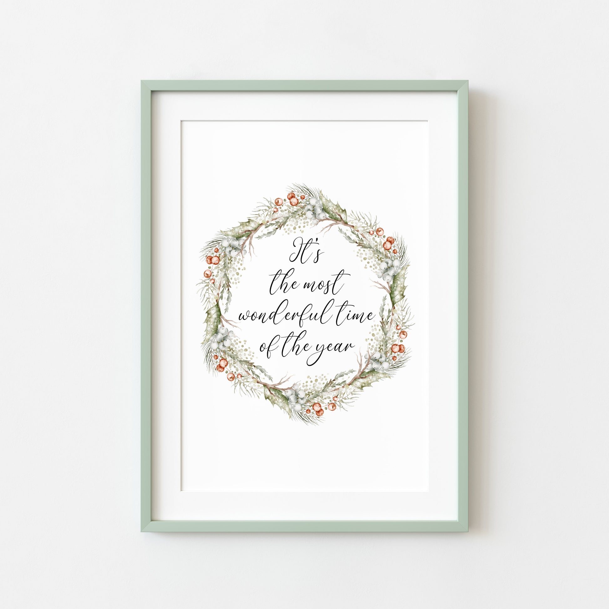 Christmas Print Watercolour Green white red wreath Seasonal Wall Art (unframed)