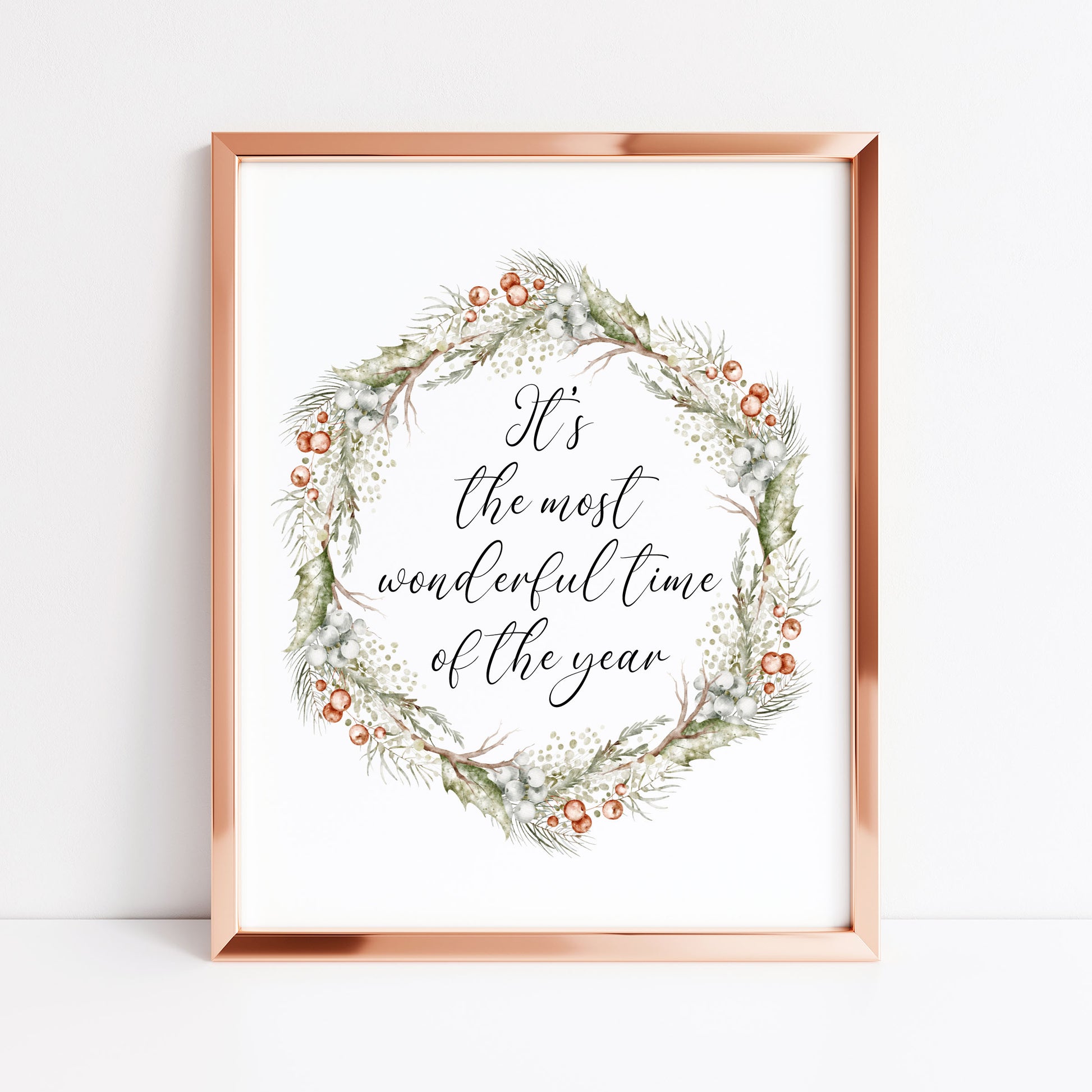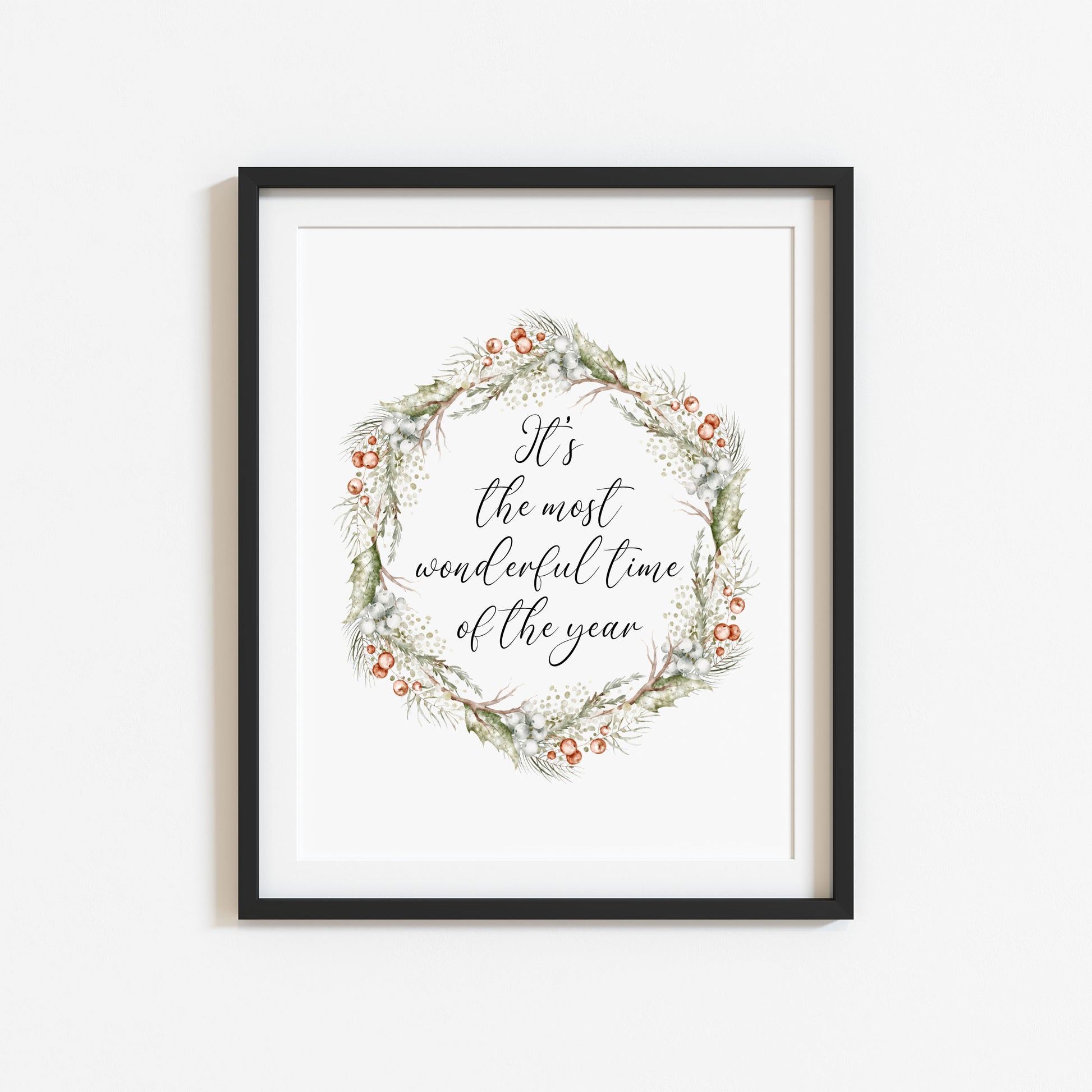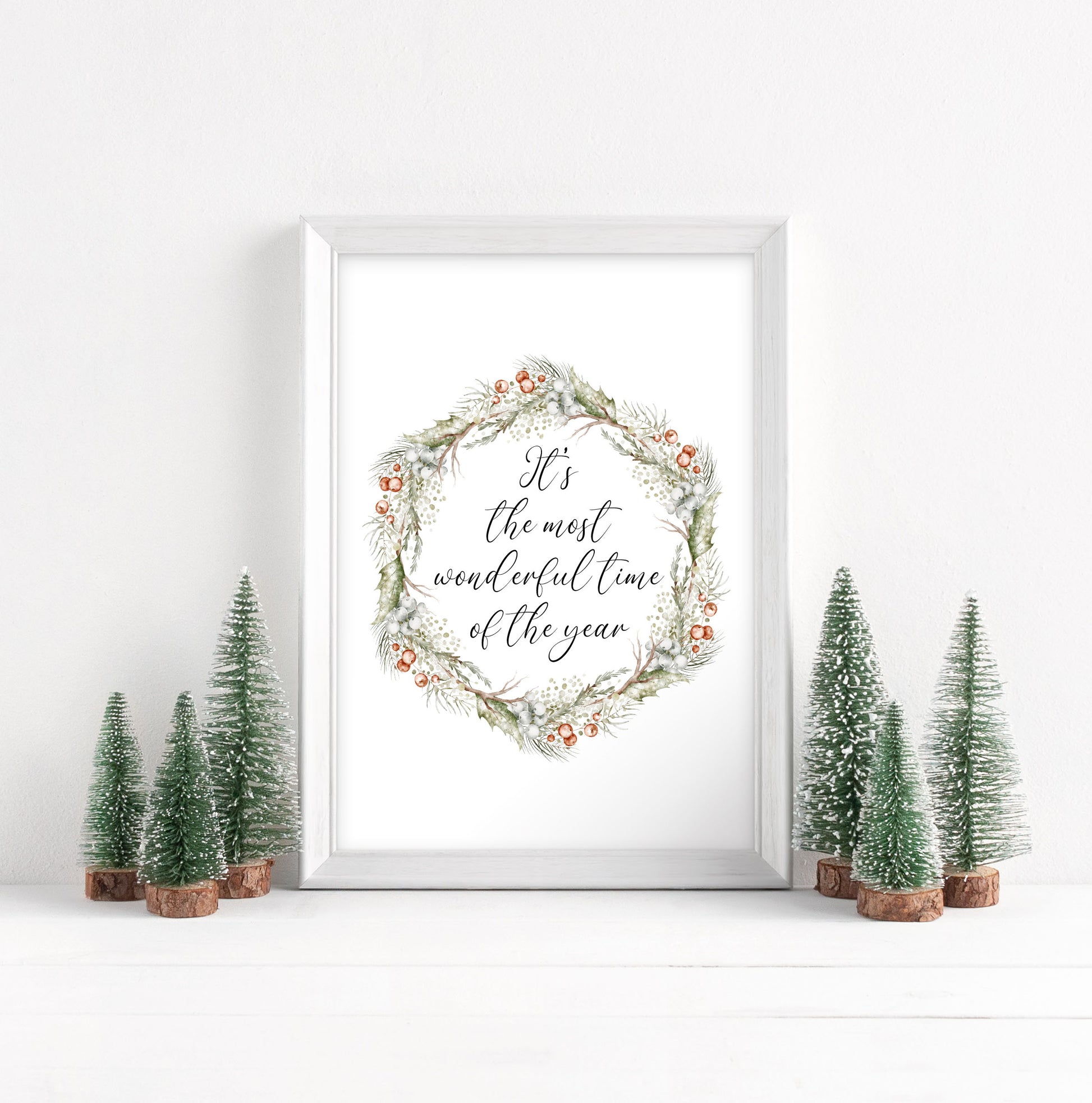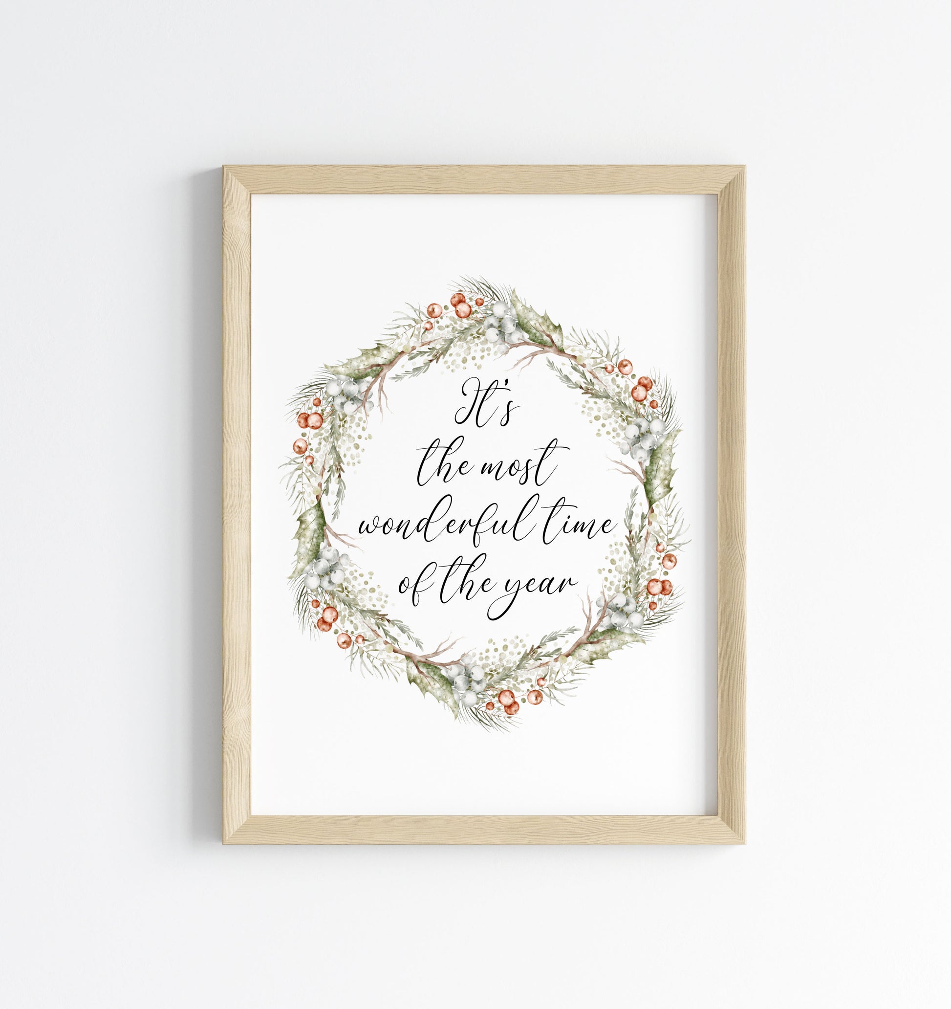 Christmas Print Watercolour Green white red wreath Seasonal Wall Art (unframed)