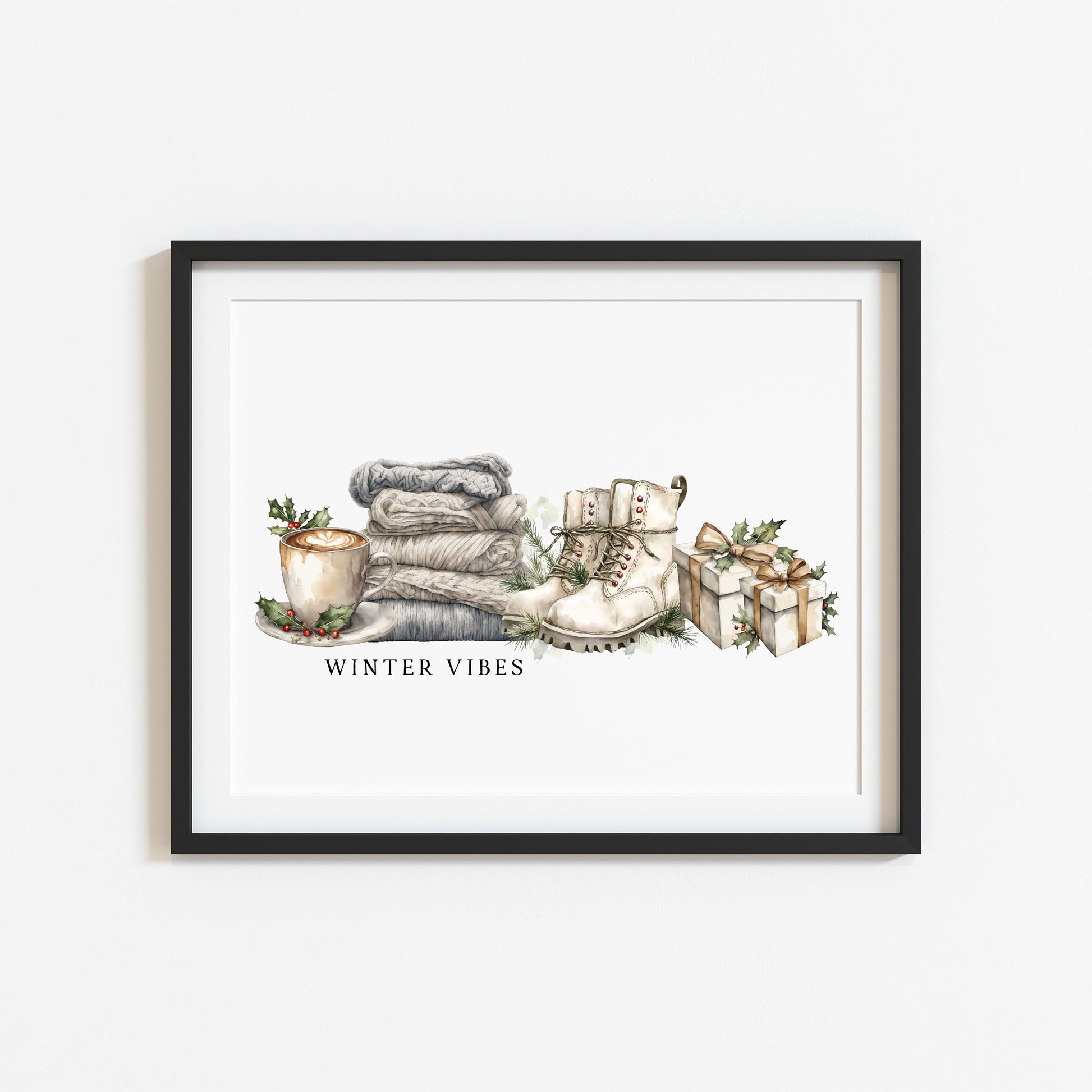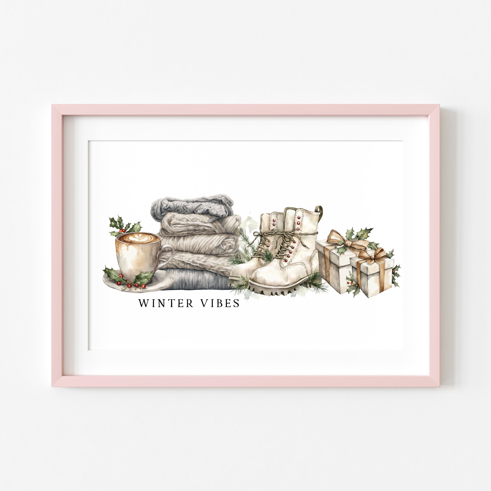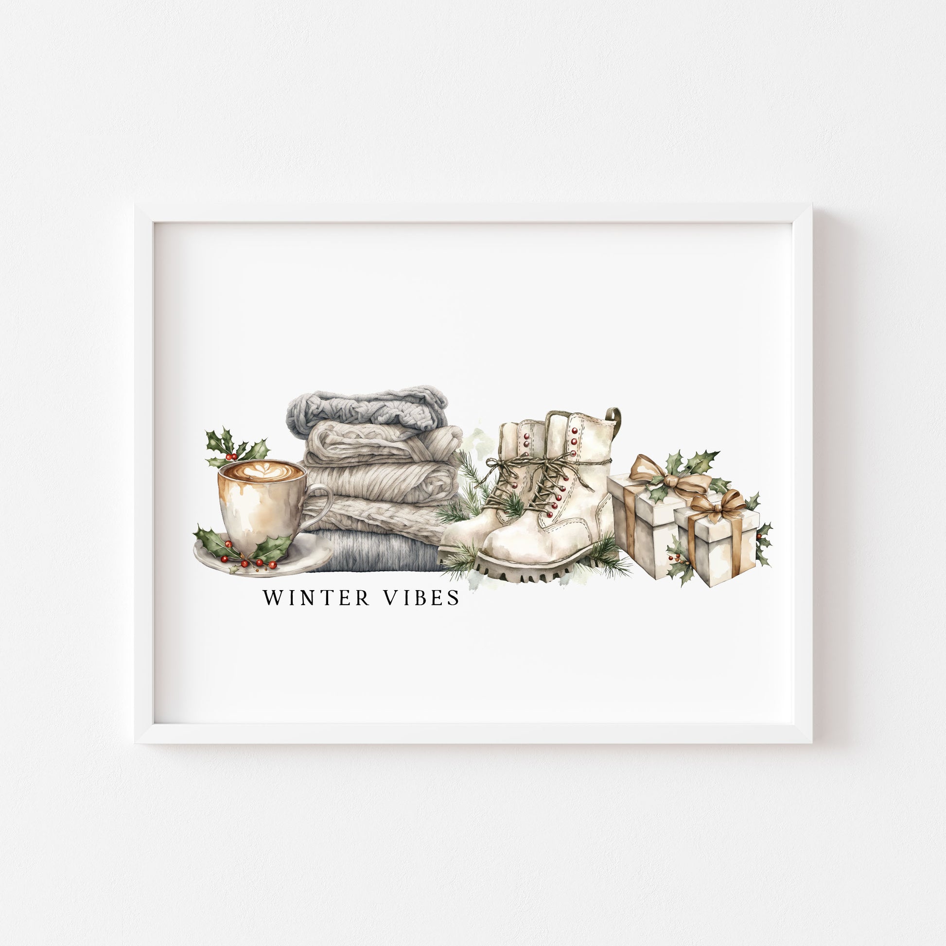 Christmas Print Winter Vibes blue green grey watercolour xmas Wall Art (unframed)
