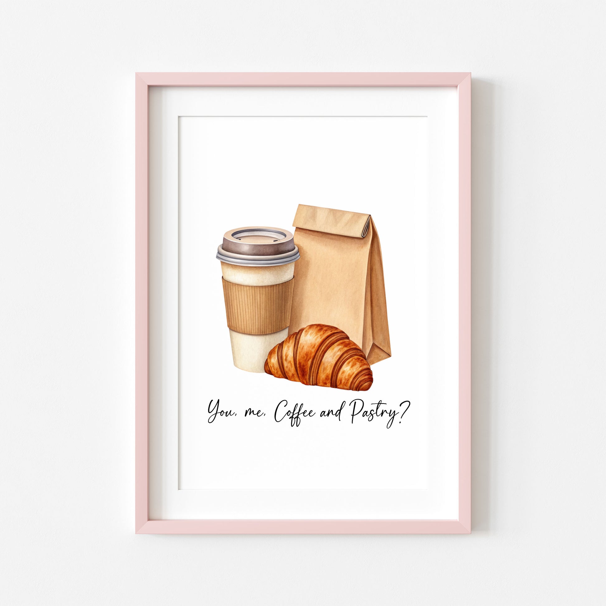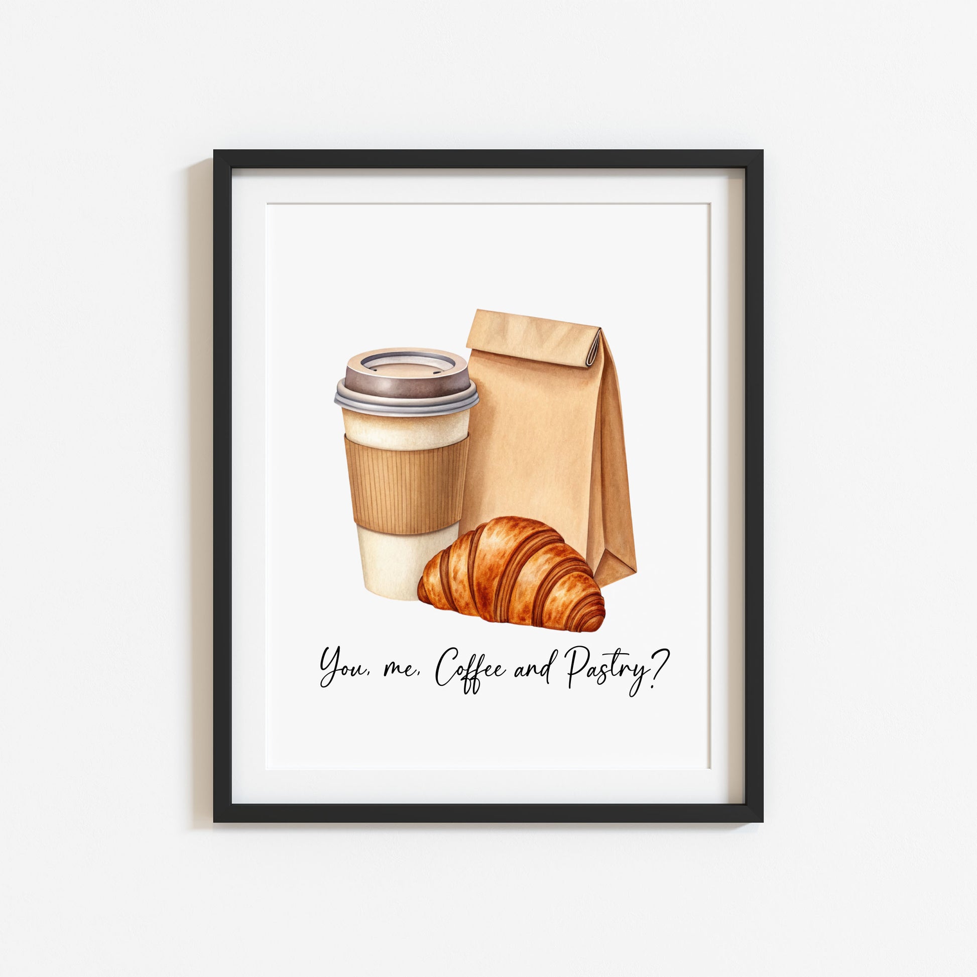 Coffee & Pastry Print Watercolour coffee croissant Kitchen unframed Wall Art