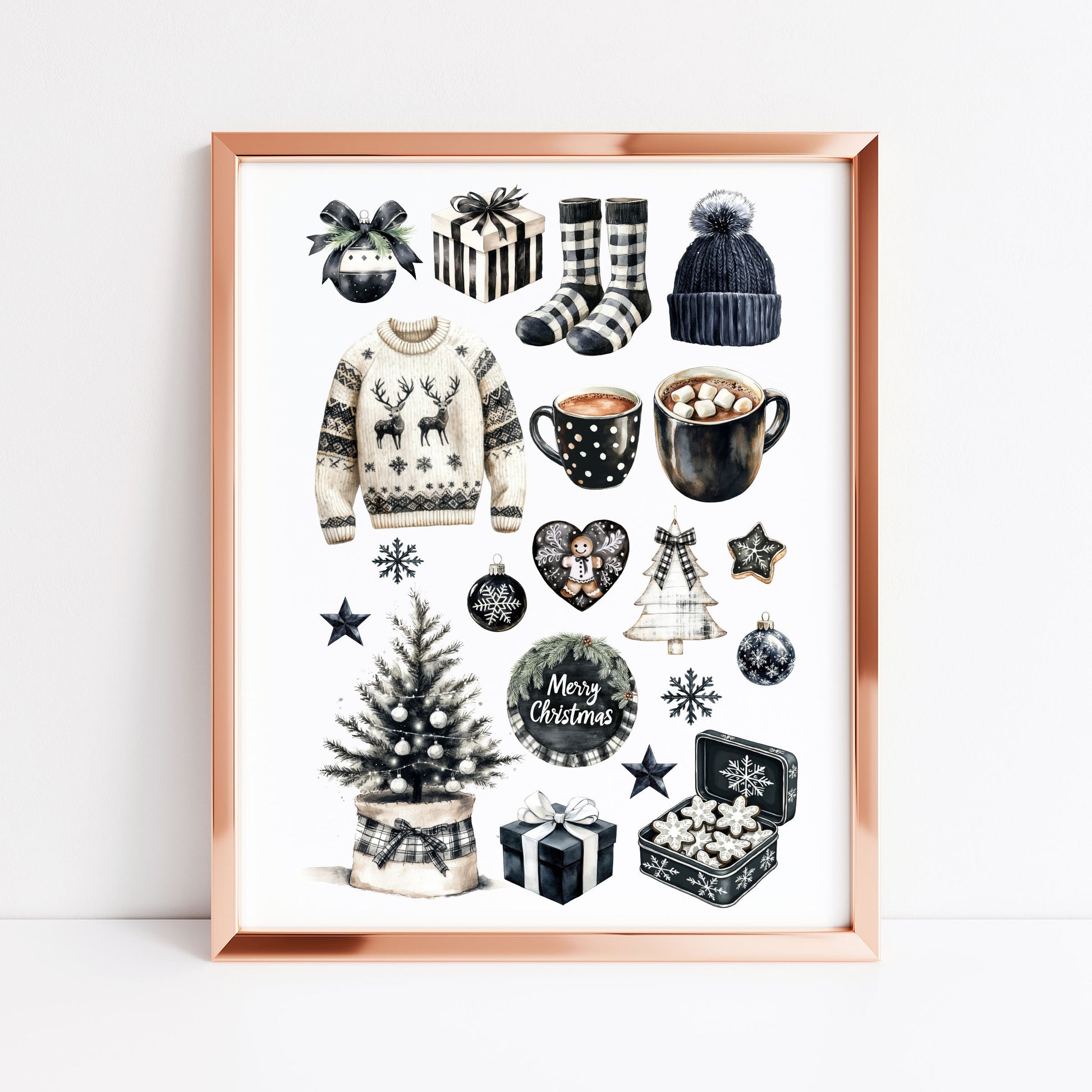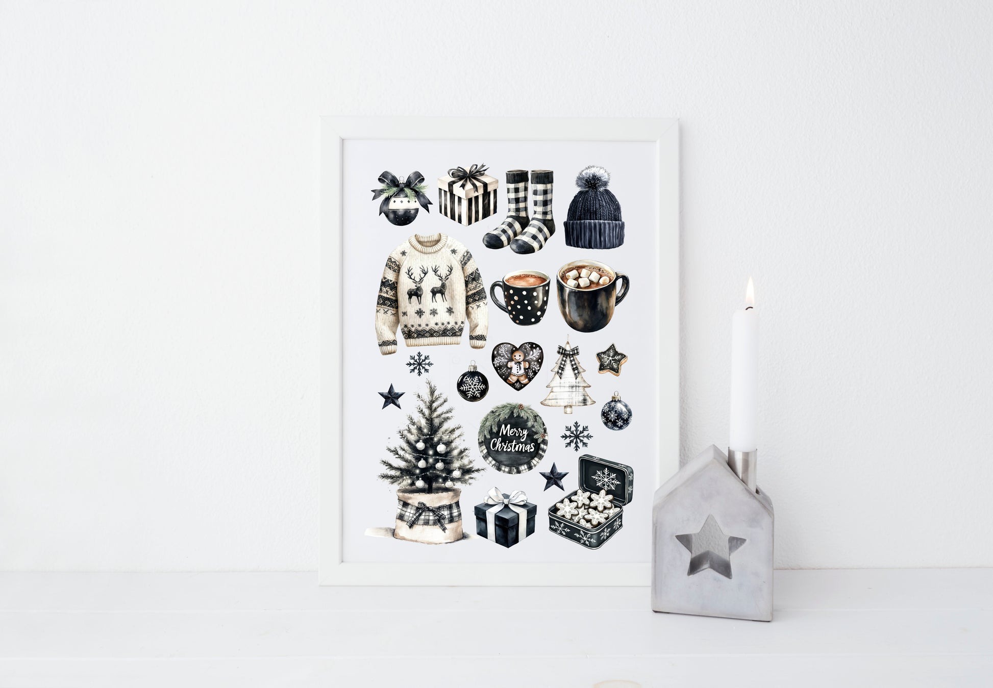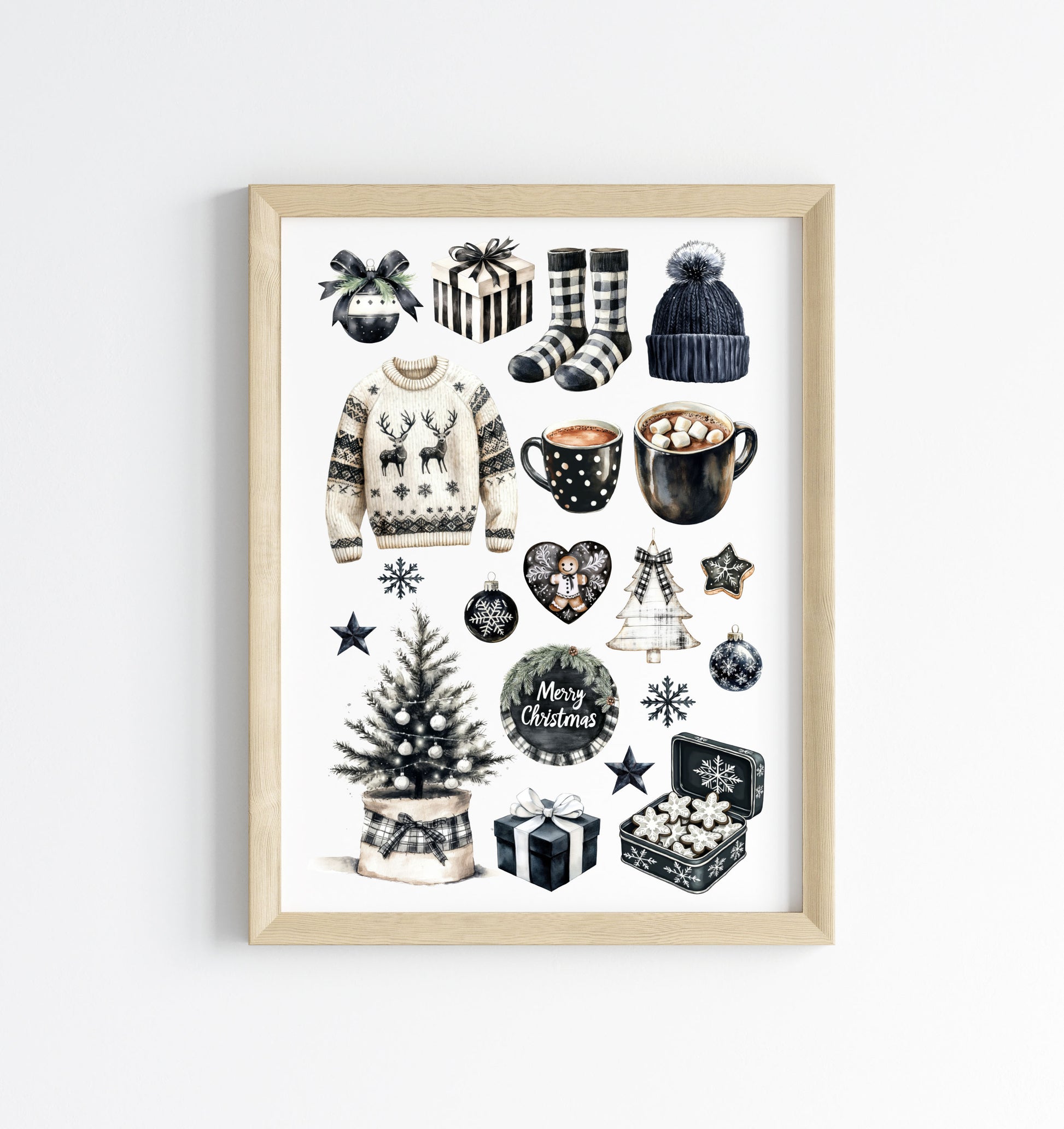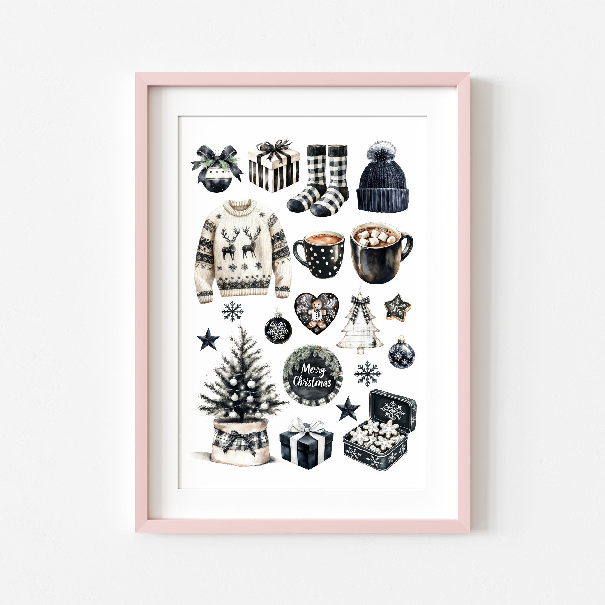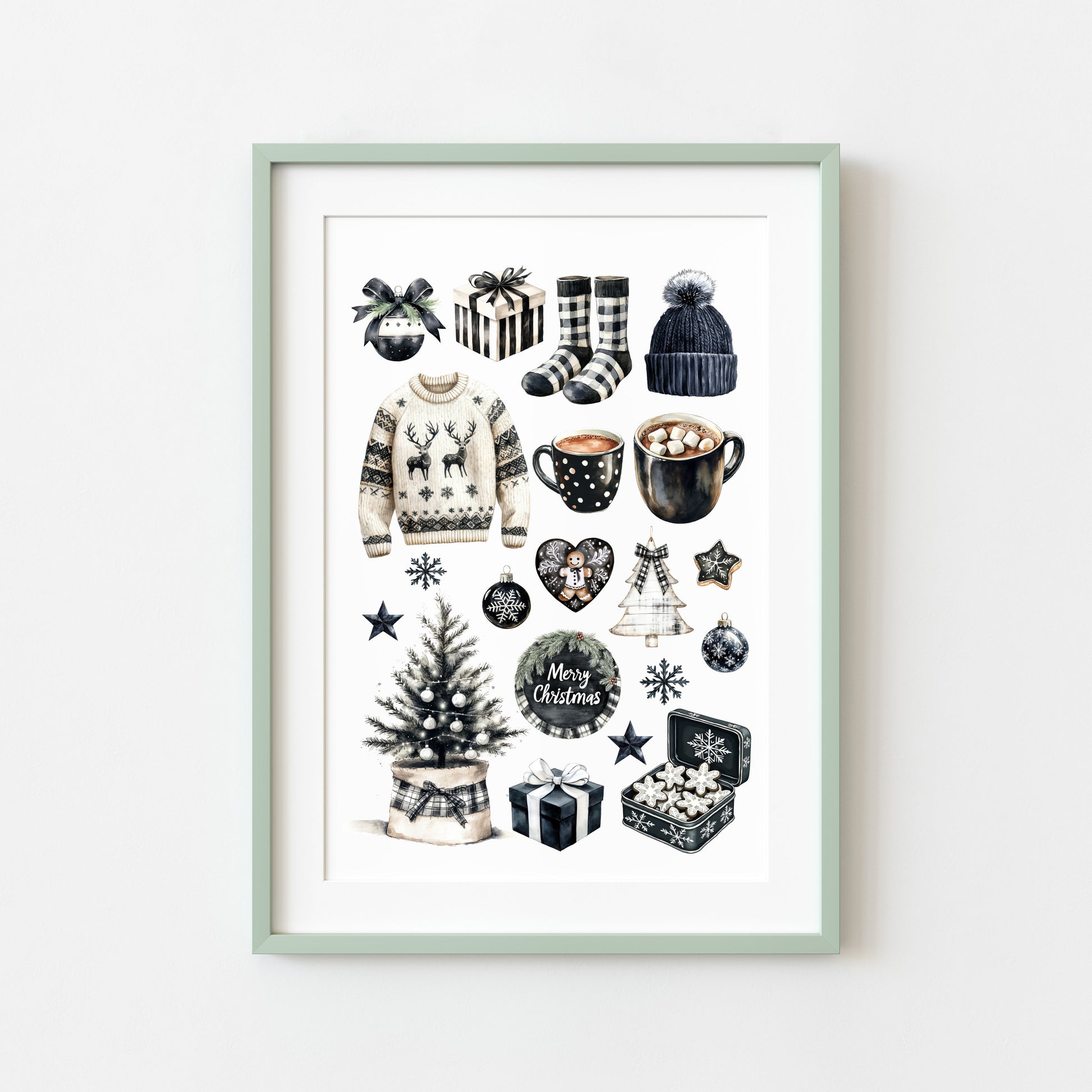 Cosy Winter Vibes monochrome mood board seasonal unframed wall art poster print