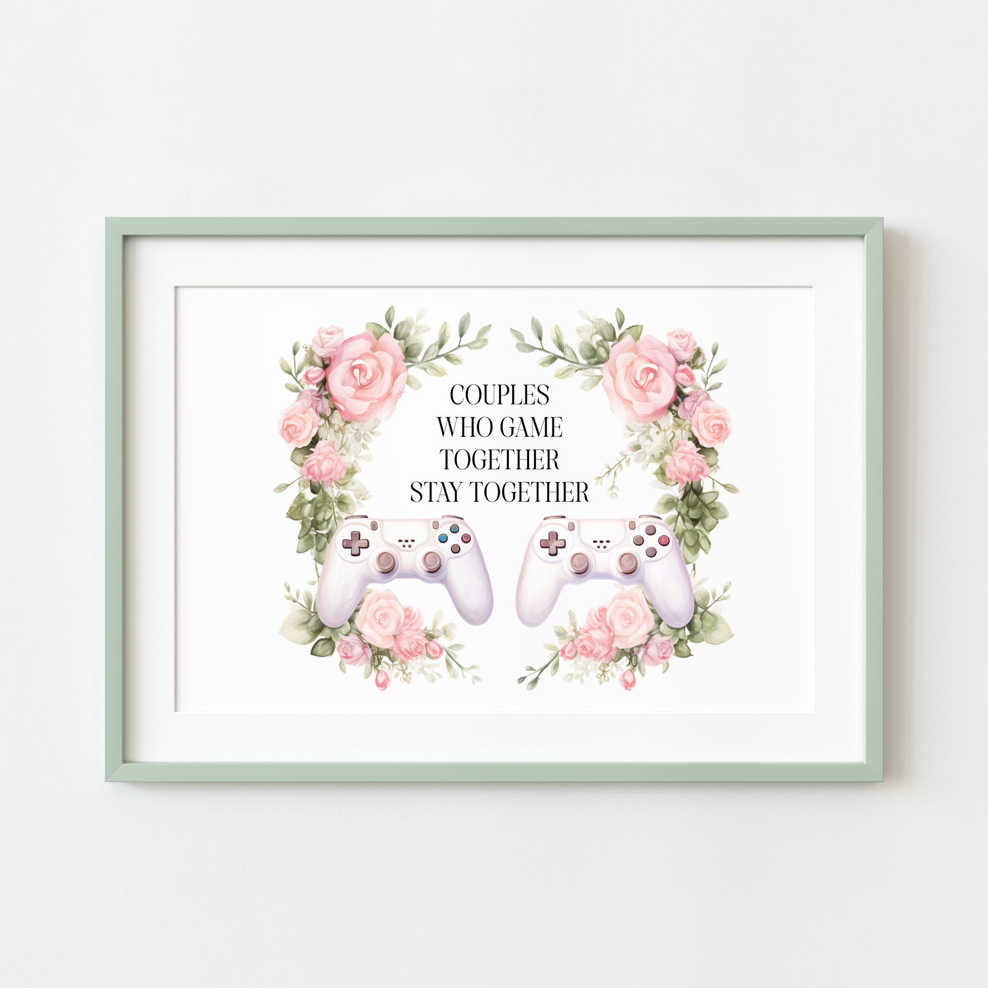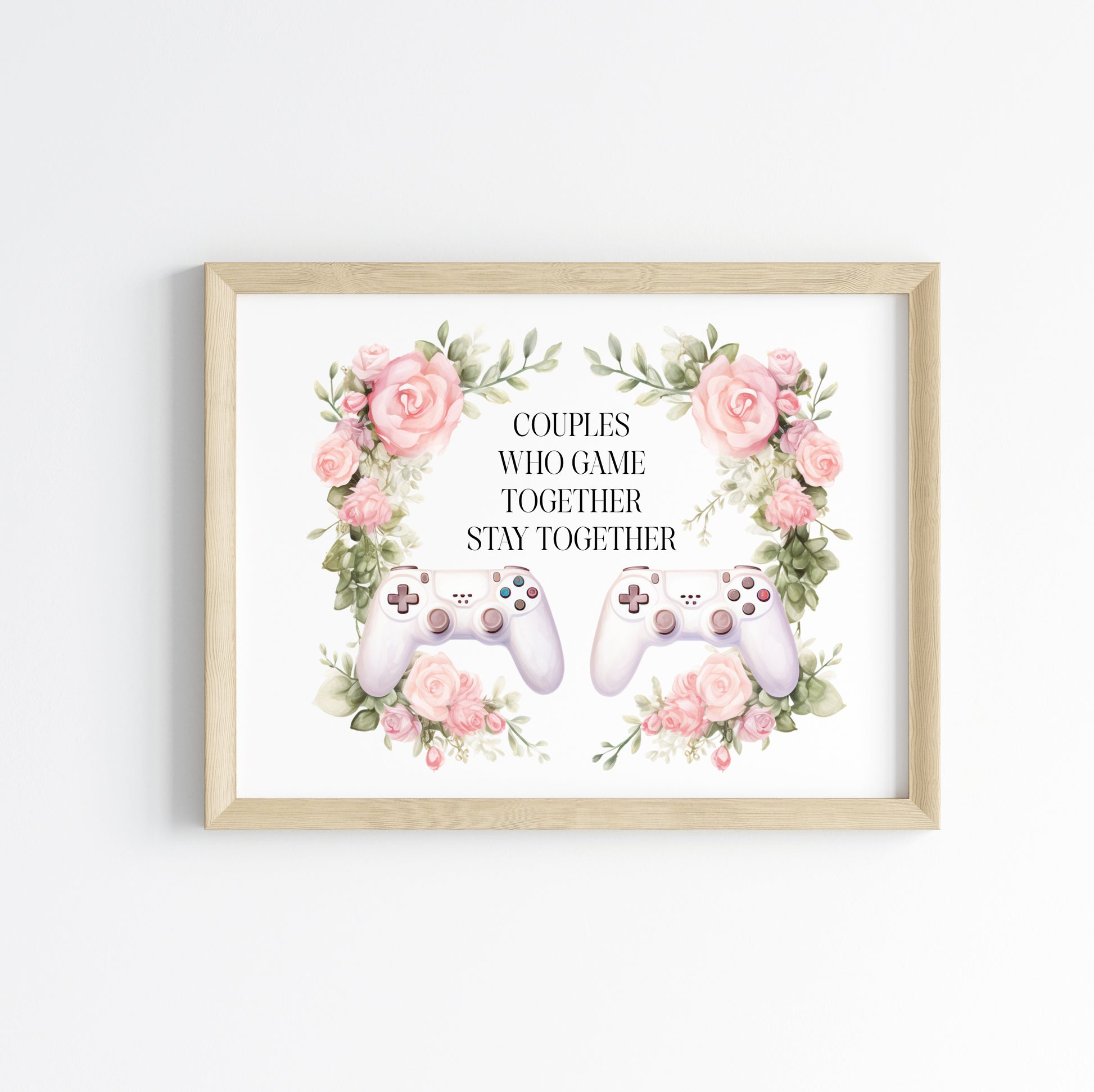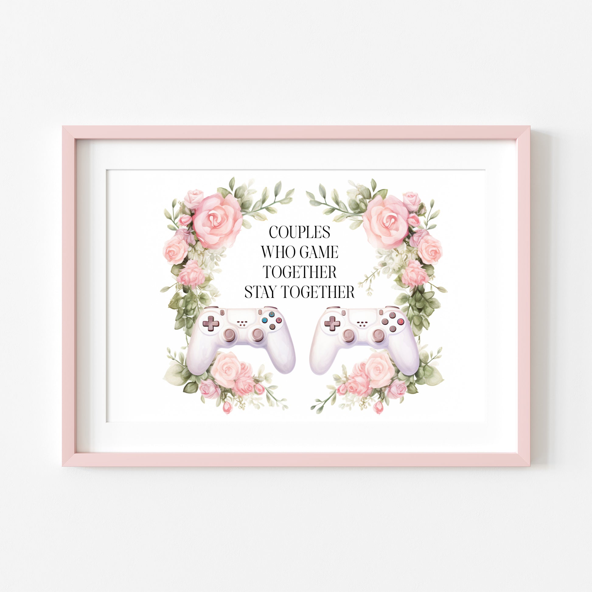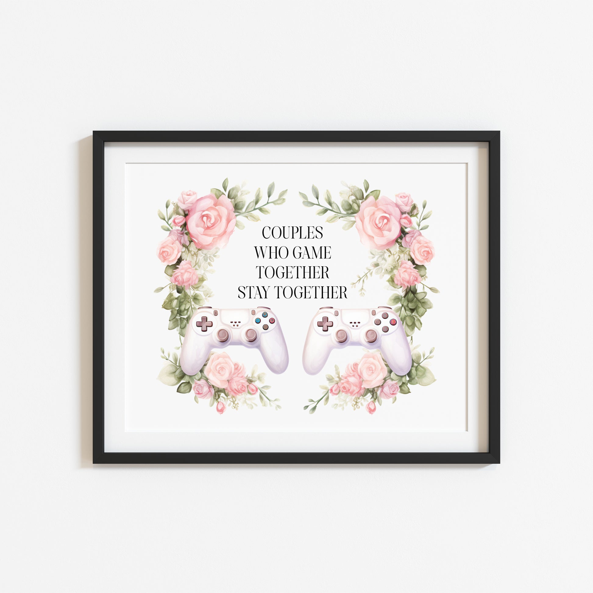 Couples gaming Print pink roses valentines Gaming Room Decor (Unframed)