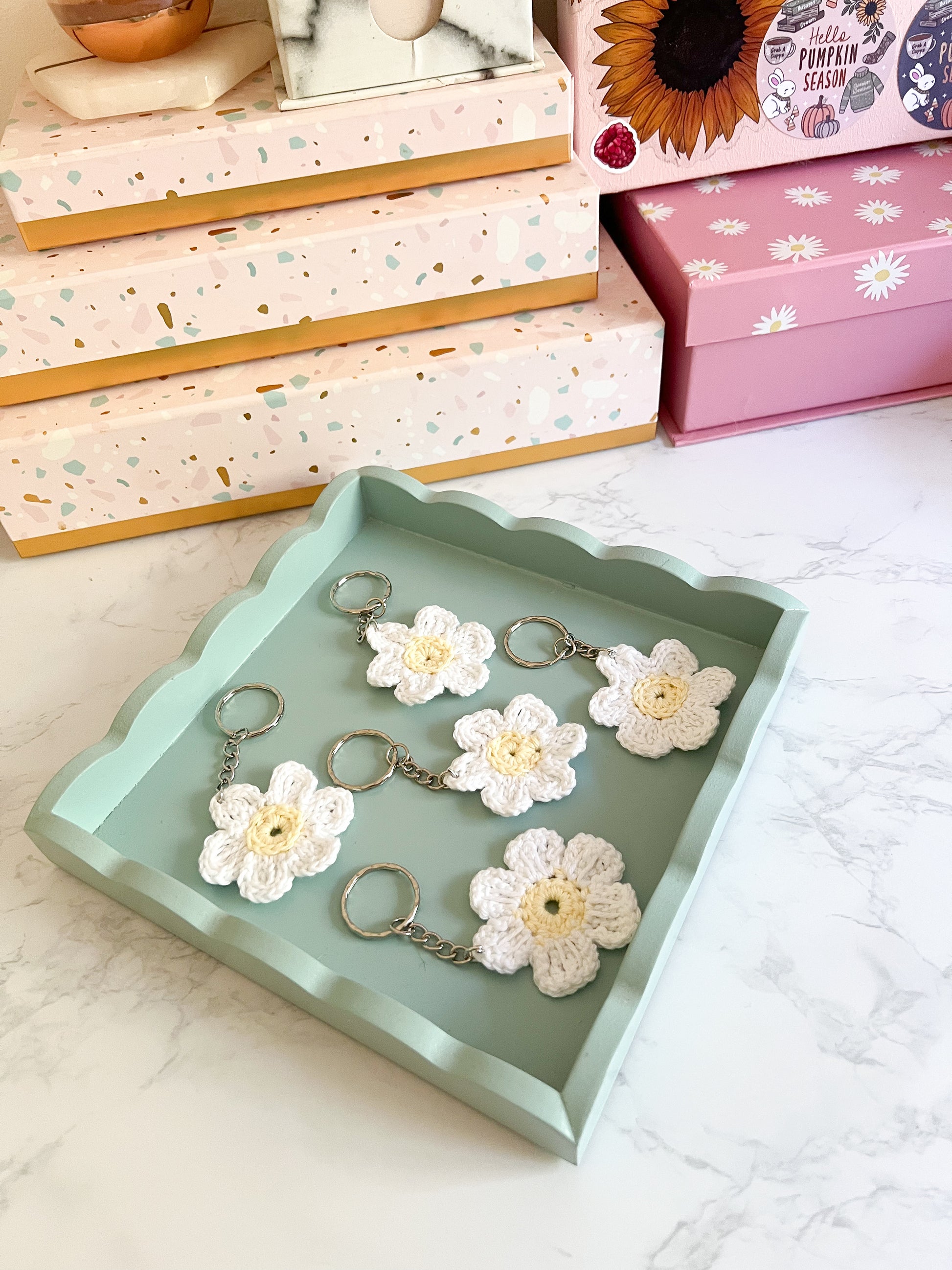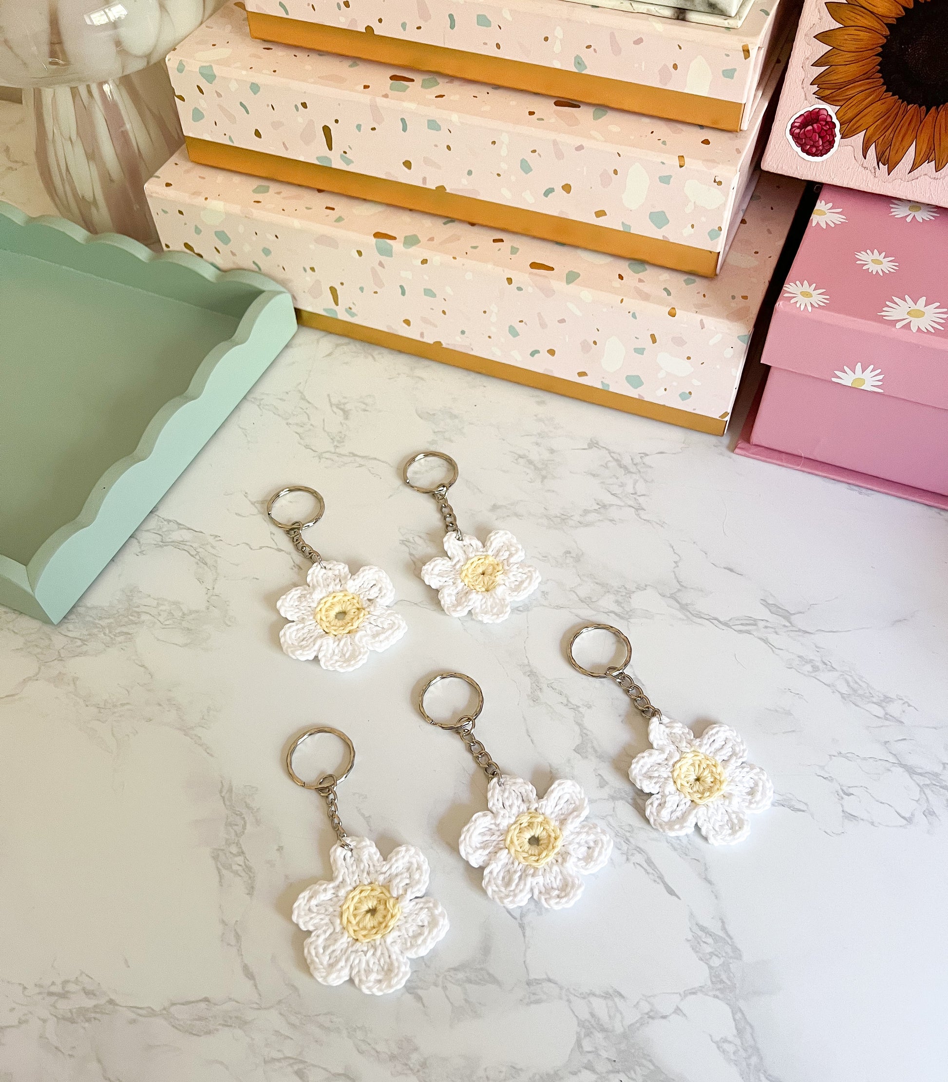 Daisy crochet key ring, handmade crochet daisy key ring, crochet cotton key ring key chain flower inspired crochet gift, crochet daisy gift