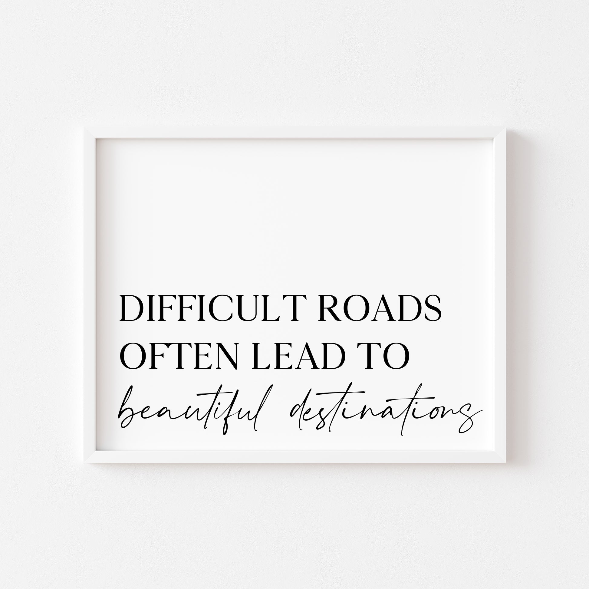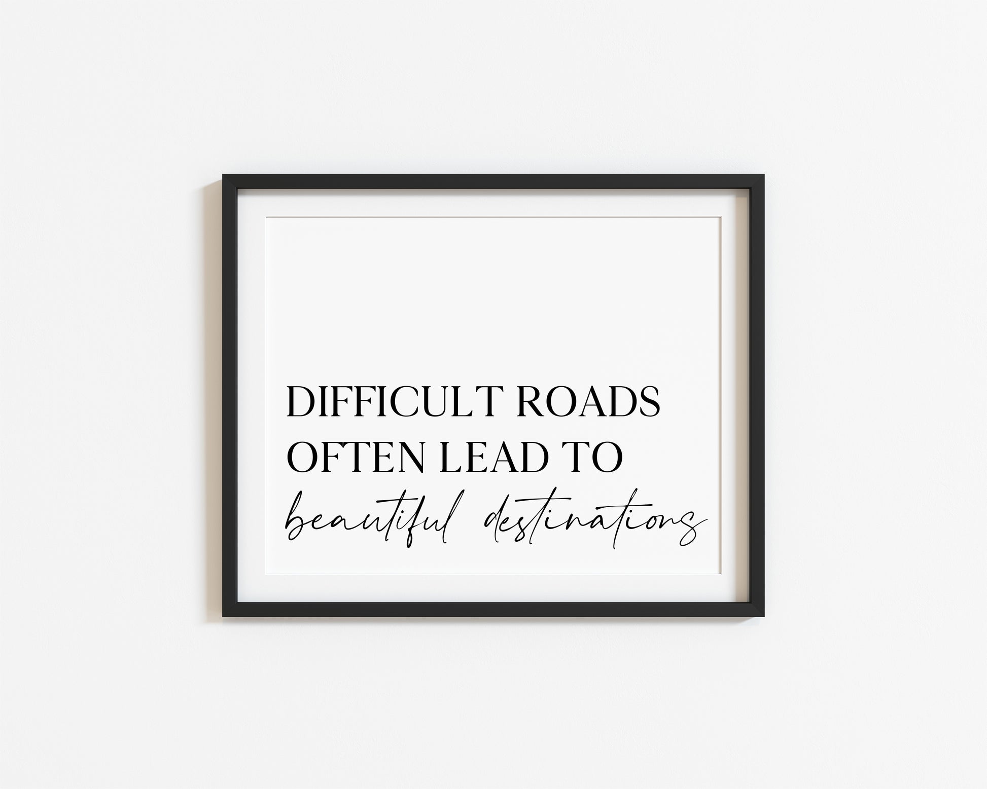 Difficult roads often lead to beautiful destinations, landscape motivational office, bedroom unframed wall art poster print