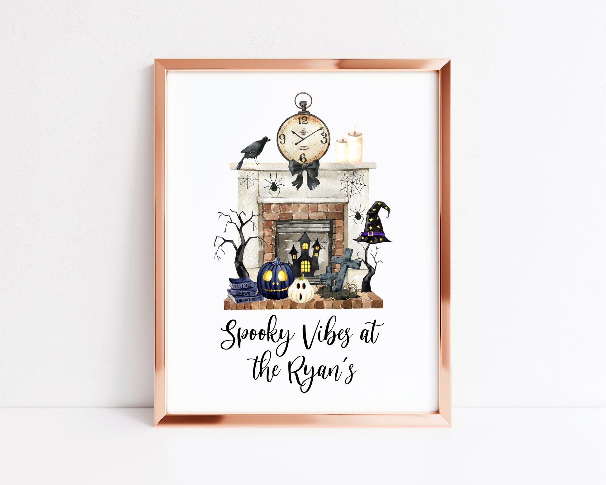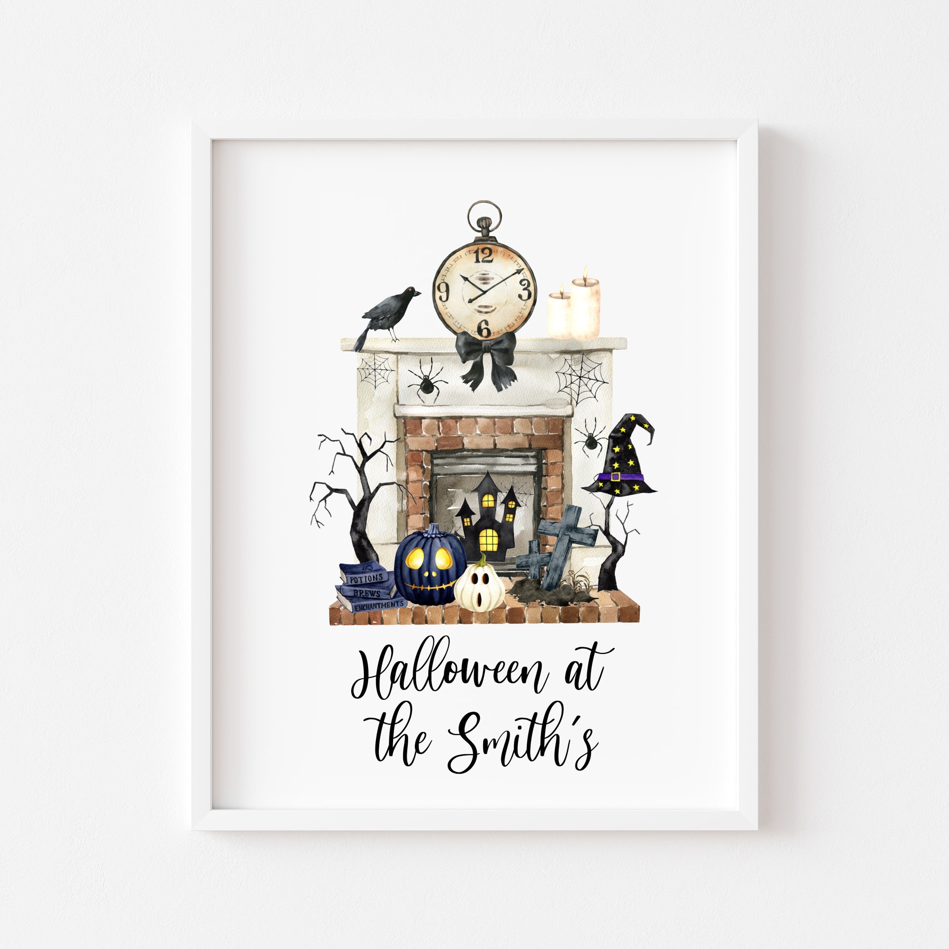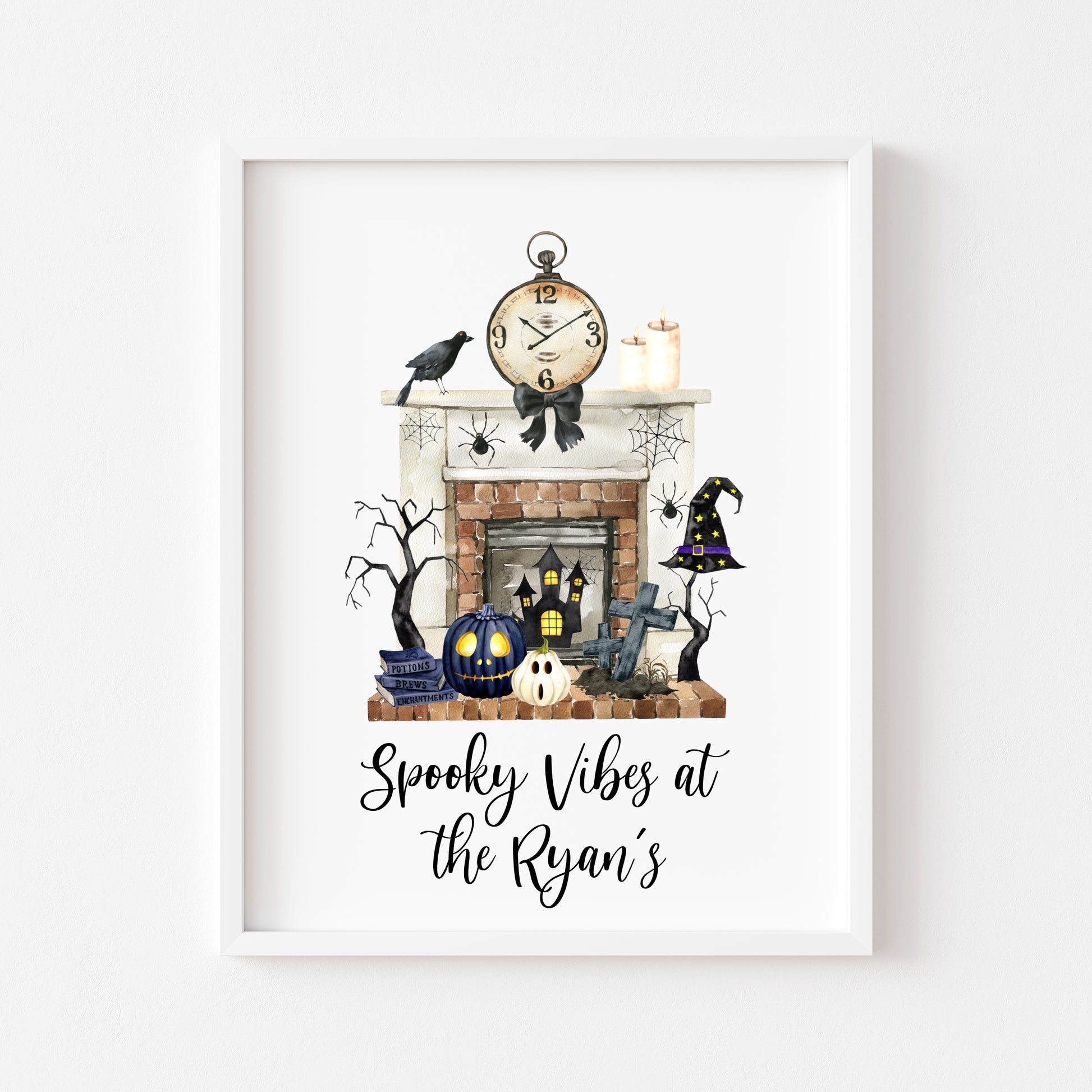 Halloween at the, spooky vibes at the personalised family halloween fireplace seasonal unframed wall art poster print
