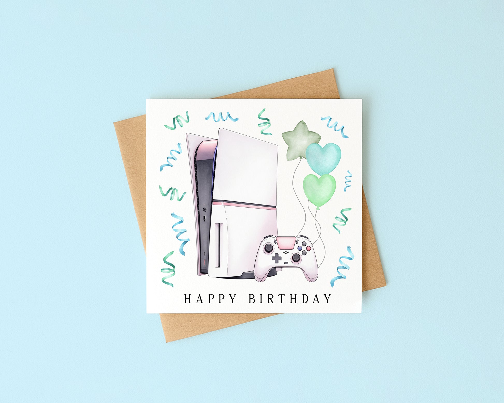 Gaming Birthday Card balloons & confetti green white gamer Design with Envelope Makes the perfect unique card to add a special touch to your gaming friends or families birthday!