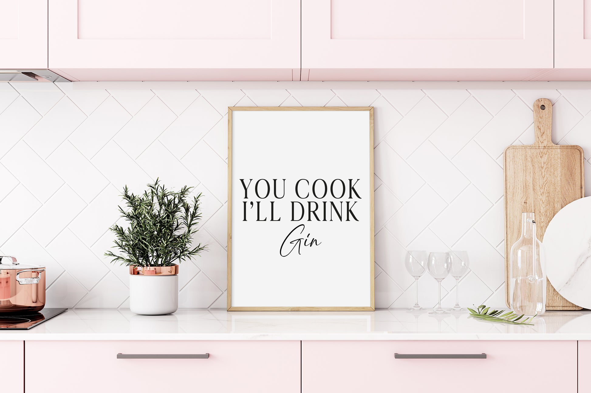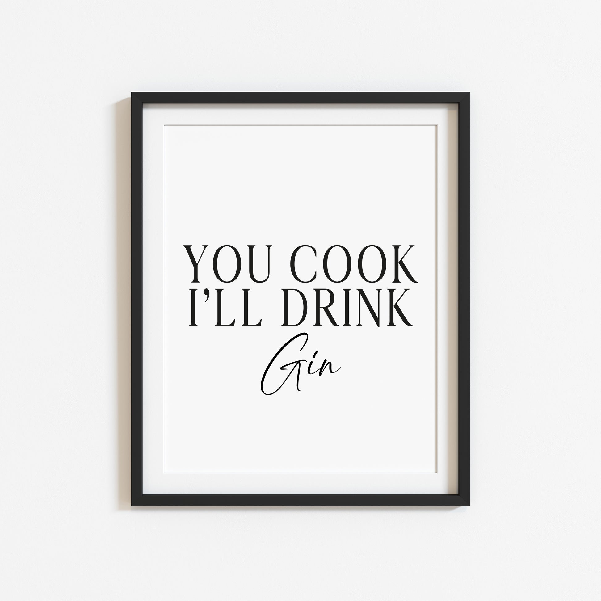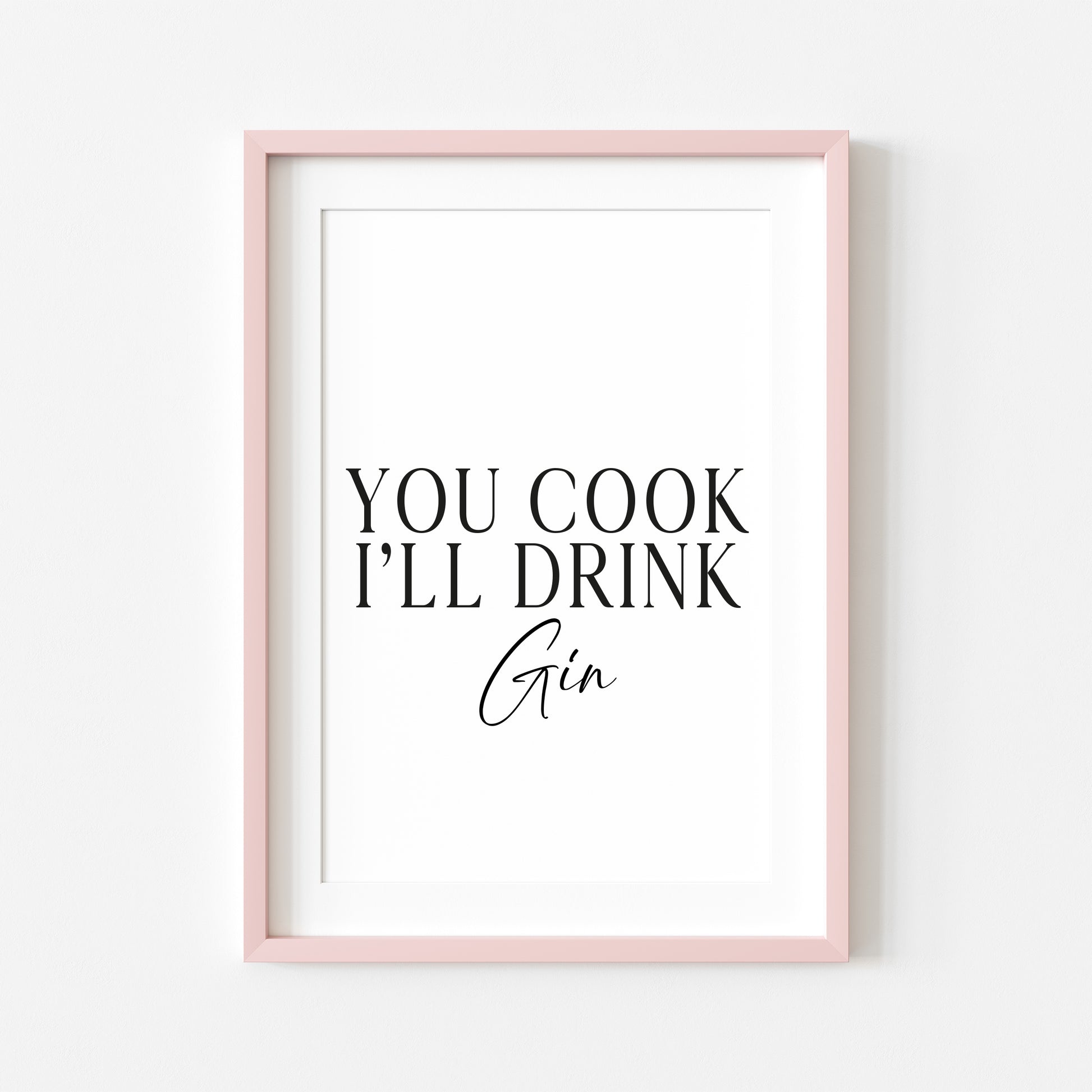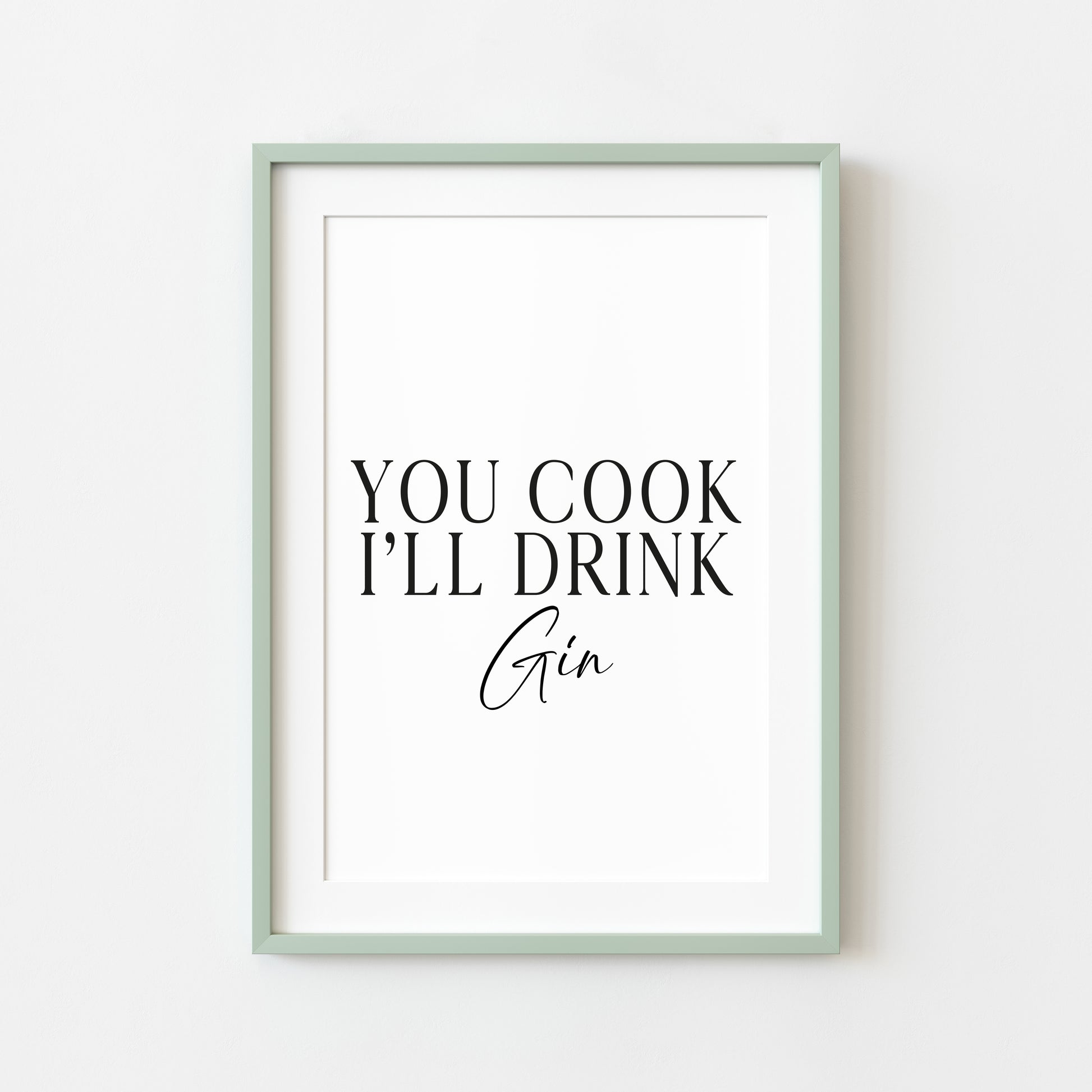 Gin print, You cook, I'll drink Gin, funny typography kitchen bar unframed wall art poster print