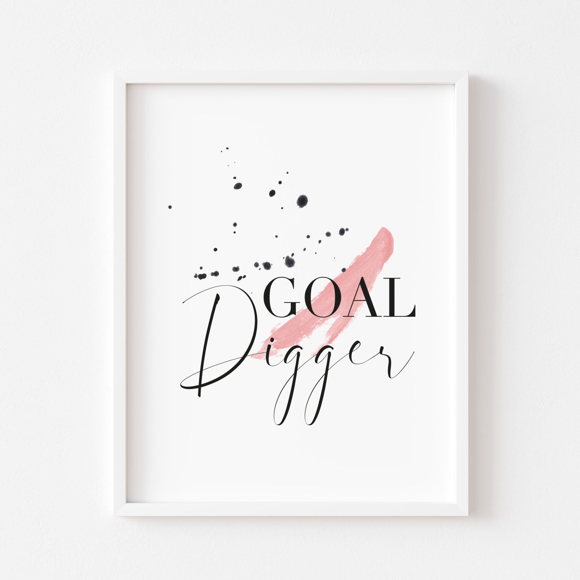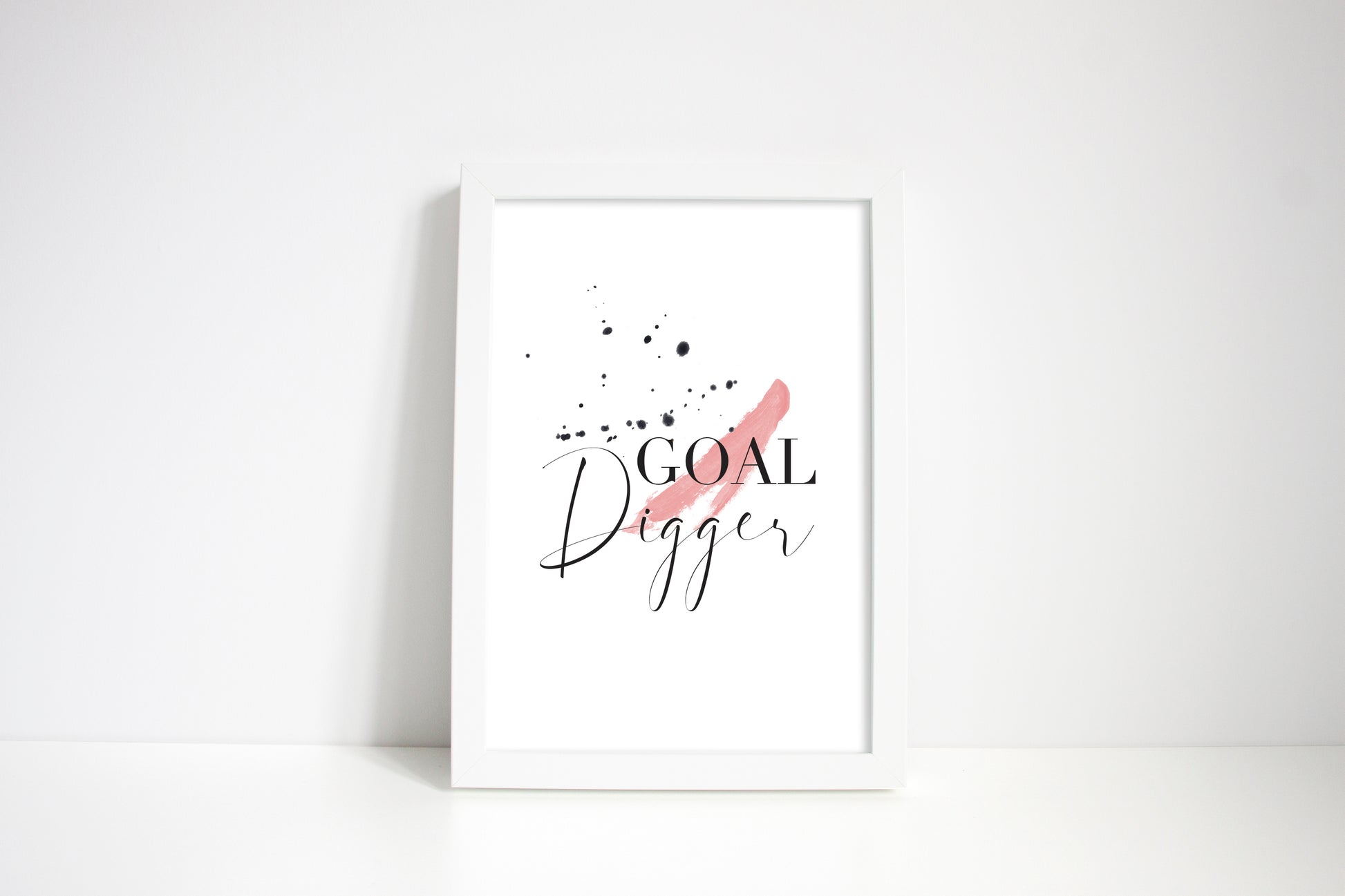 Goal Digger pink and black ink splatter watercolour motivational unframed wall art poster print