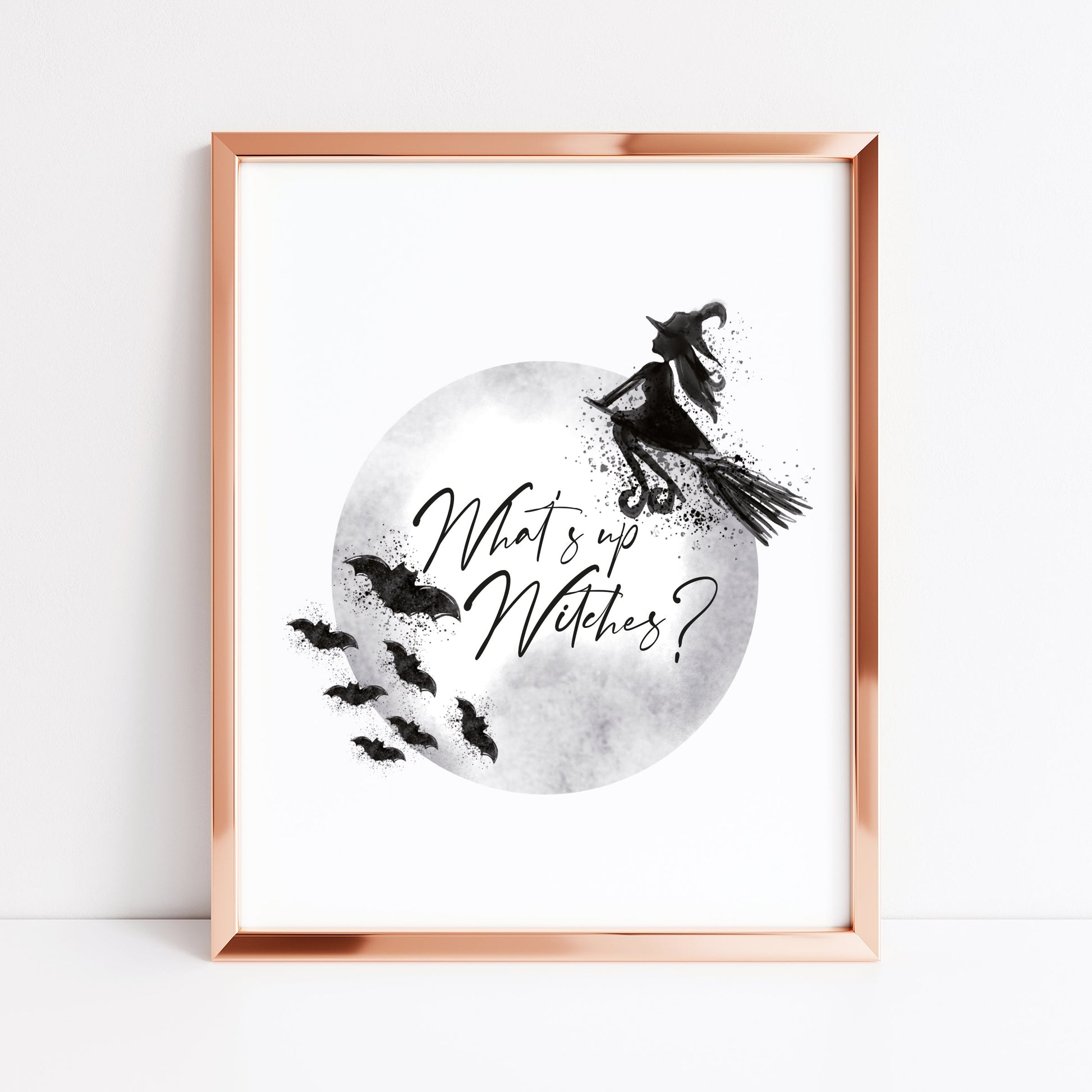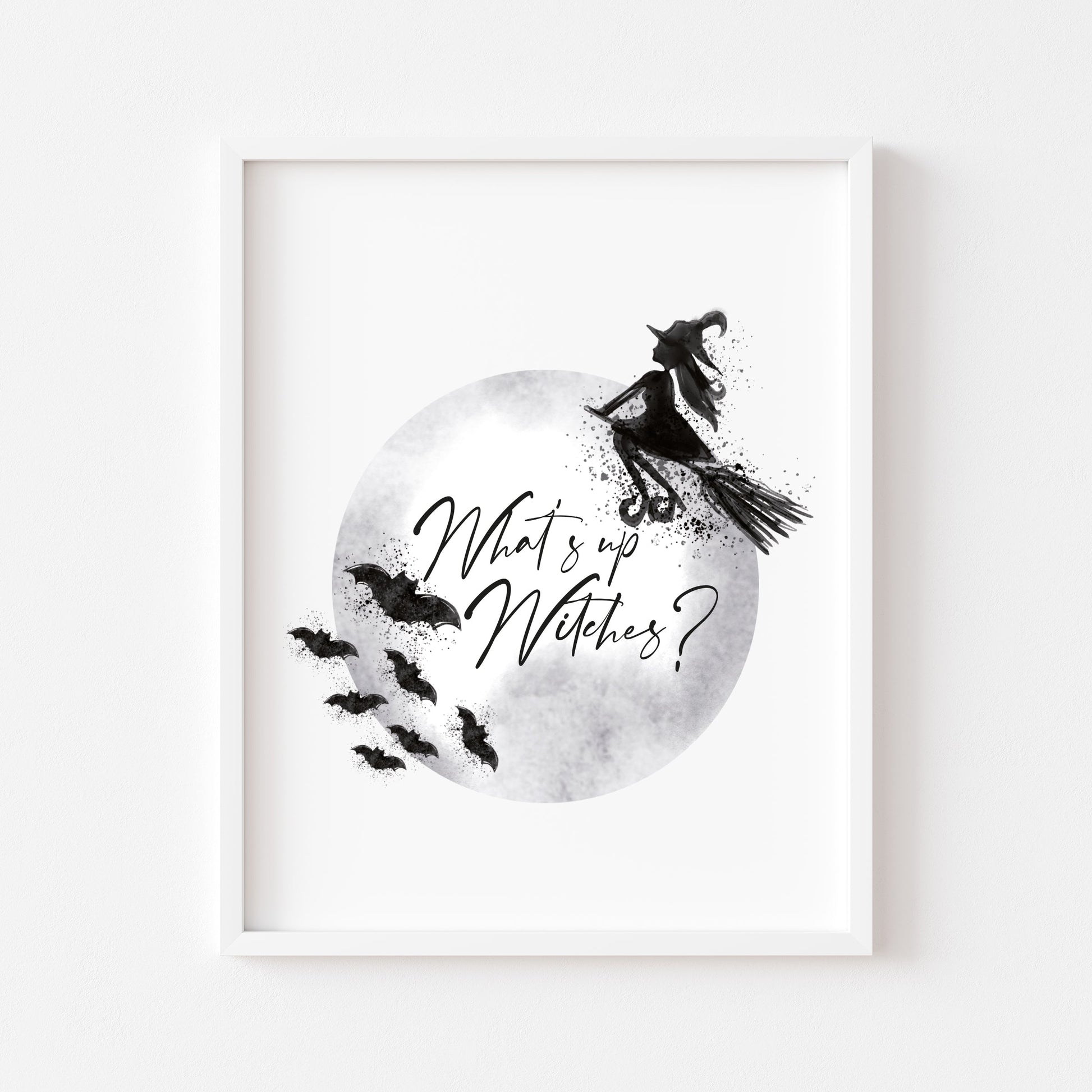 Halloween What's up witches, watercolour black and grey seasonal unframed wall art poster print