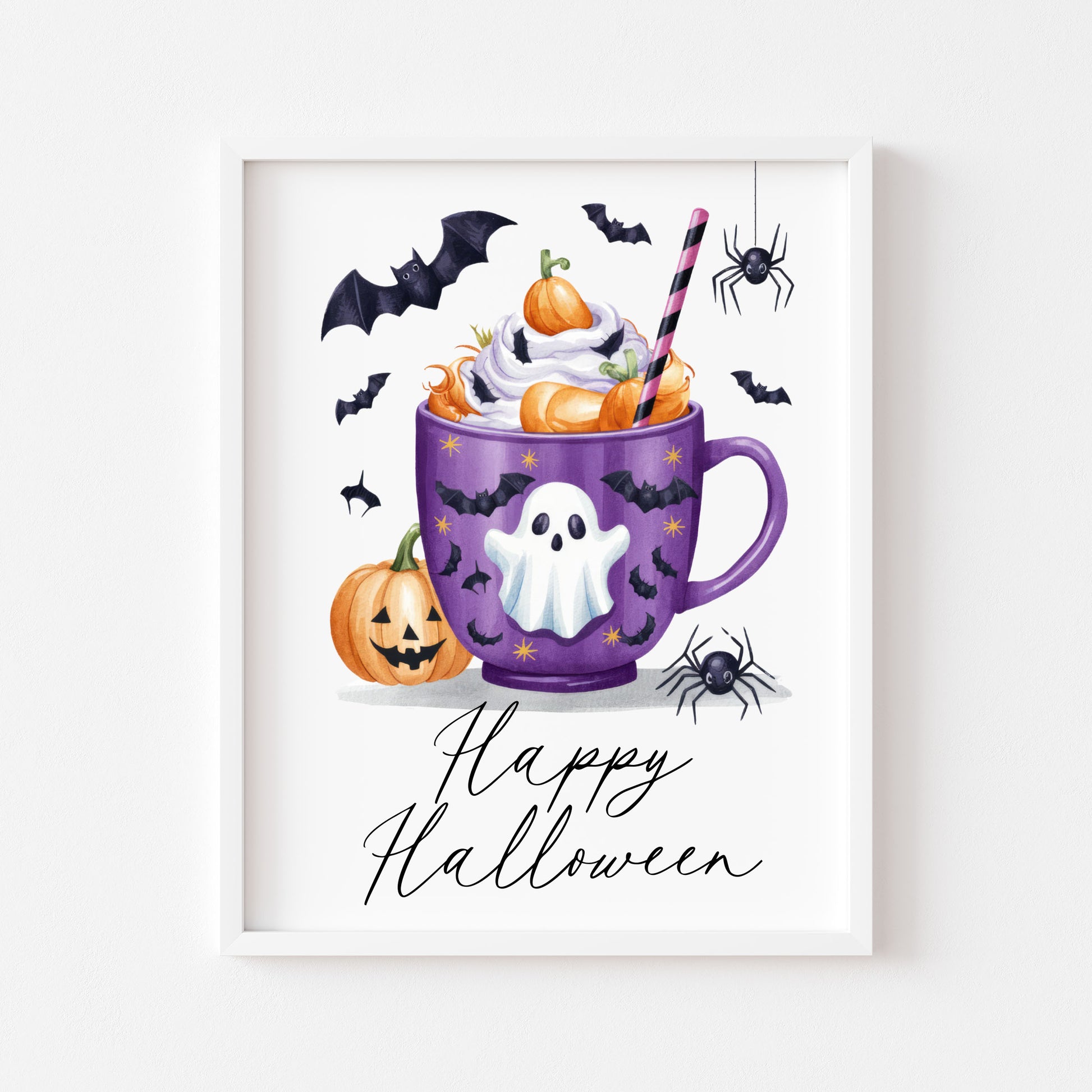 Happy halloween drink spider pumpkins bats spooky halloween seasonal home hallway sign unframed print
