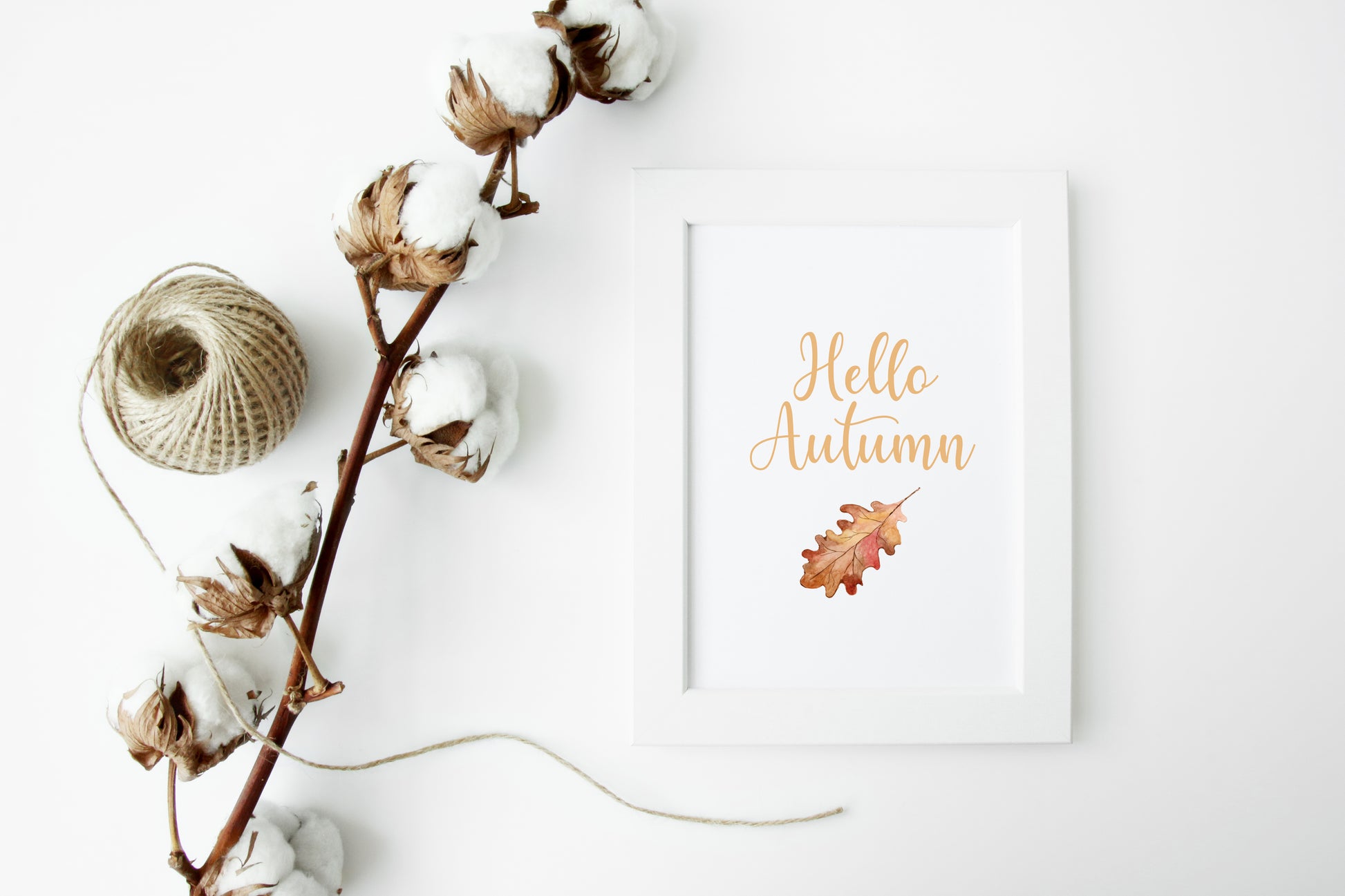 Hello Autumn watercolour leaf seasonal autumnal unframed wall art poster print