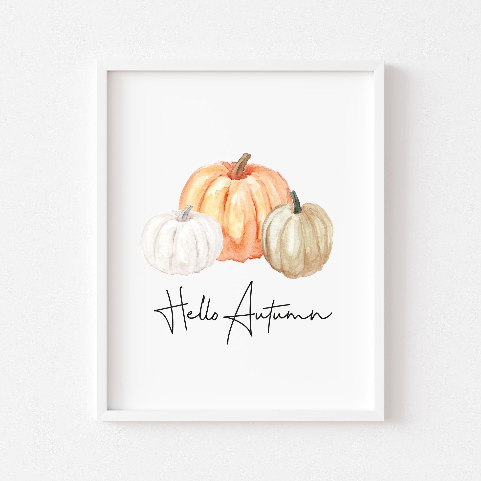 Hello Autumn watercolour pumpkin trio seasonal fall unframed wall art poster print