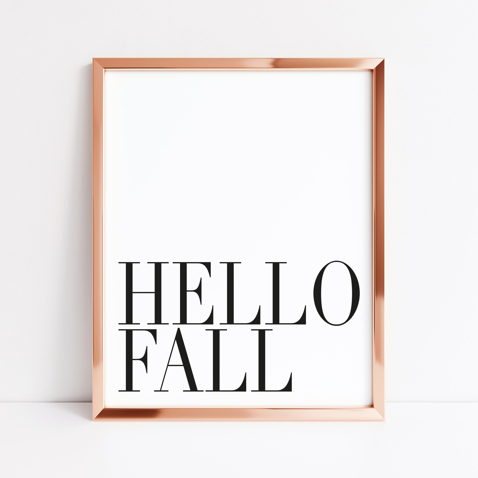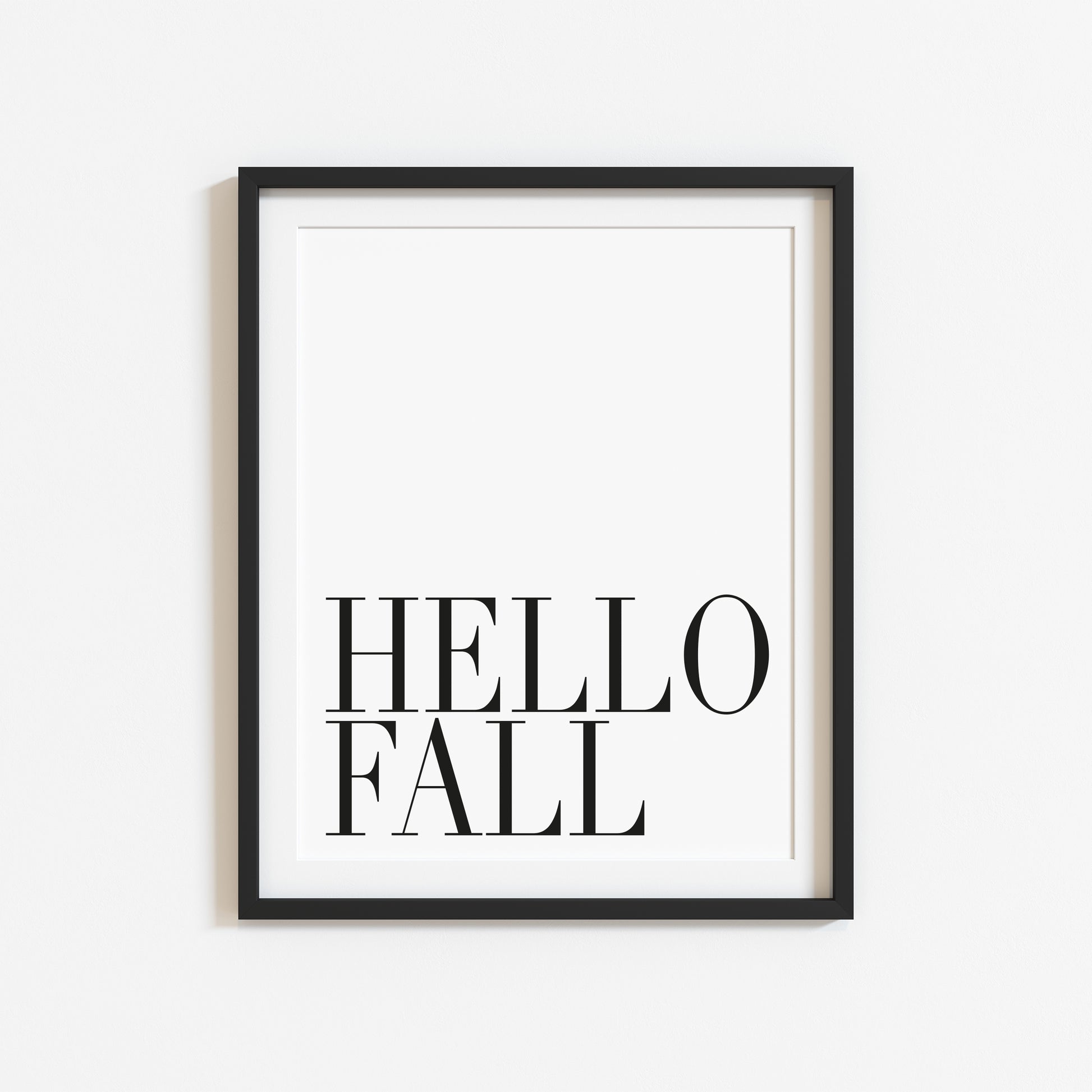 Hello Fall, seasonal fall autumn quote simplistic black & white autumn unframed wall art poster print, autumn home decor autumn quotes