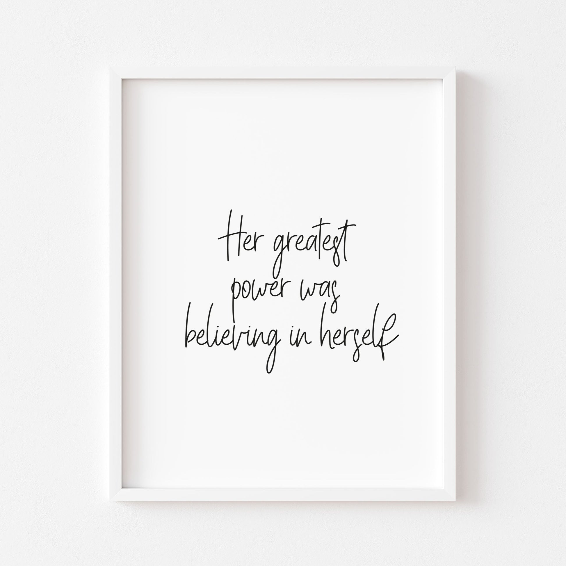 Her greatest power was believing in herself motivational bedroom unframed wall art poster print