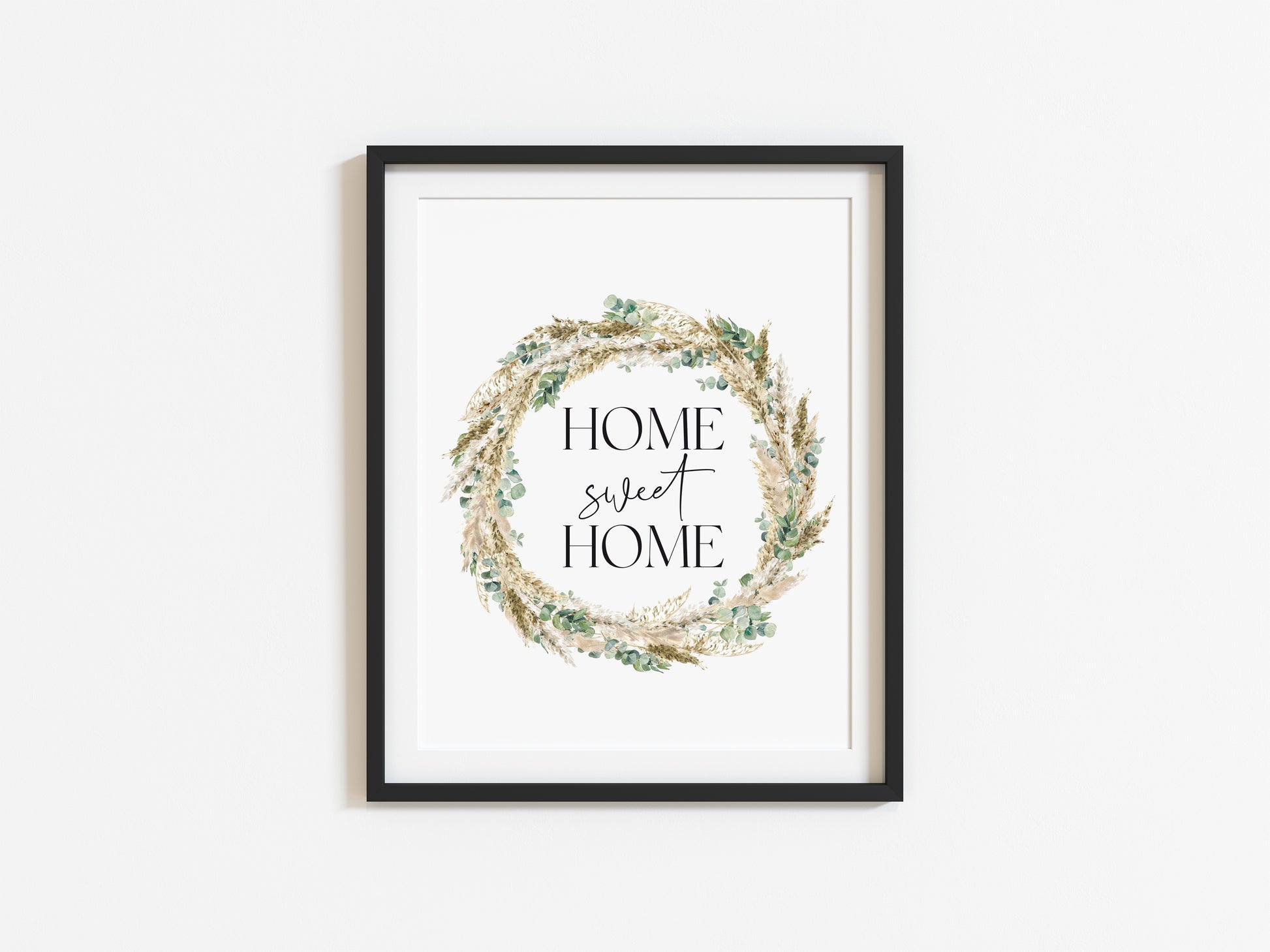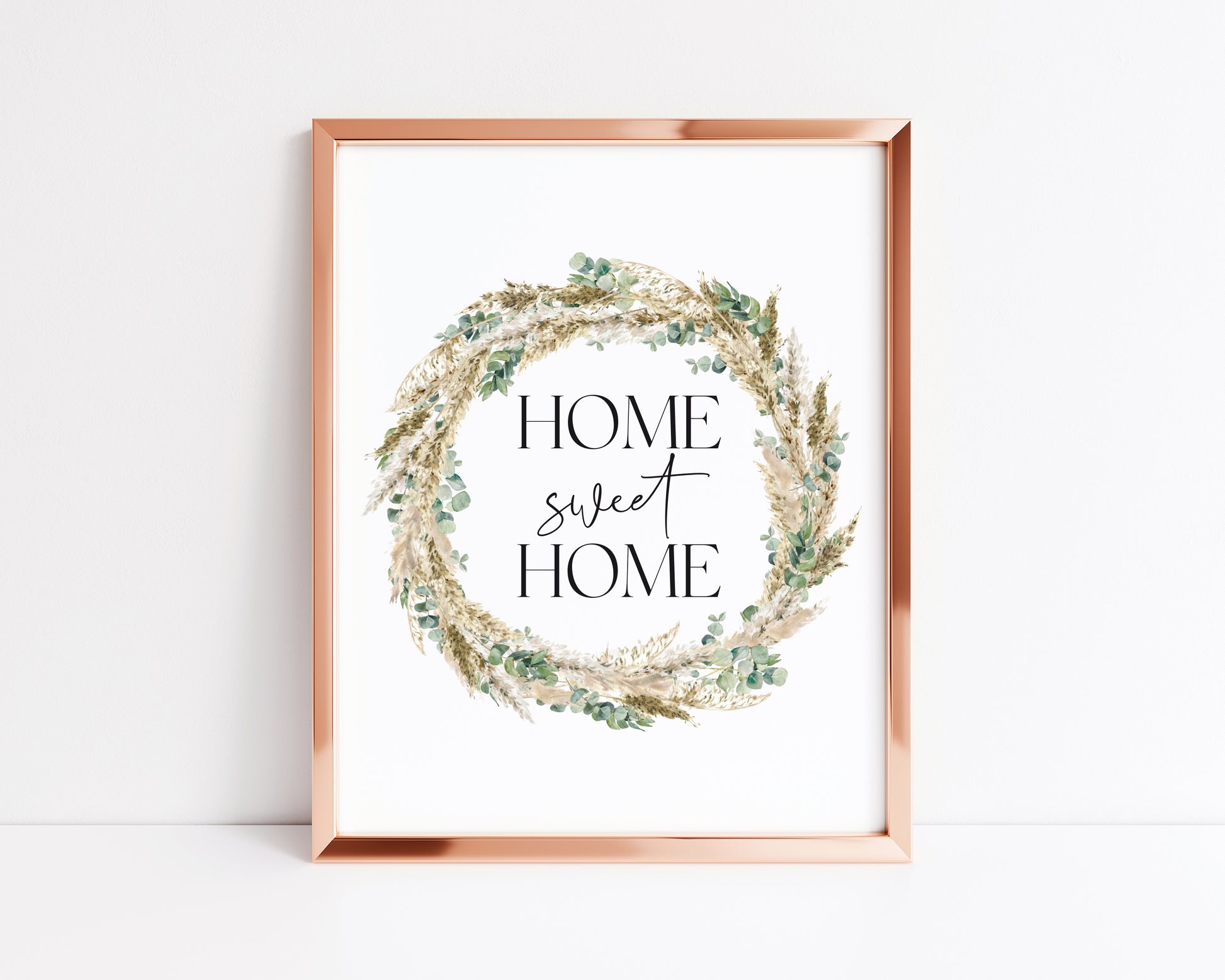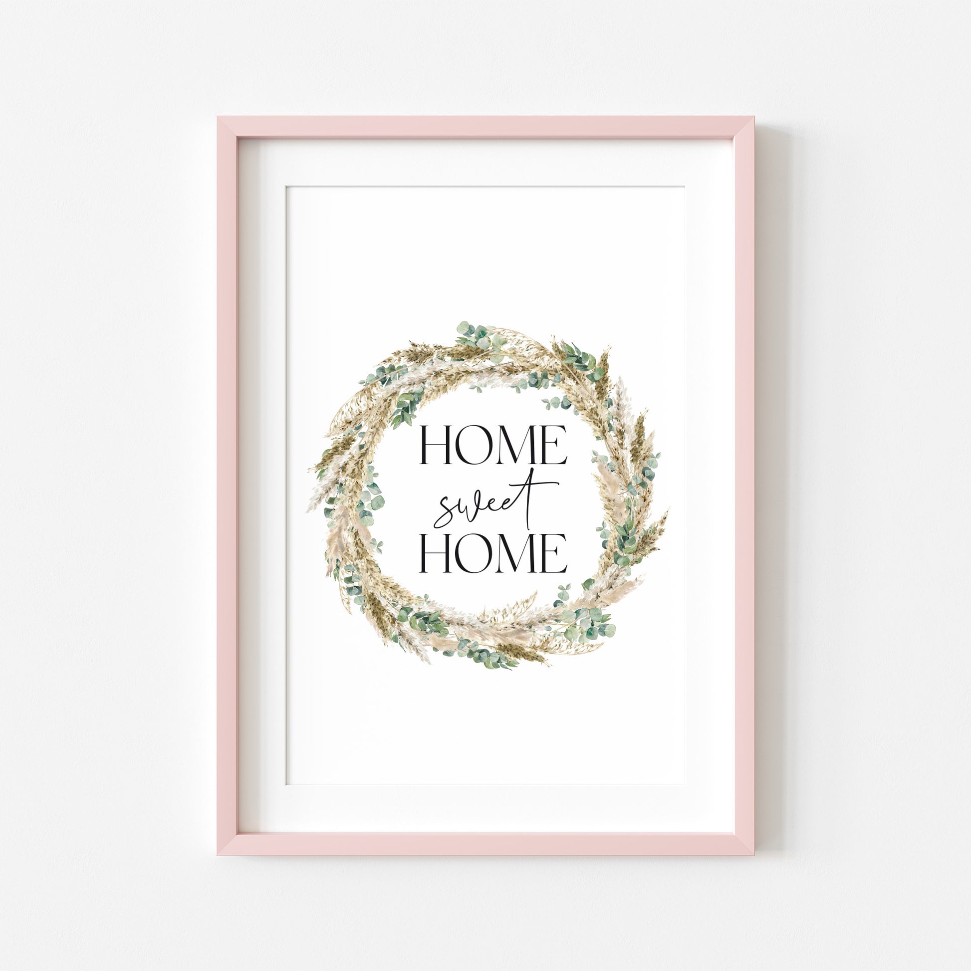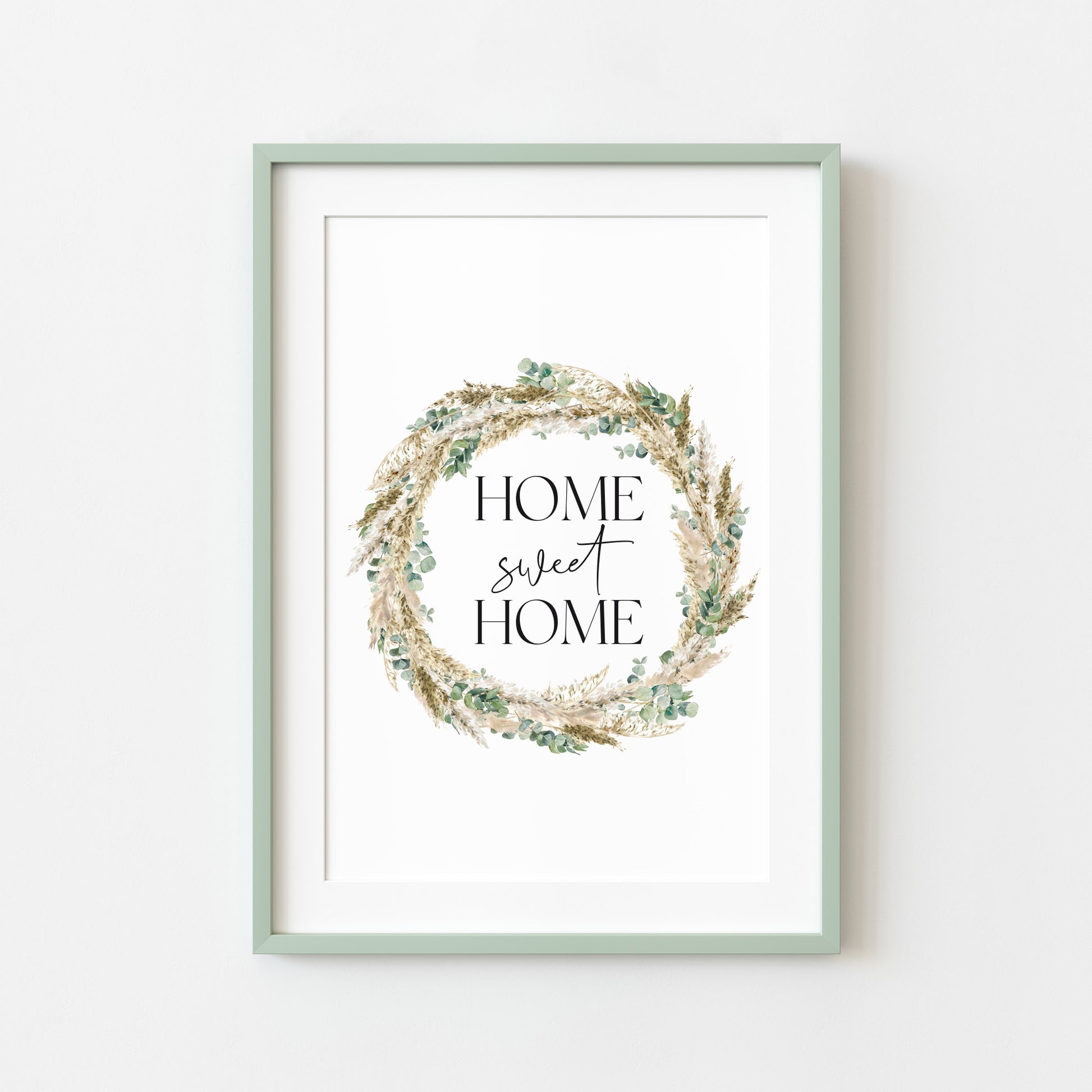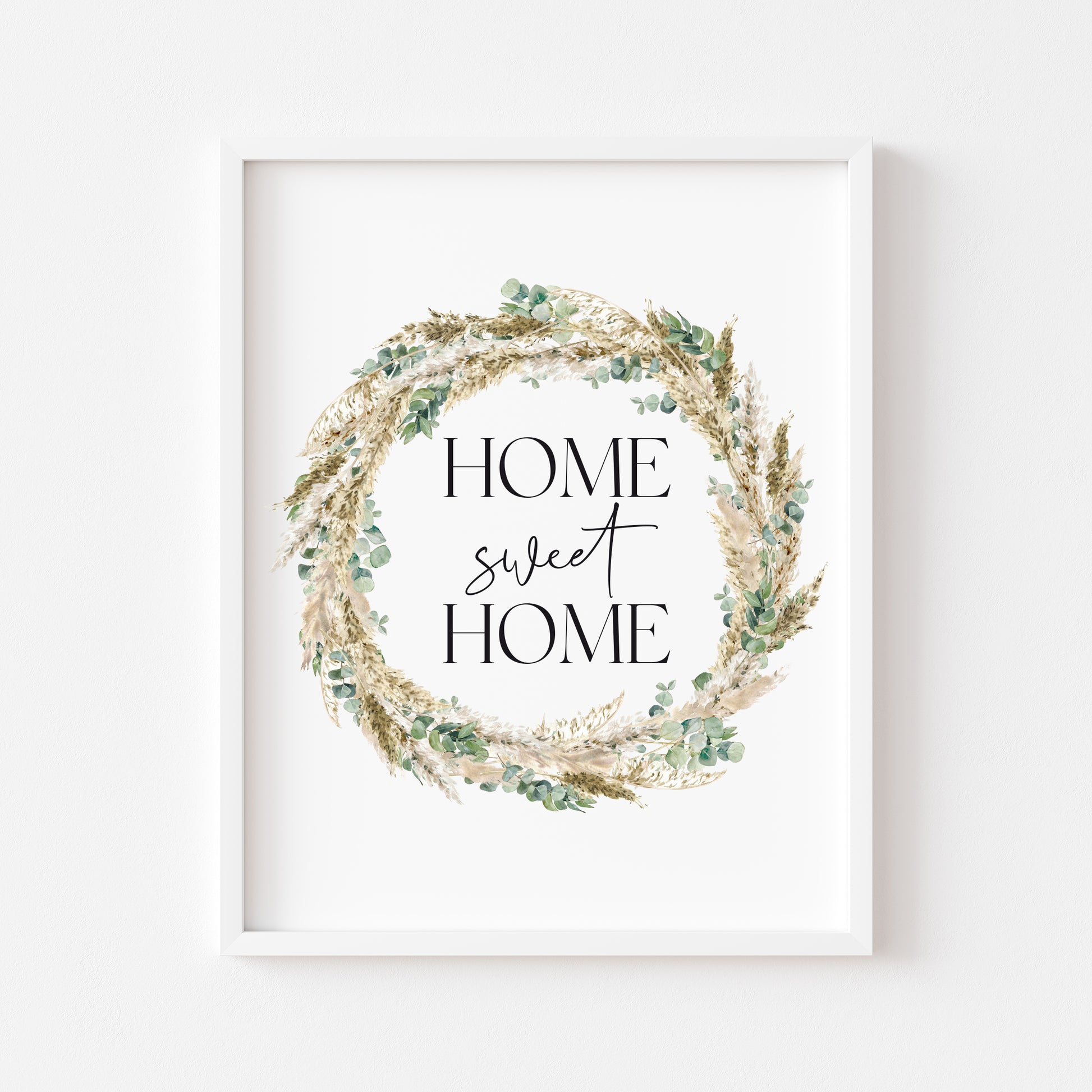 Home sweet home pampas and eucalyptus wreath unframed wall art poster print