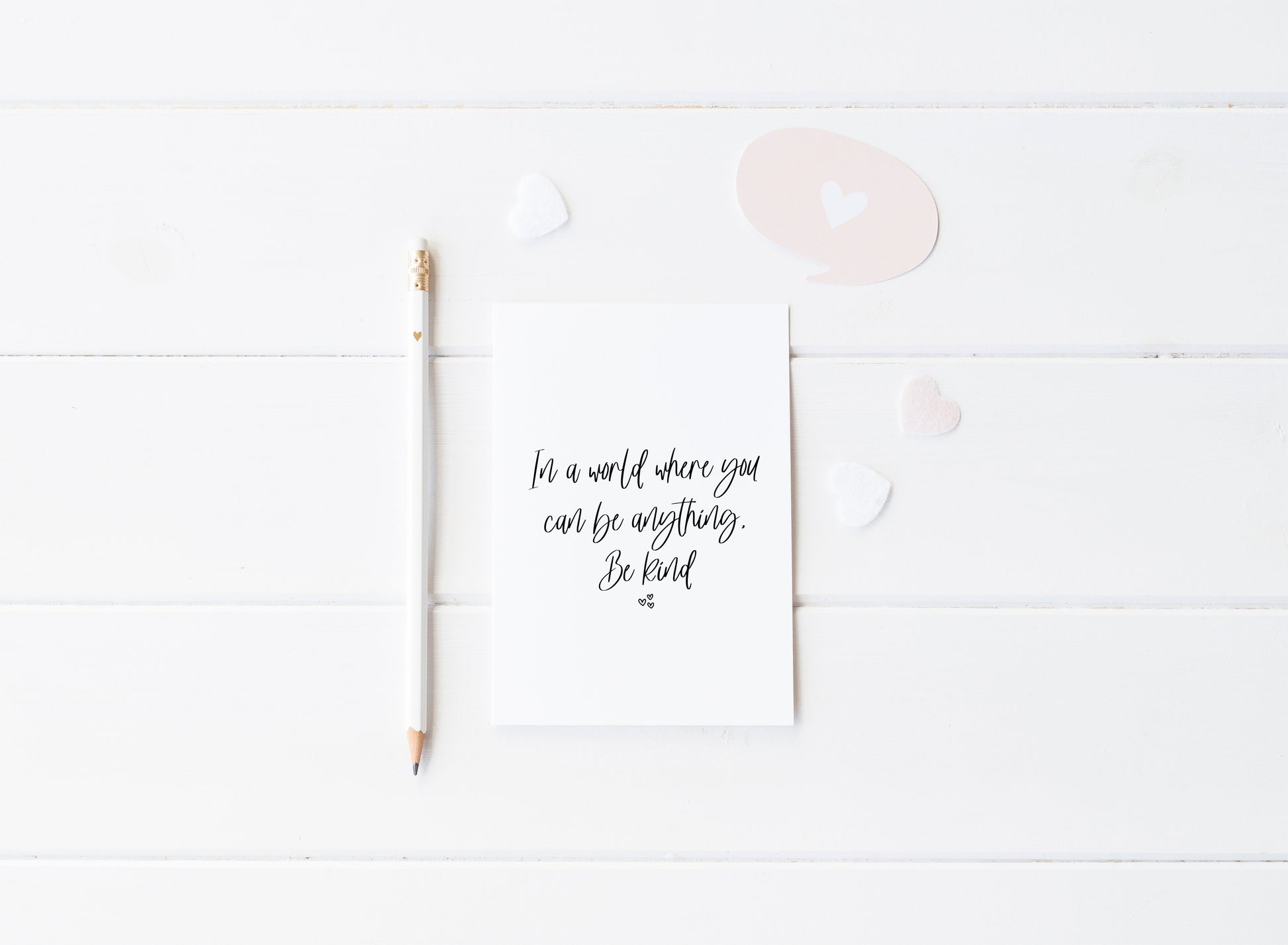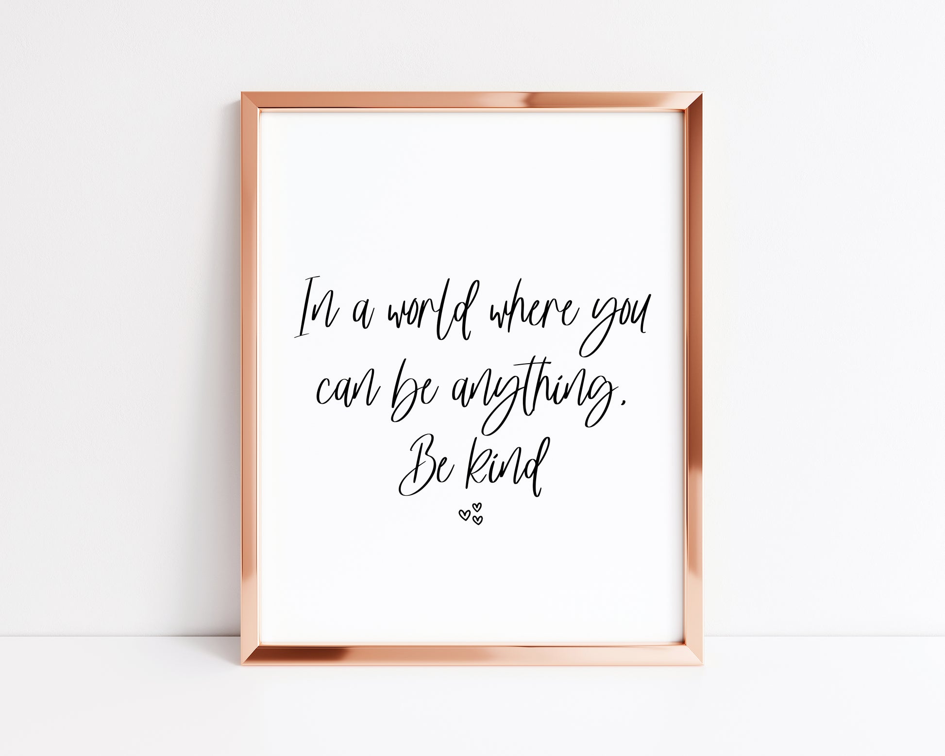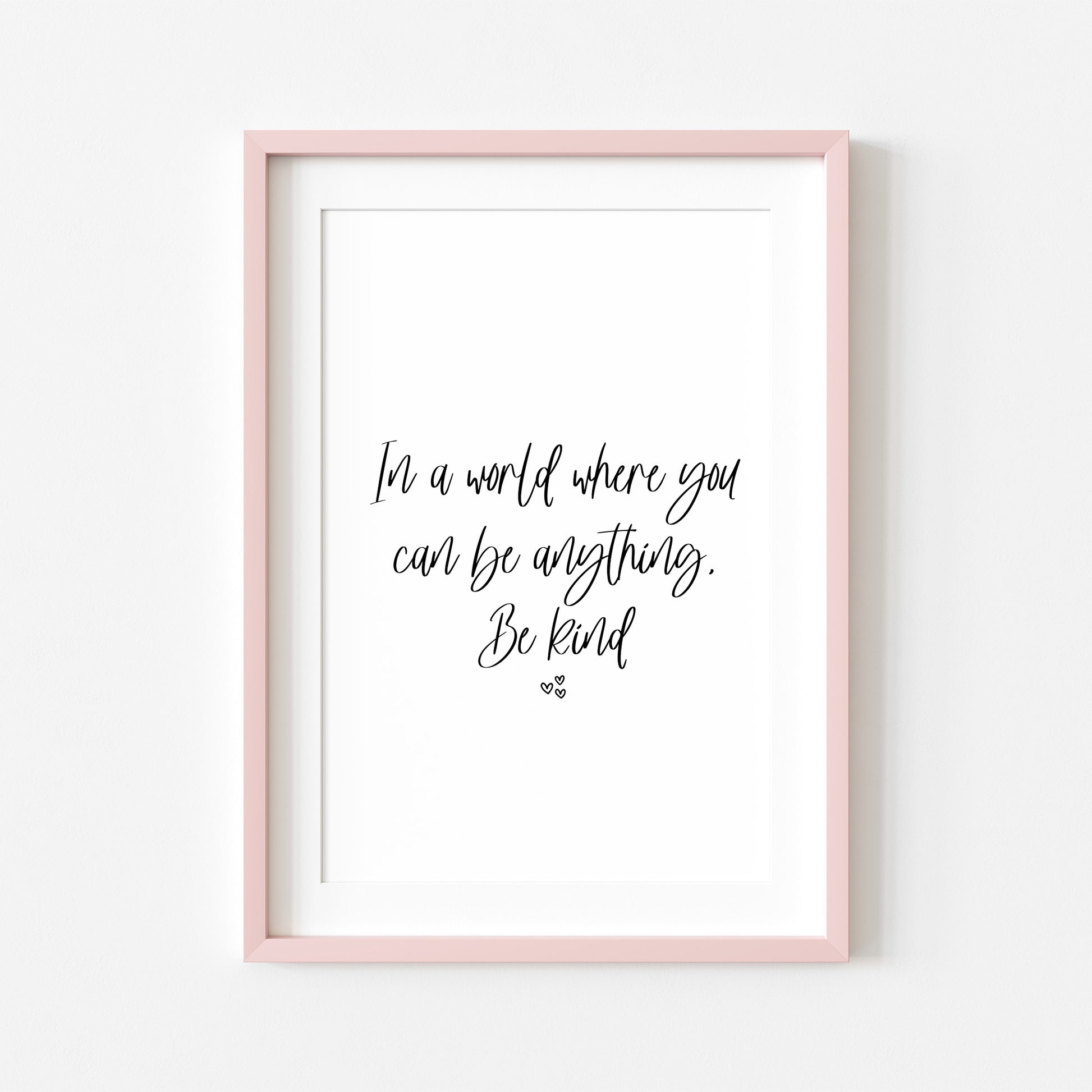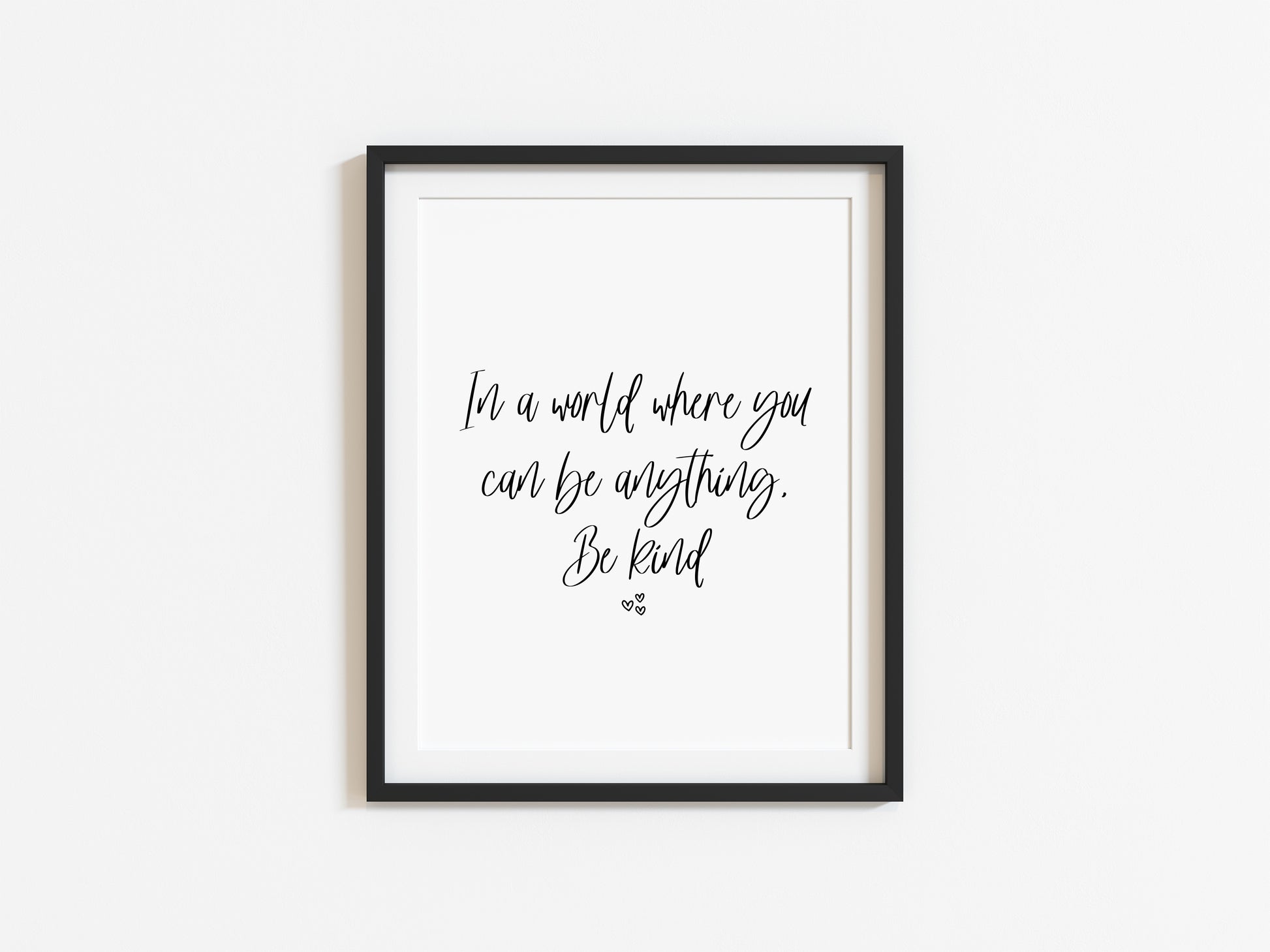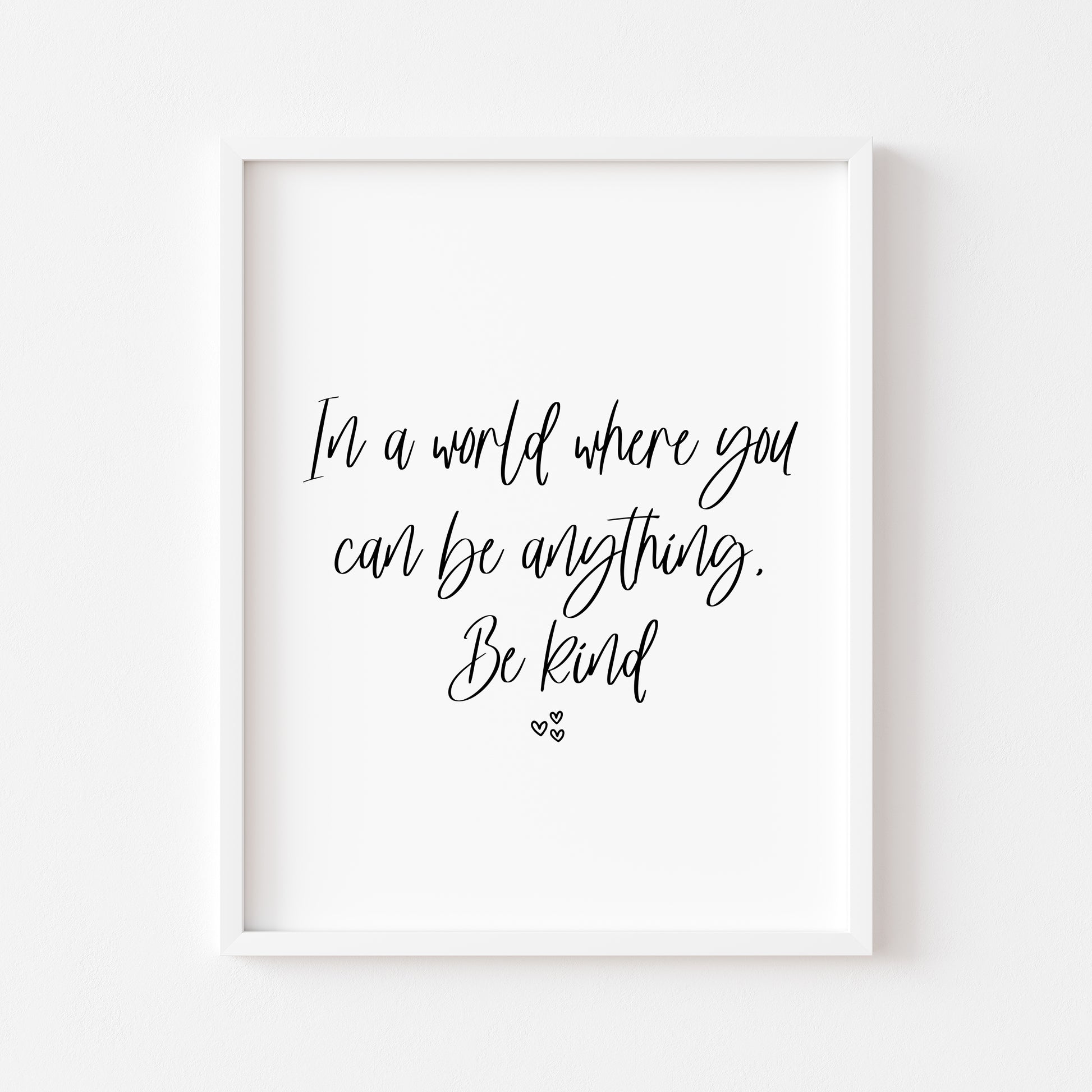 In a world where you can be anything, be kind heart illustration motivational bedroom/office unframed wall art poster print
