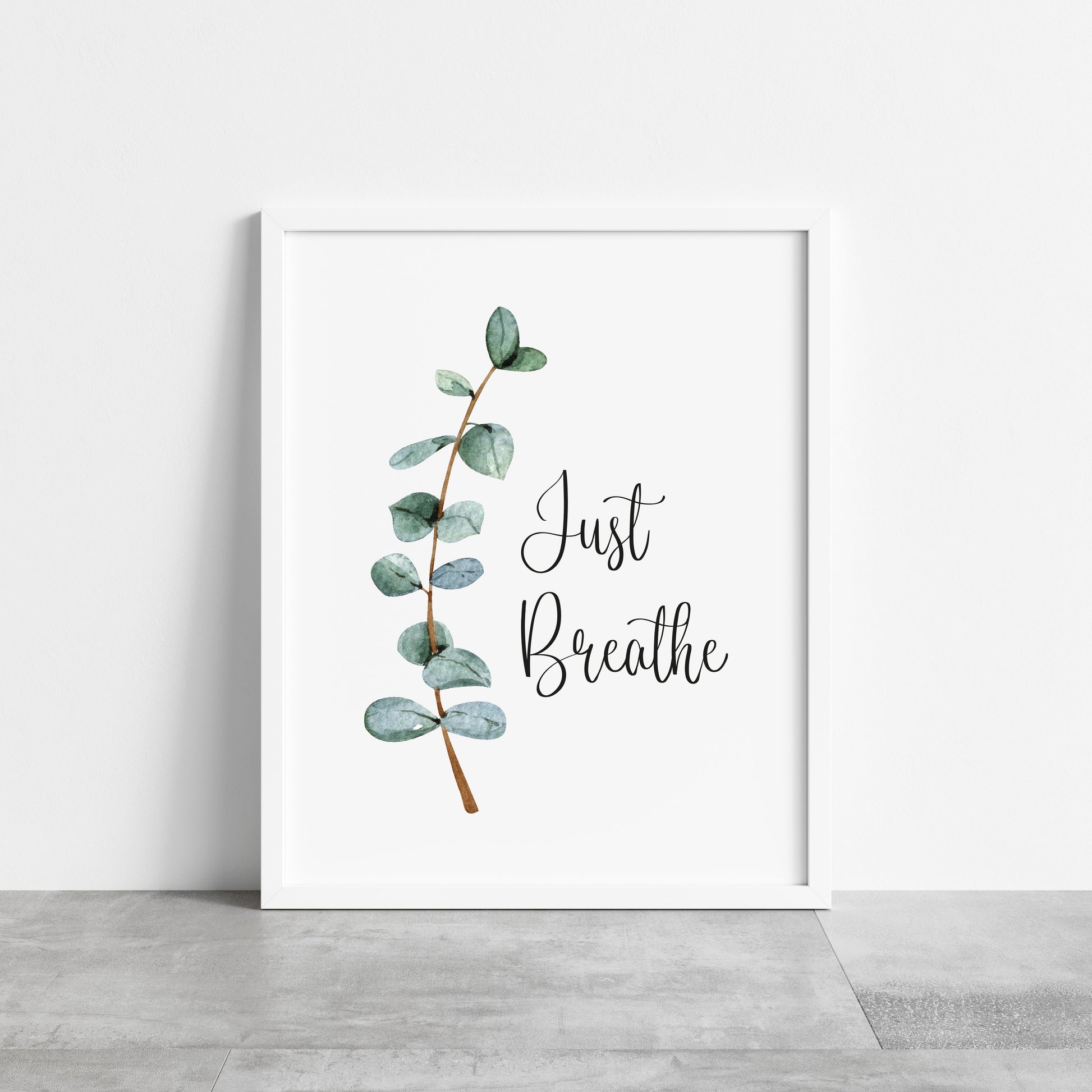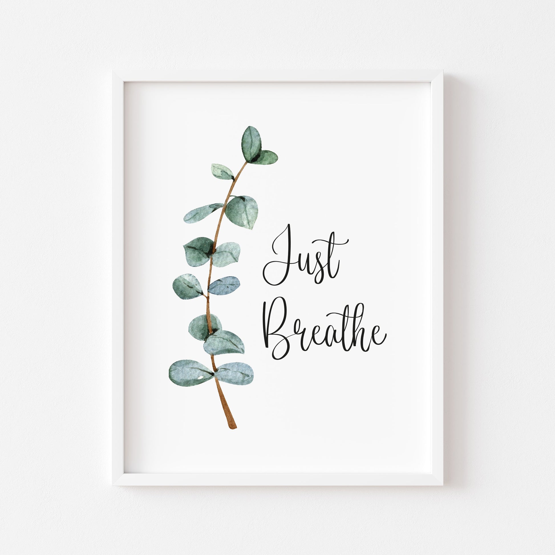 Just breathe green blue eucalyptus botanical stem watercolour bathroom toilet unframed wall art poster print