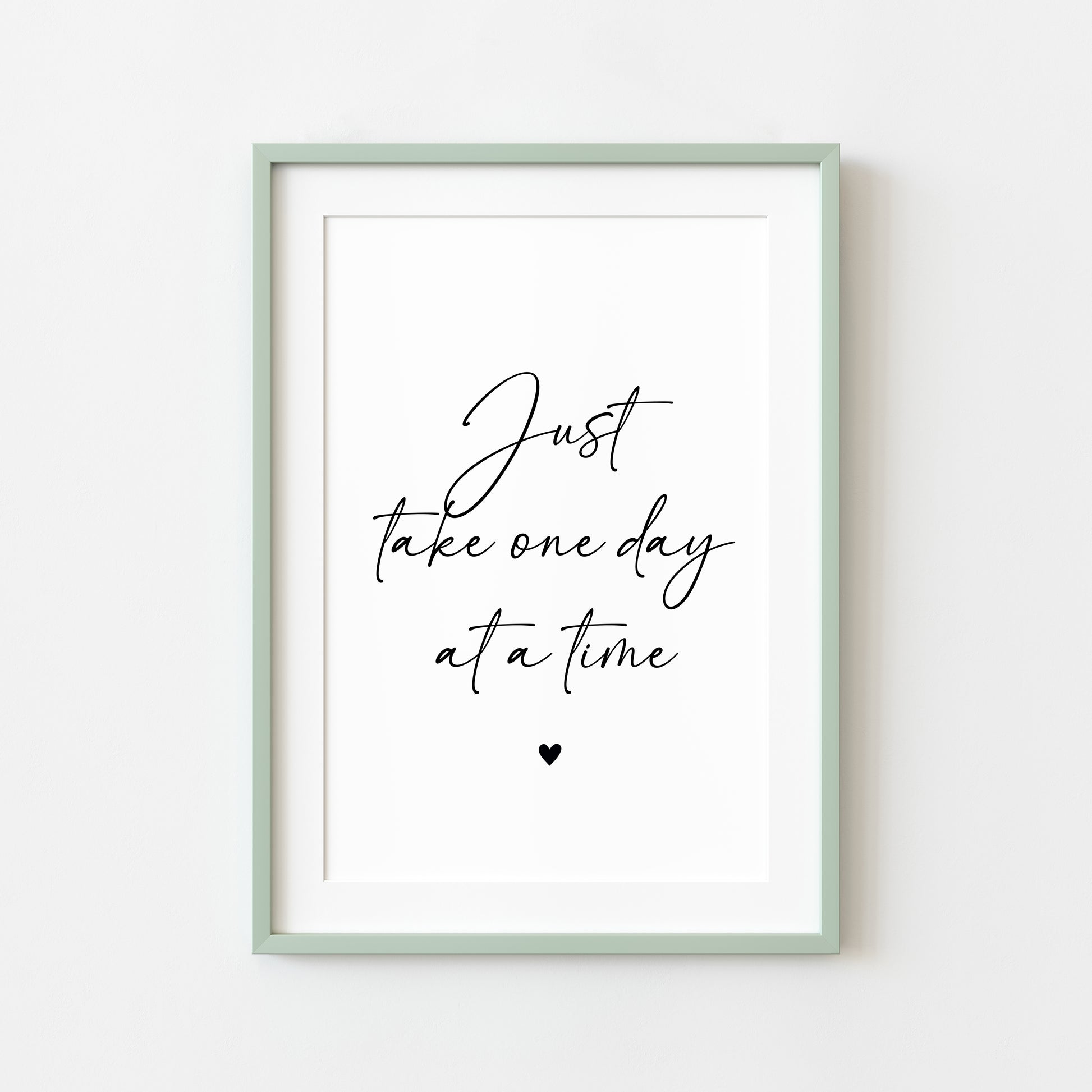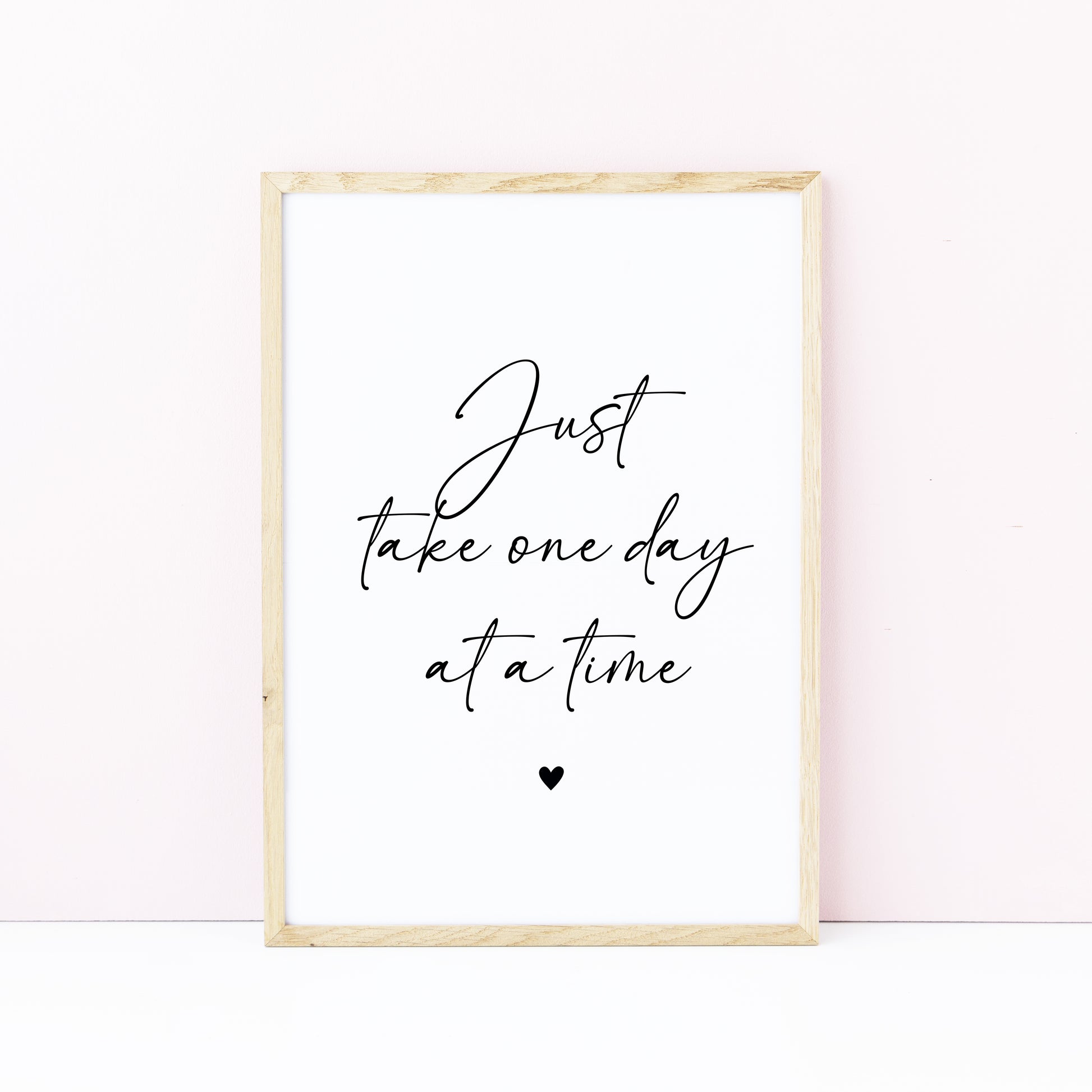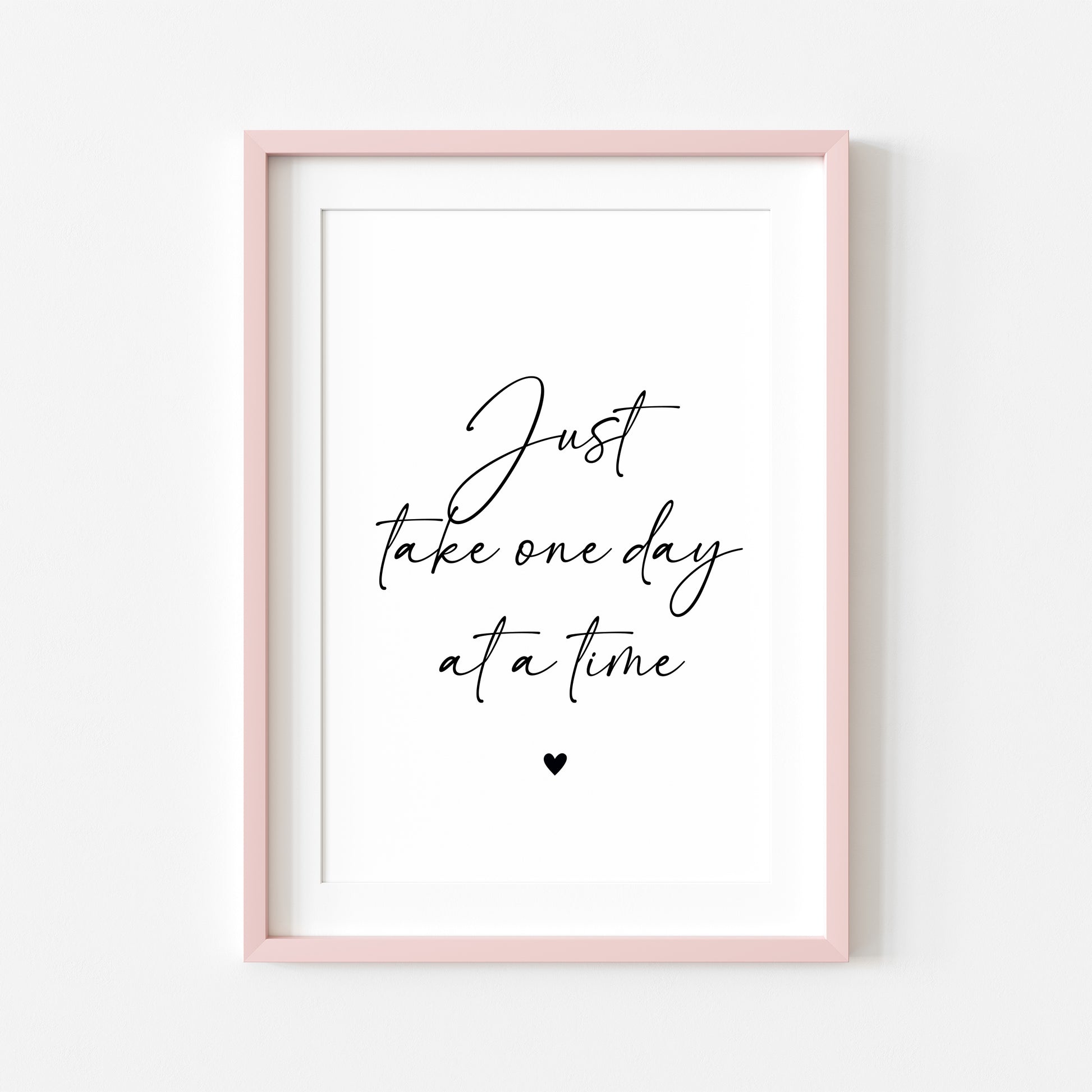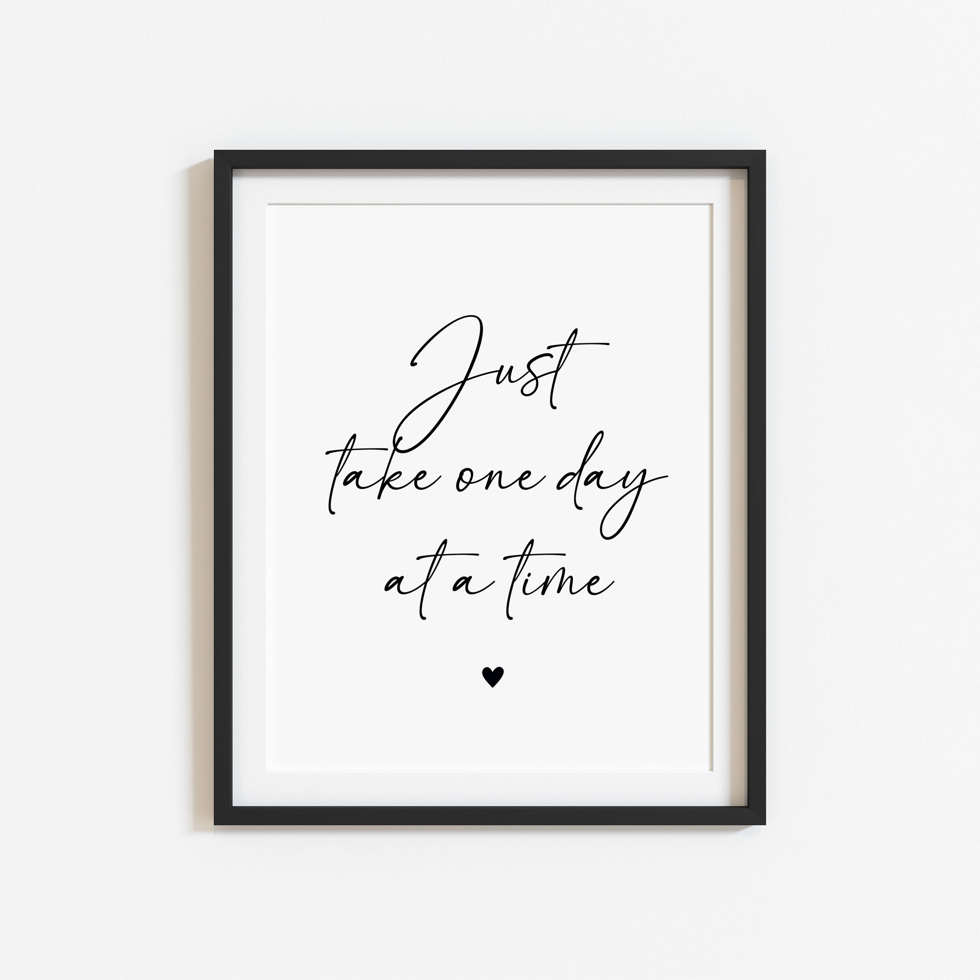 Just take one day at a time black heart Print Motivational Quote, Unframed Wall Art