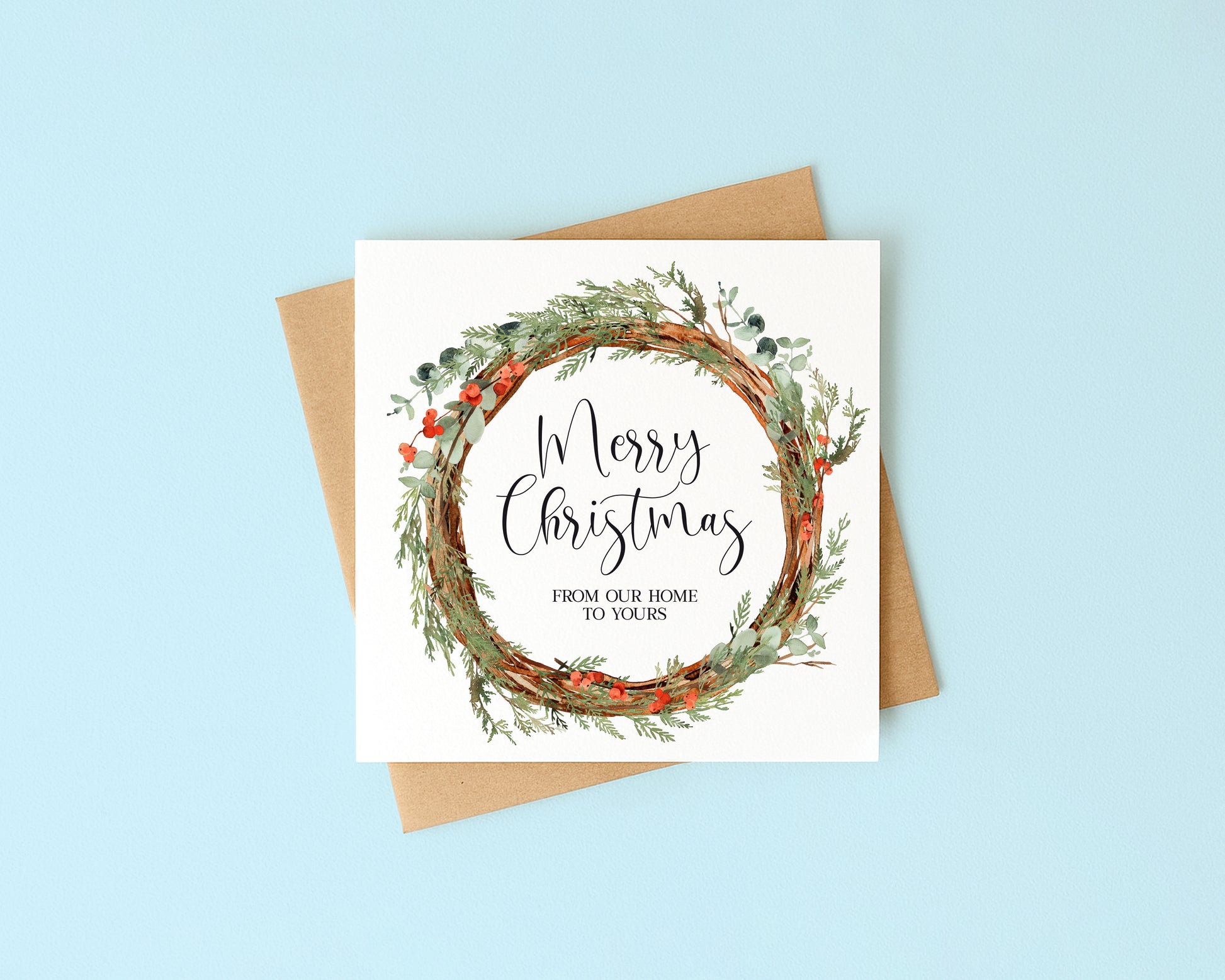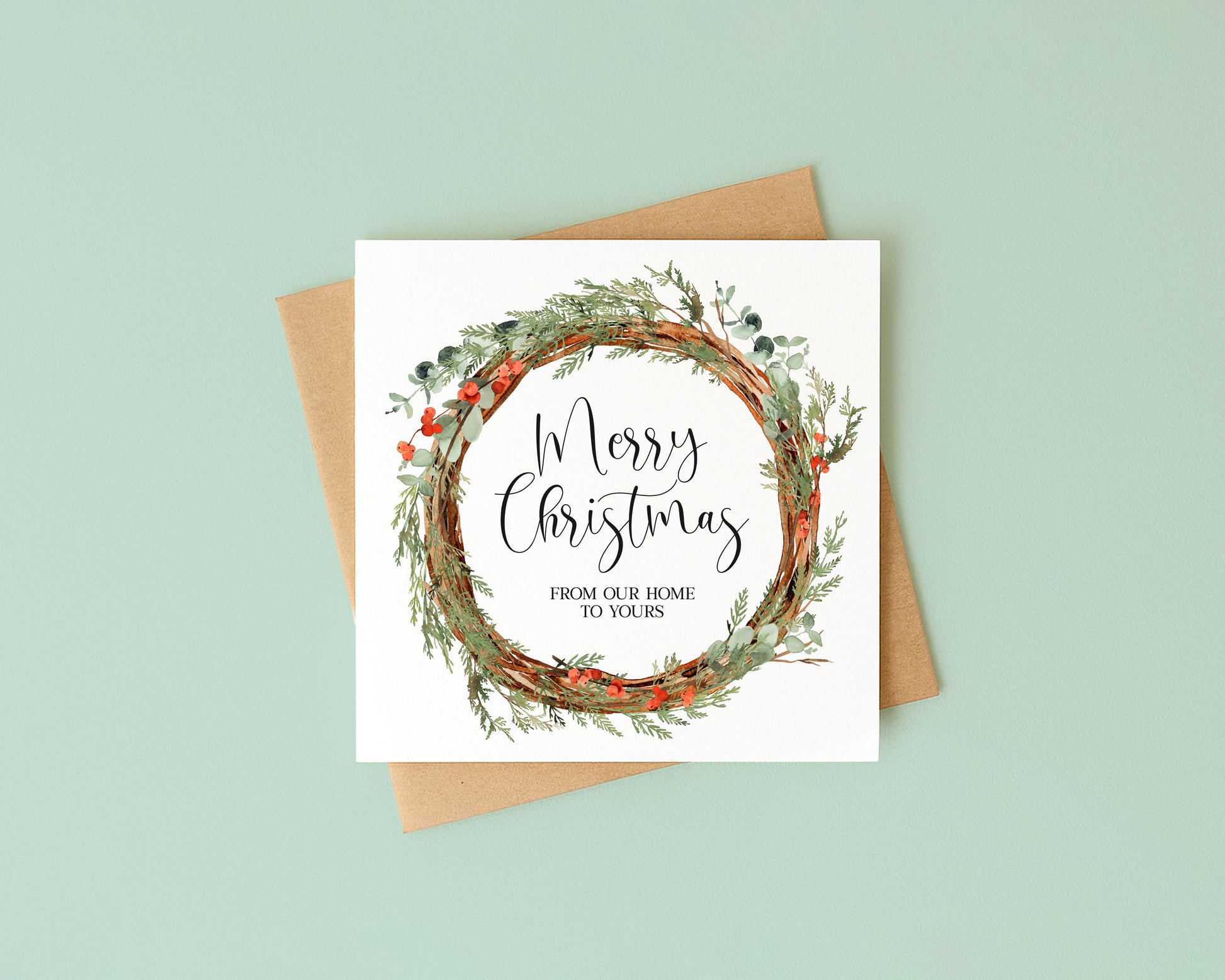 Merry Christmas festive red & green wreath from our home to yours Card (with Envelope) Makes the perfect card to add a special seasonal touch to their Christmas!