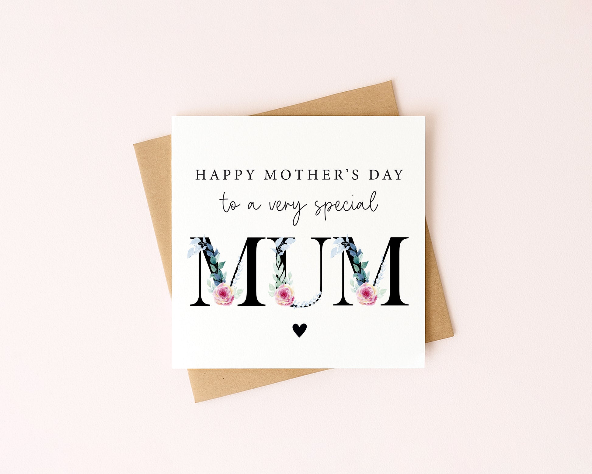 Mother's day card to a very special mum pink blue green floral letters card with Envelope. Makes the perfect unique card to add a special touch to your mums mother's day!