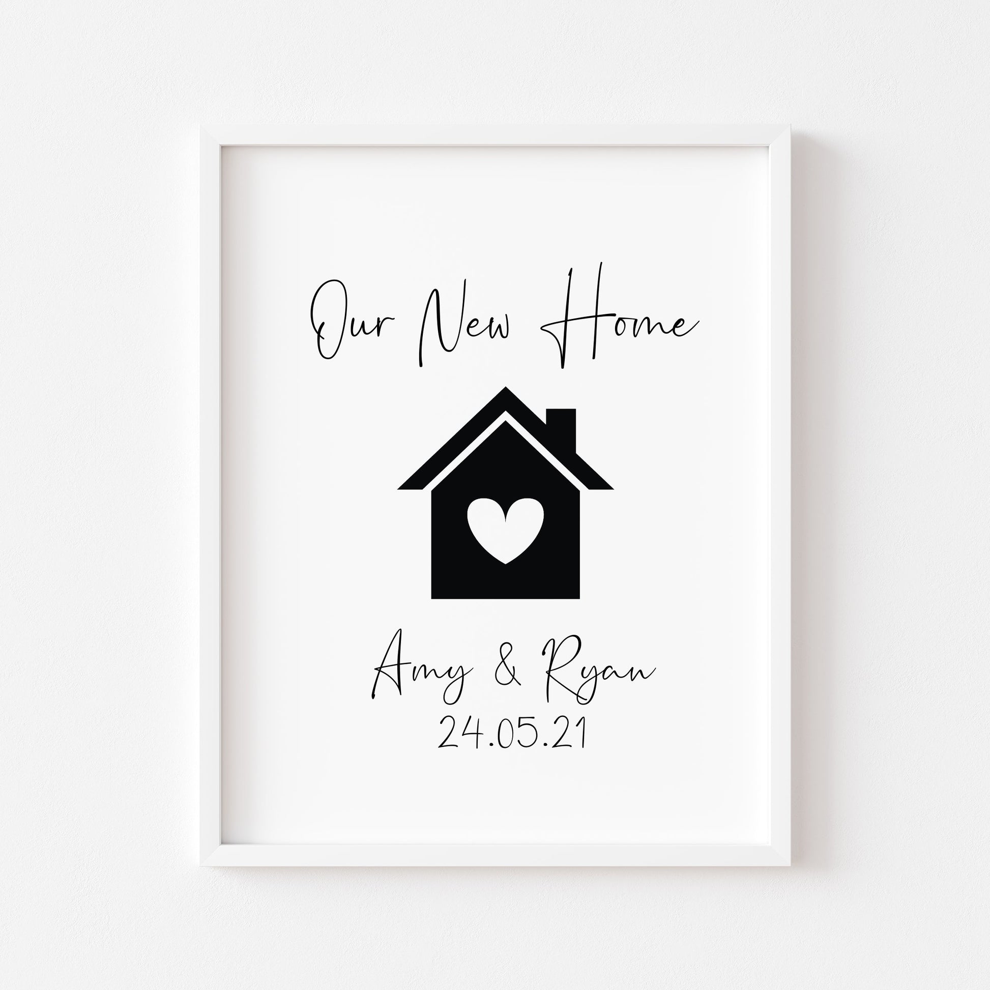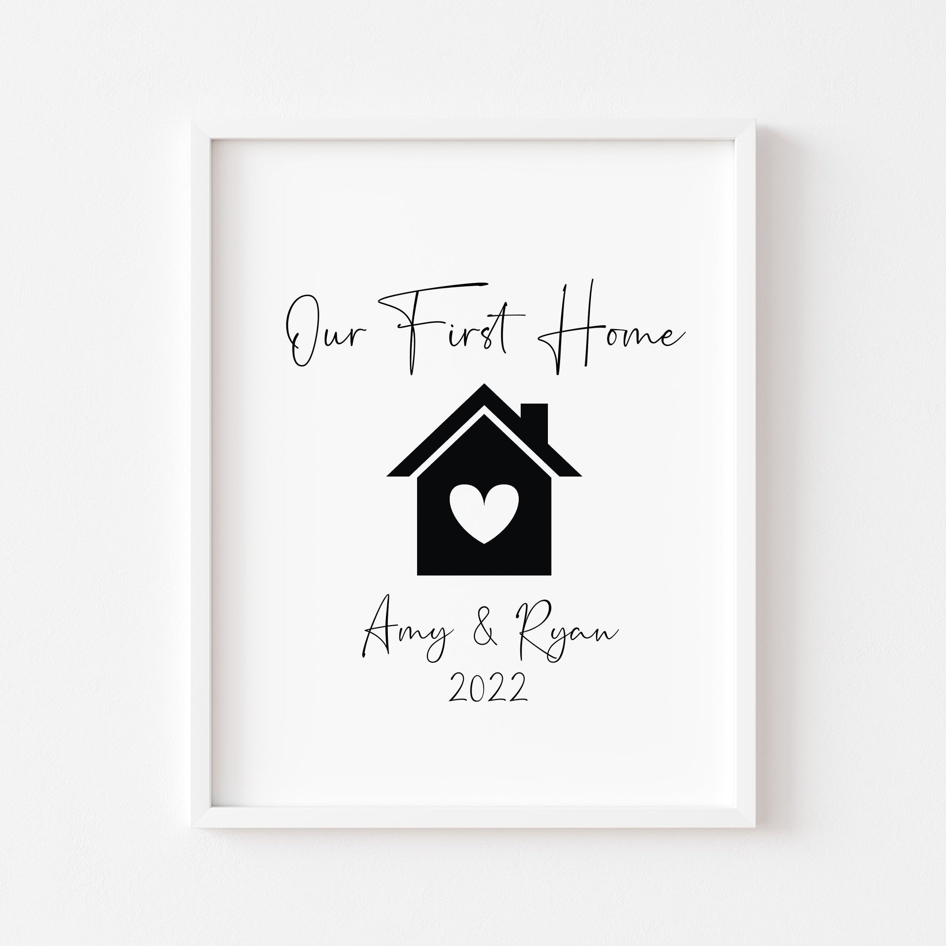 Our First / New home, house heart print, personalised with names and or dates couples wall art new home gift unframed poster print