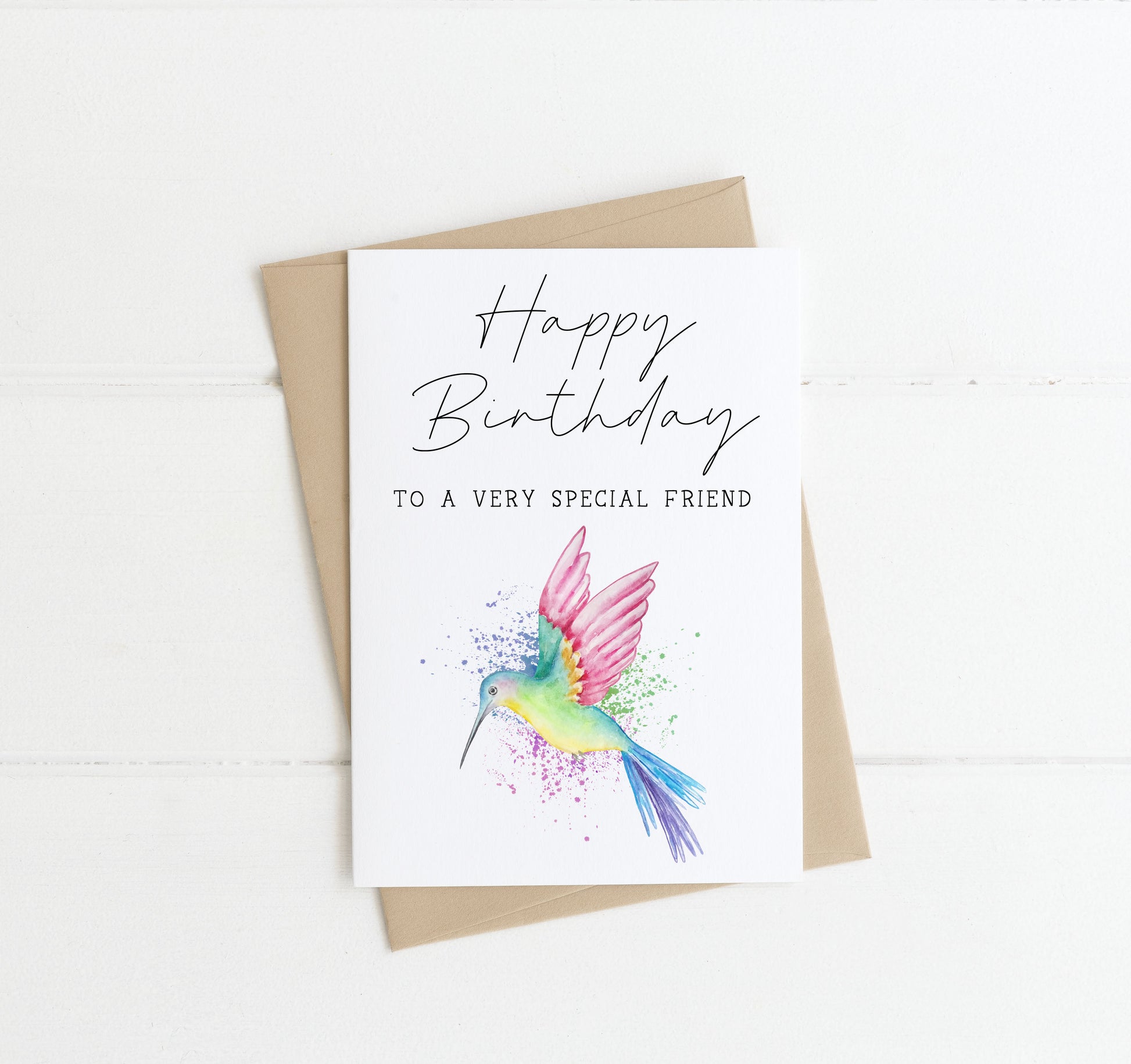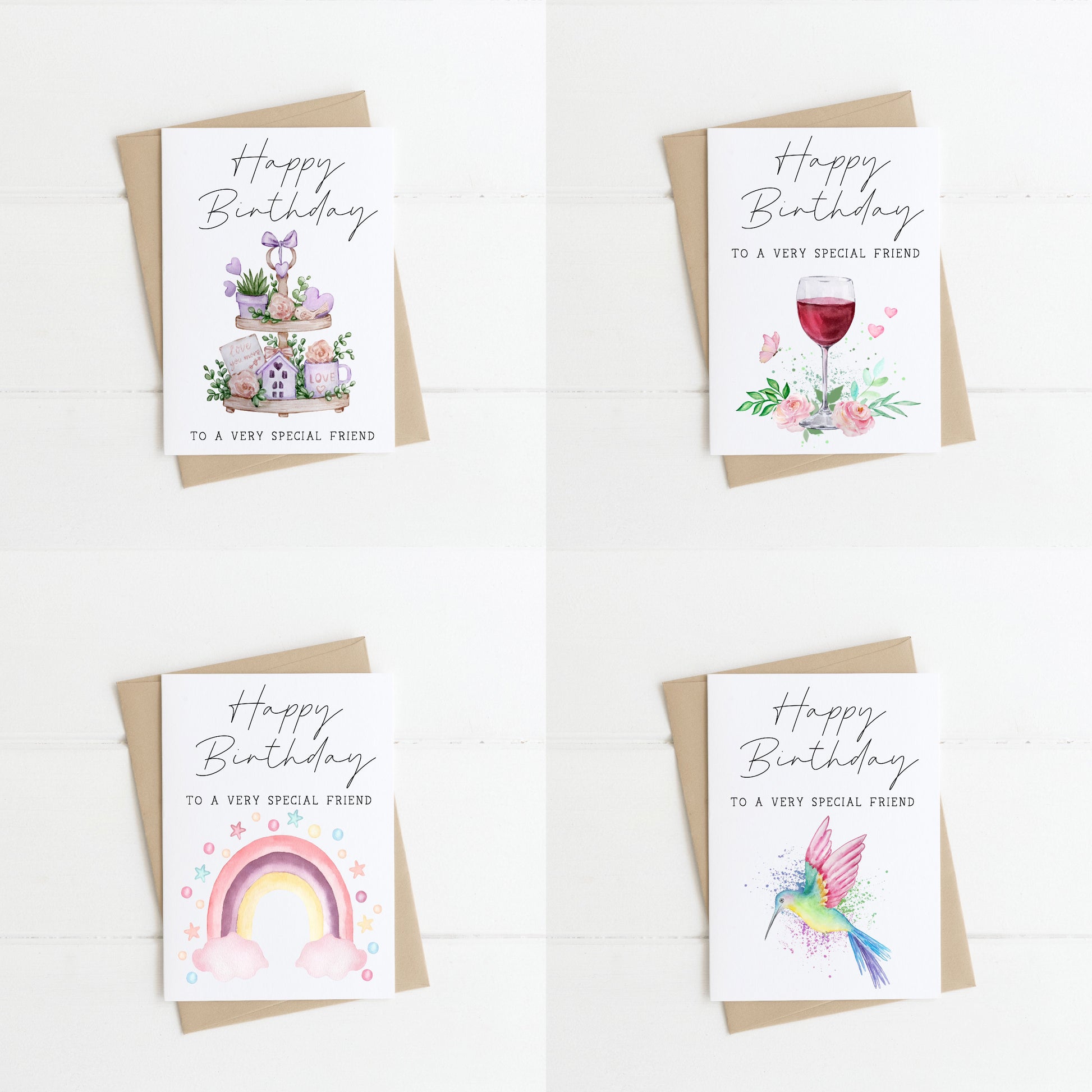 Pack of 4 Happy Birthday individual styles floral rainbow wine hearts humming birds pretty birthday cards with envelope,kraft brown or white