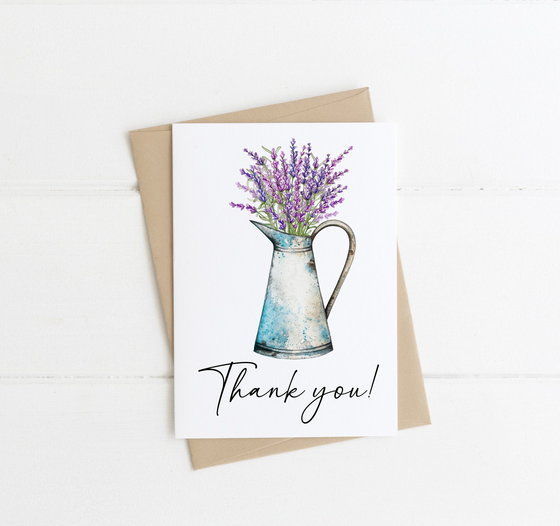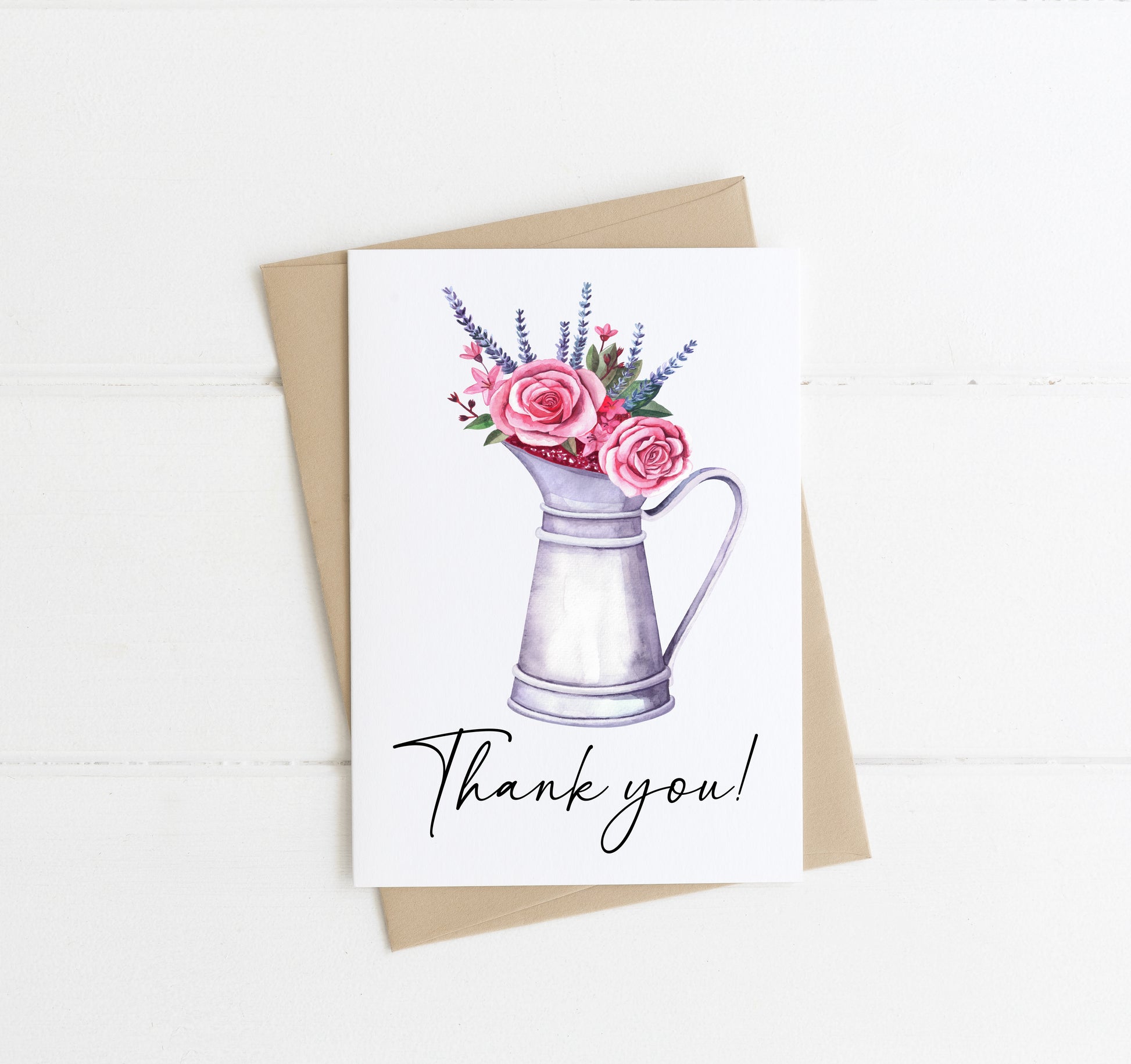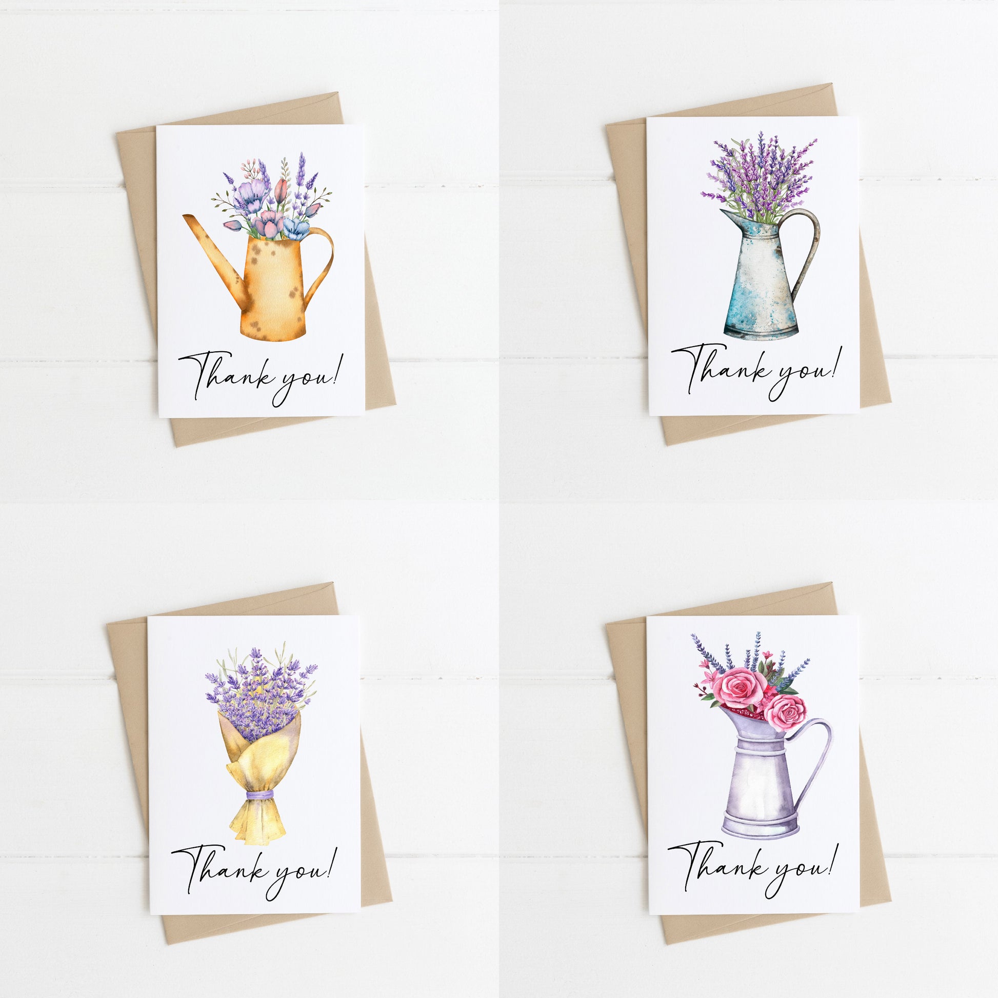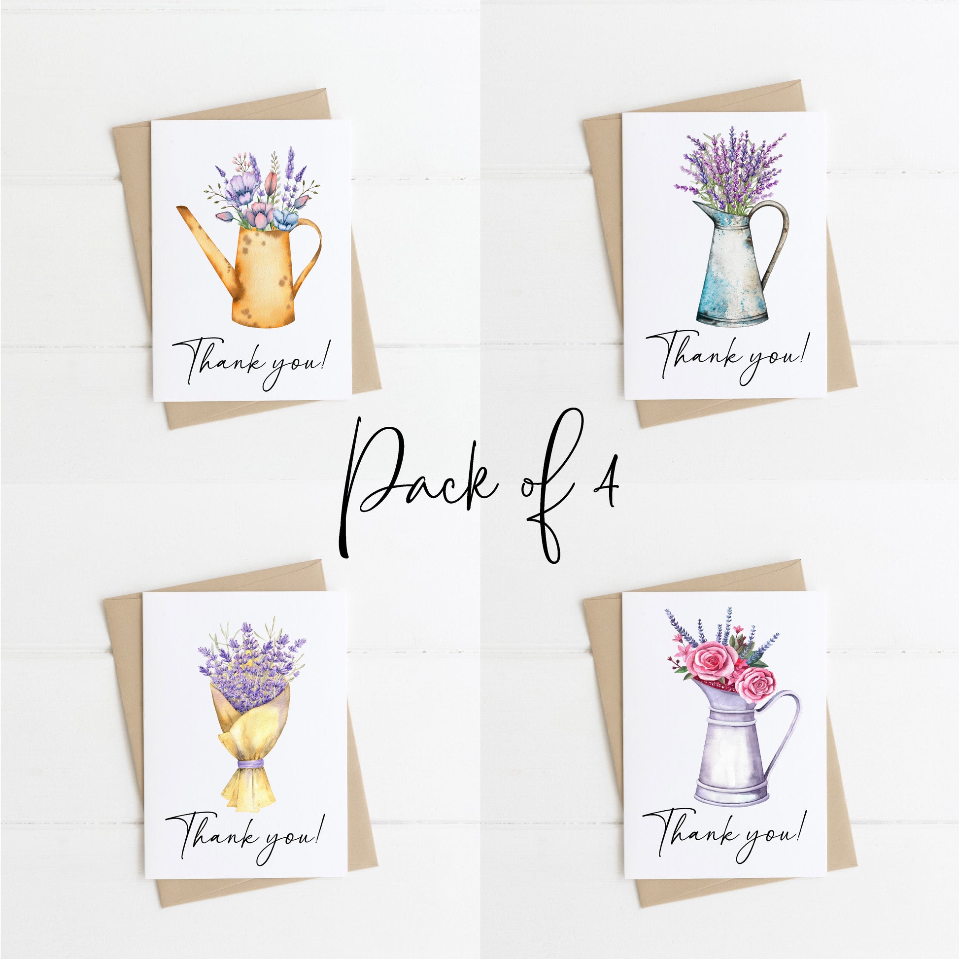 Pack of 4 Thank you cards to say thanks floral daisy lavender watercolour jug bouquet pack of cards with envelopes,kraft brown or white
