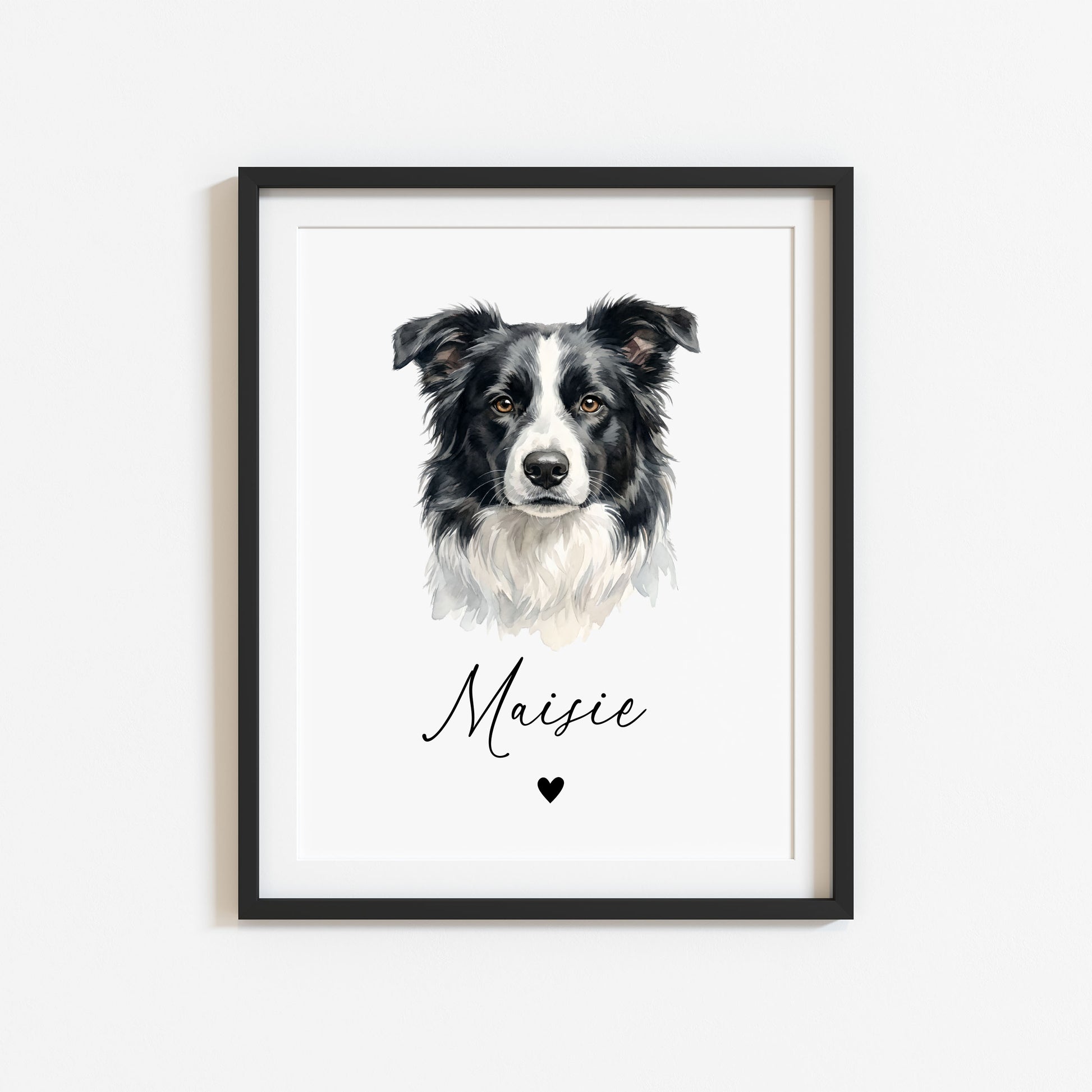 Personalised Border Collie Dog Print Custom Name Pet portrait watercolour unframed wall art poster
