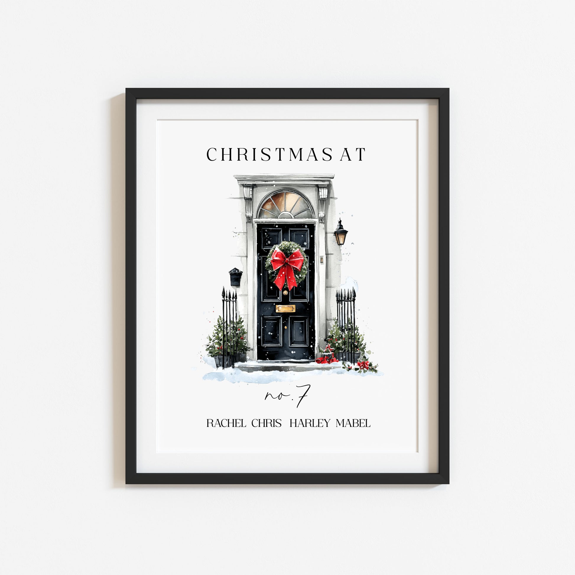 Personalised Christmas Family Name Red Ribbon wreath xmas door Print Festive Holiday Wall Art (unframed)
