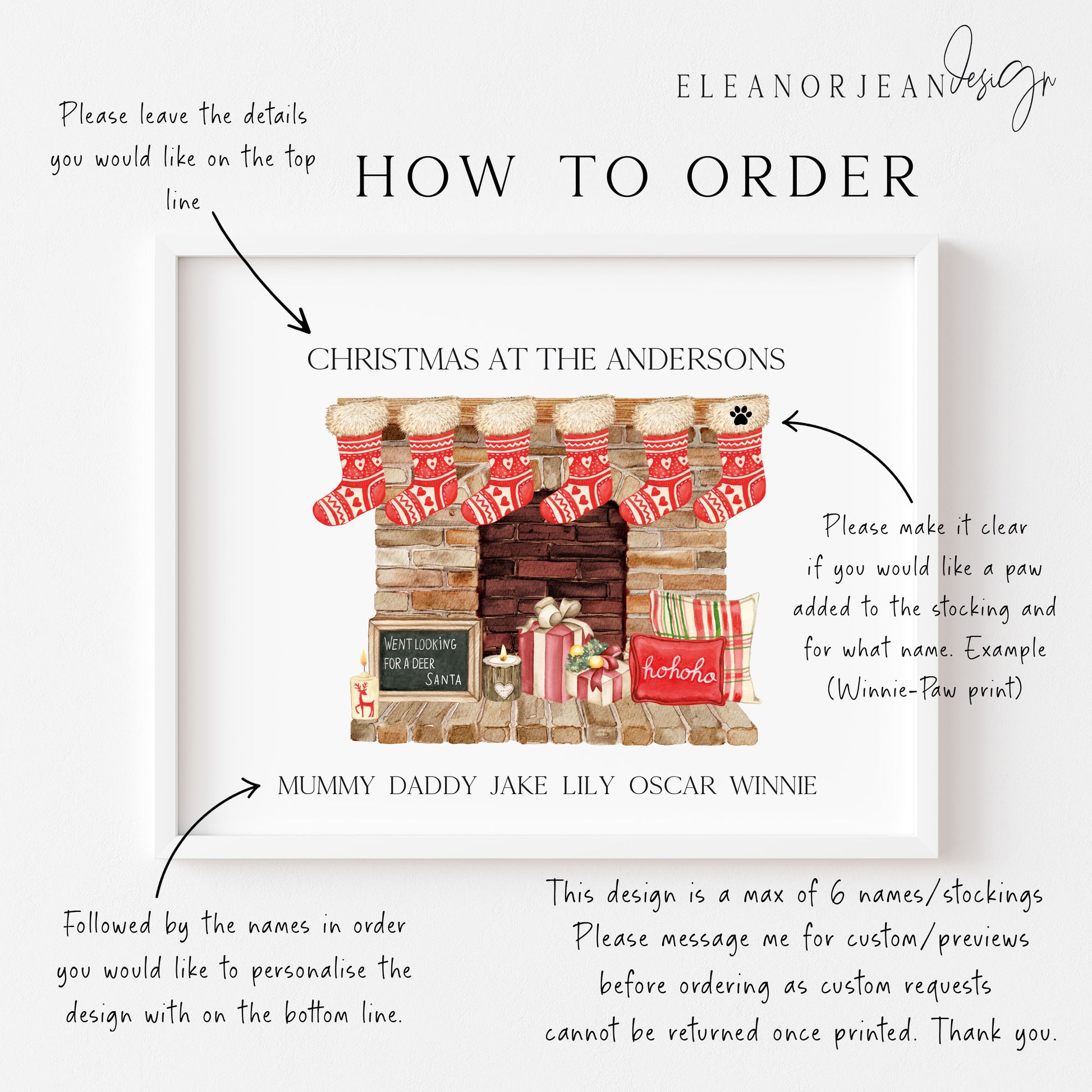 Personalised Christmas stocking family print red fireplace stockings unframed wall art poster print