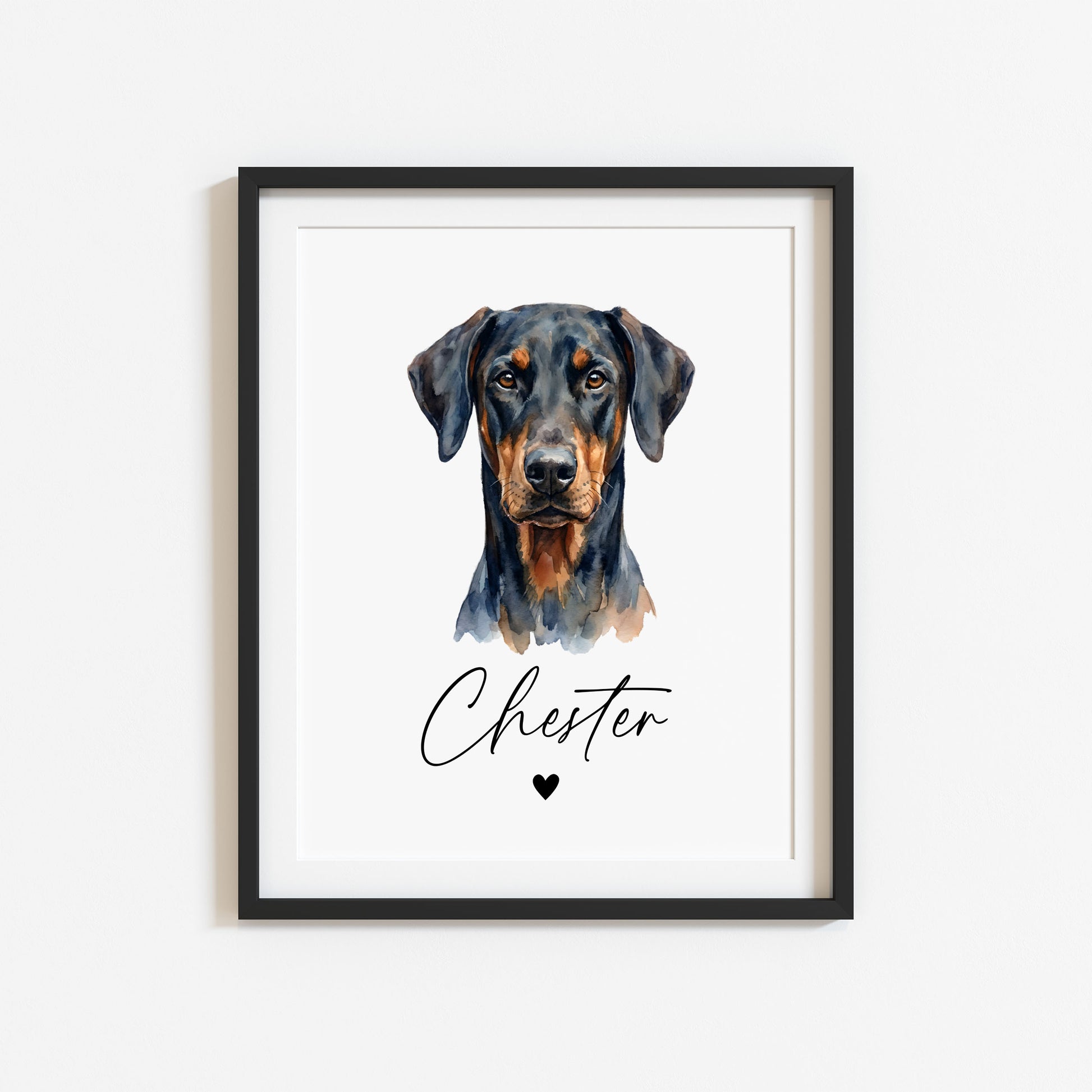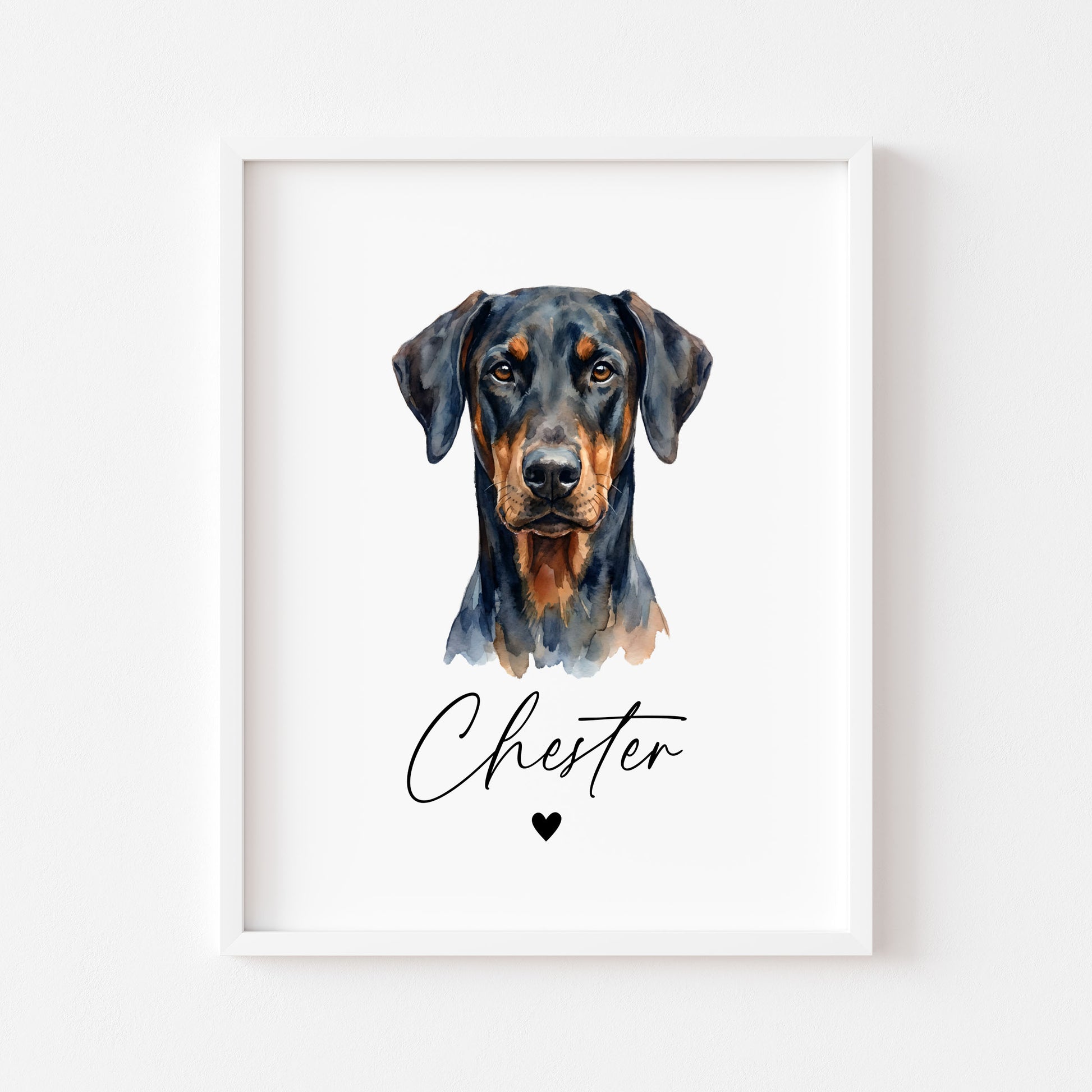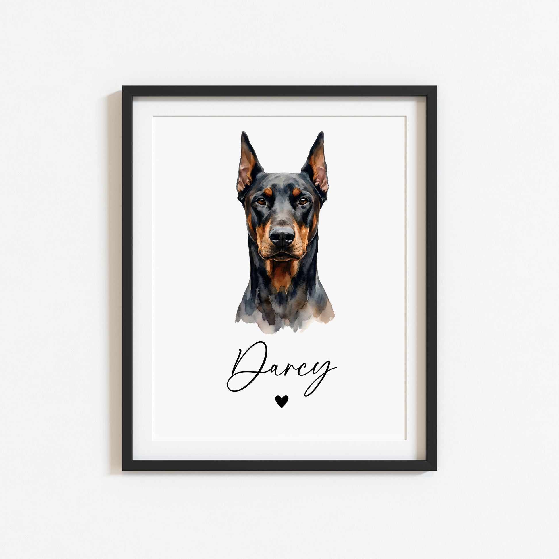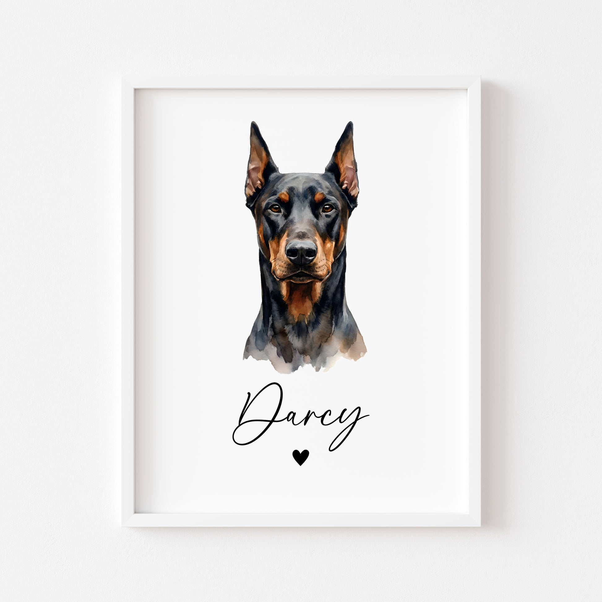Personalised Doberman dog Print Custom Name Pet portrait - 4 options unframed wall art