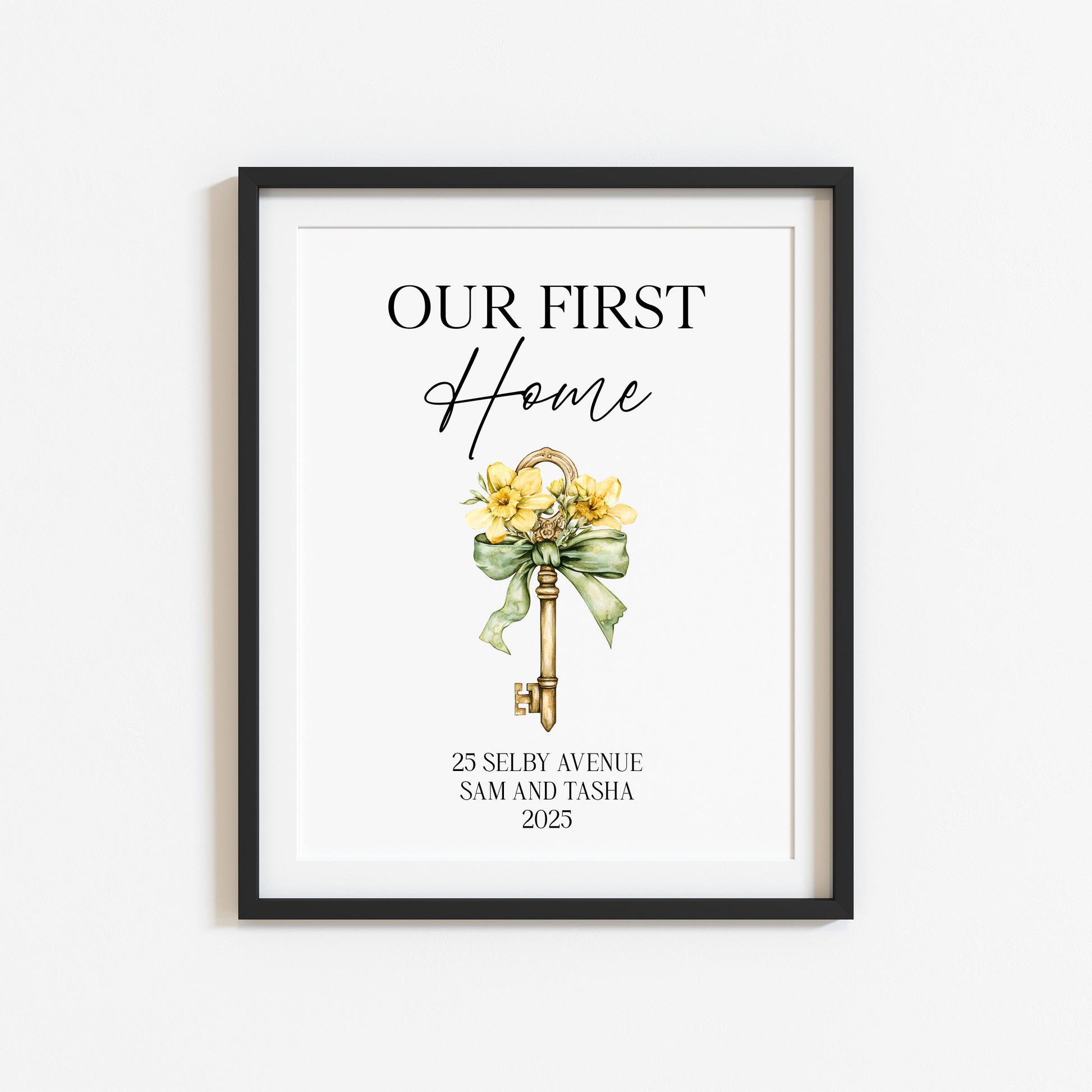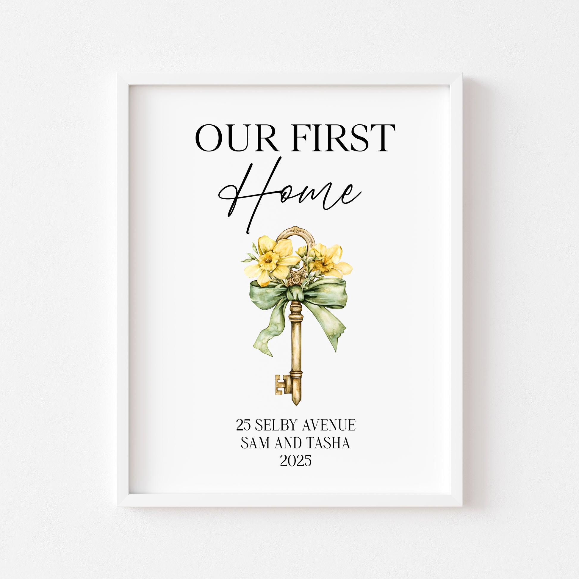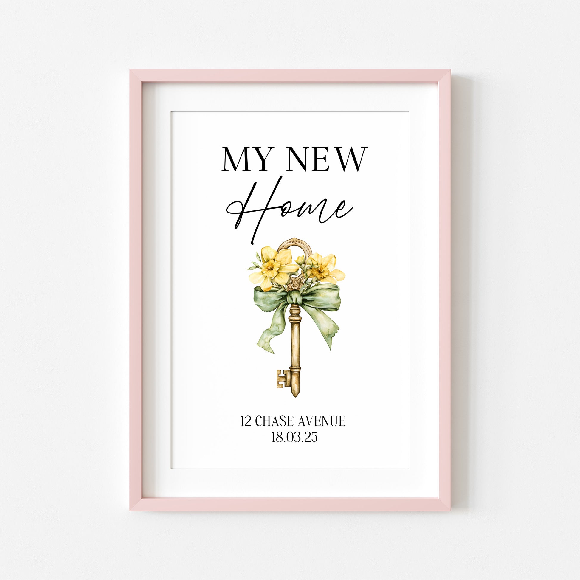 Personalised First / New Home Print Floral key New House Gift, Wall Art (unframed)